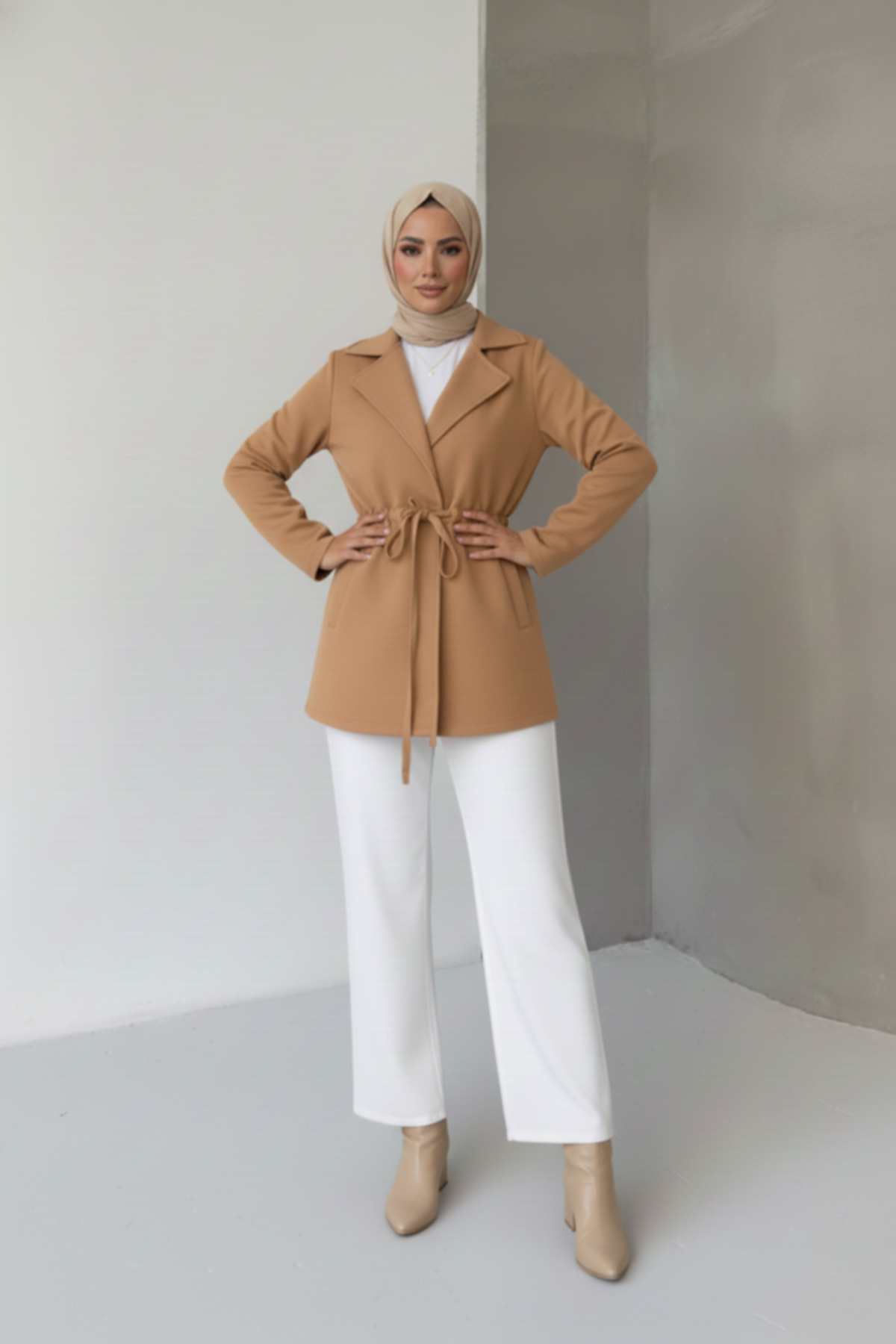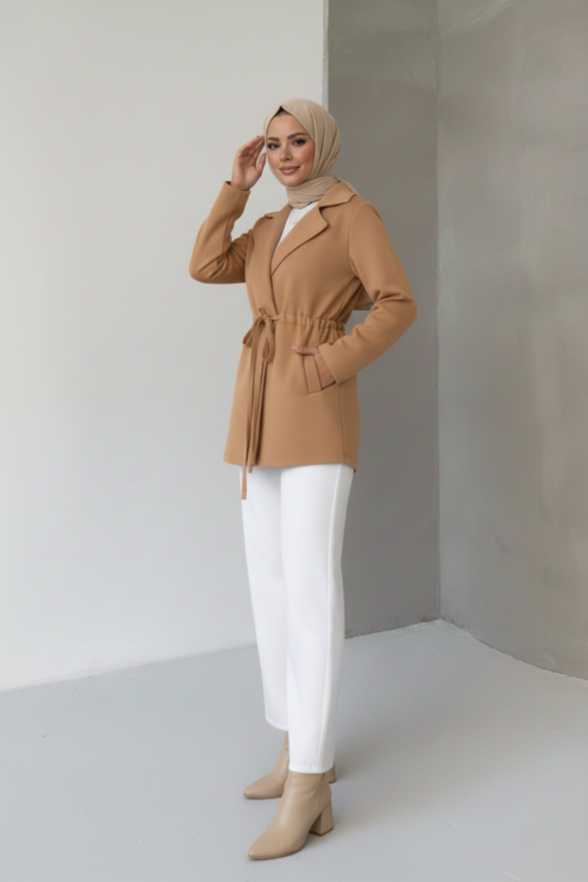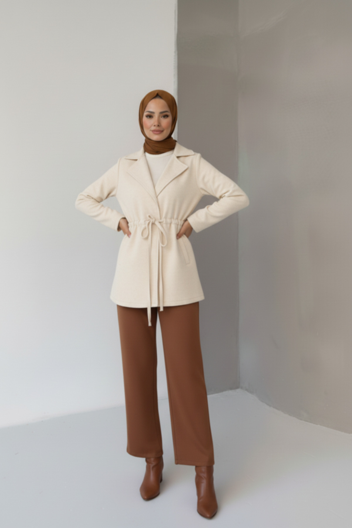 - Yetişkinler için tasarlanmış, tesettür giyim koleksiyonuna uygun şık ve rahat bir hırka/ceket.; - Çift cepli tasarımı ile pratik kullanım sunar ve günlük ihtiyaçlarınızı yanınızda taşımanızı kolaylaştırır.; - Gündüzden geceye her ortamda rahatlıkla tercih edebileceğiniz, çok yönlülük sağlayan bir parça.; - Düz deseniyle sade ve şık bir görünüm sunarken, ceket yaka detayı ile modern bir dokunuş katıyor.; - Uzun kollu ve standart kol tipi sayesinde mevsim geçişlerinde ideal konforu sağlar.; - Basic silueti ile her türlü kombinle uyum sağlayarak gardırobunuzun vazgeçilmez parçası haline gelir.; - Feminine persona'yı ön plana çıkaran tasarım detaylarıyla zarif bir stil sunar.; - Kaşe dokuma tipi, dayanıklılık ve kaliteyi ön plana çıkartırken, kaşmir dokusuyla yumuşak bir his verir.; - Yıkama talimatları belirtilmemiş olup, ürünle birlikte gelen bakım önerilerine uymanız tavsiye edilir.; - Kutu içinde gönderilmez, doğrudan ürün olarak teslim edilir; böylece daha hızlı ve kolay bir alışveriş deneyimi yaşarsınız.; - Kadın ve kızlar için uygun olan bu ürün