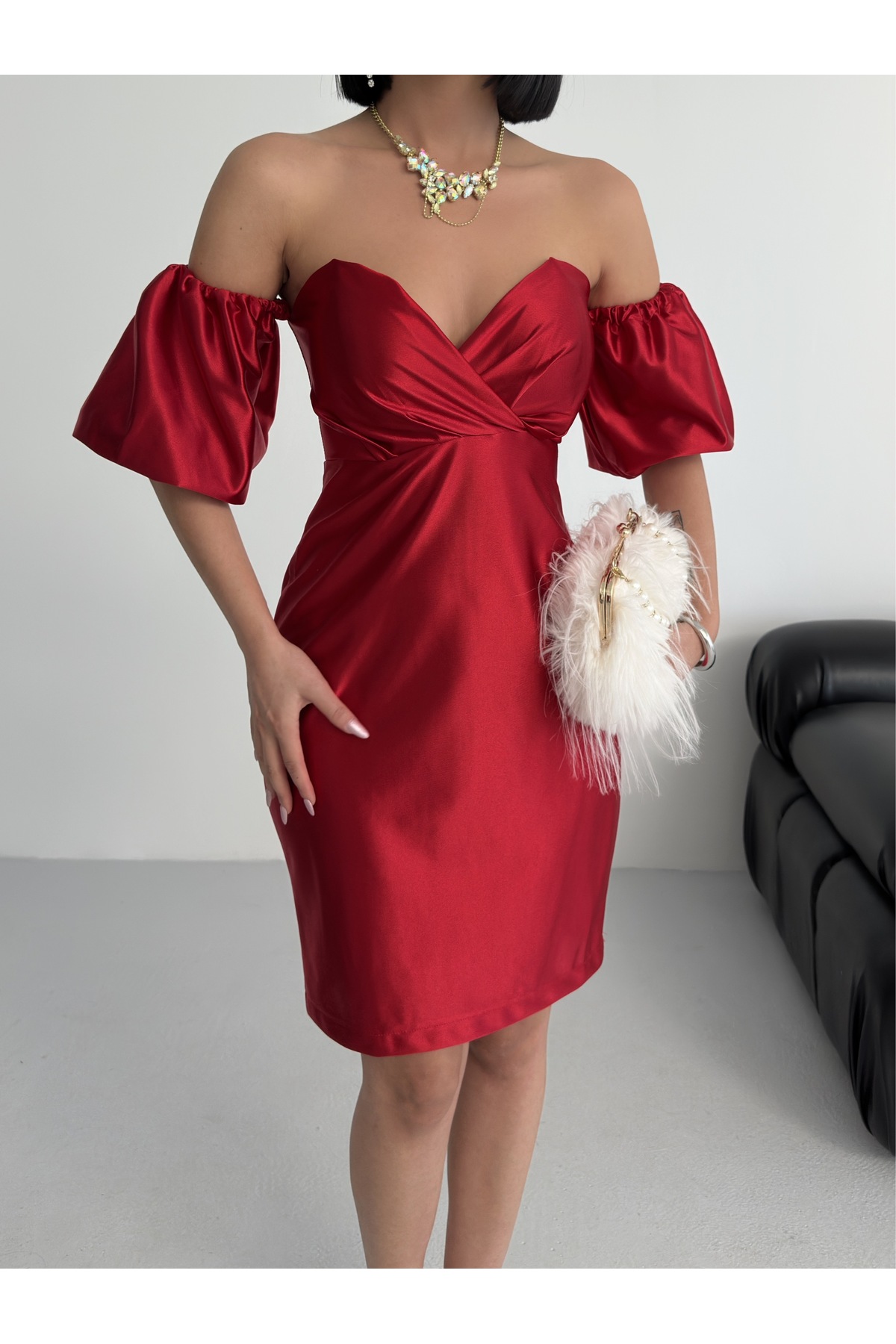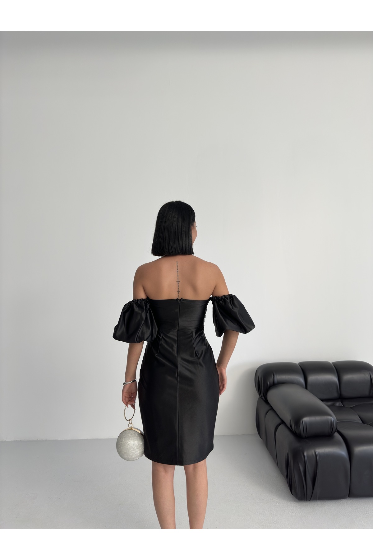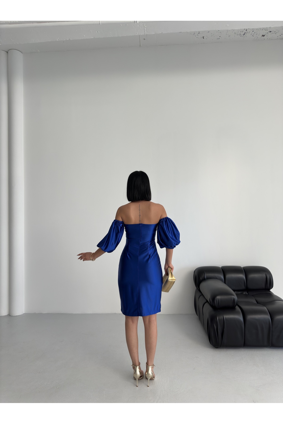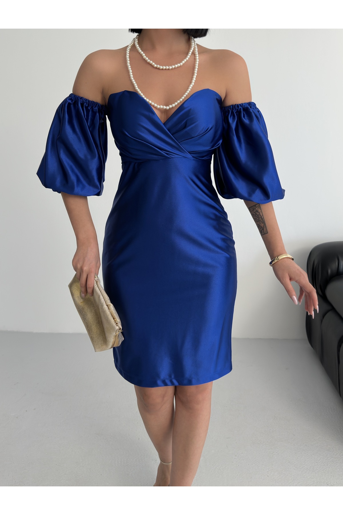 Bandeau Balon Kol Bodycon Mini Abiye Elbise