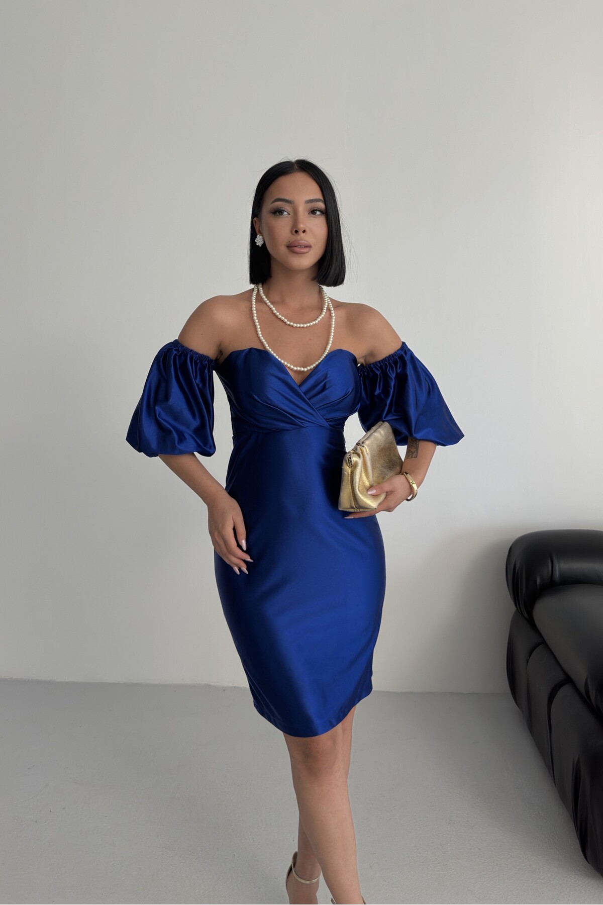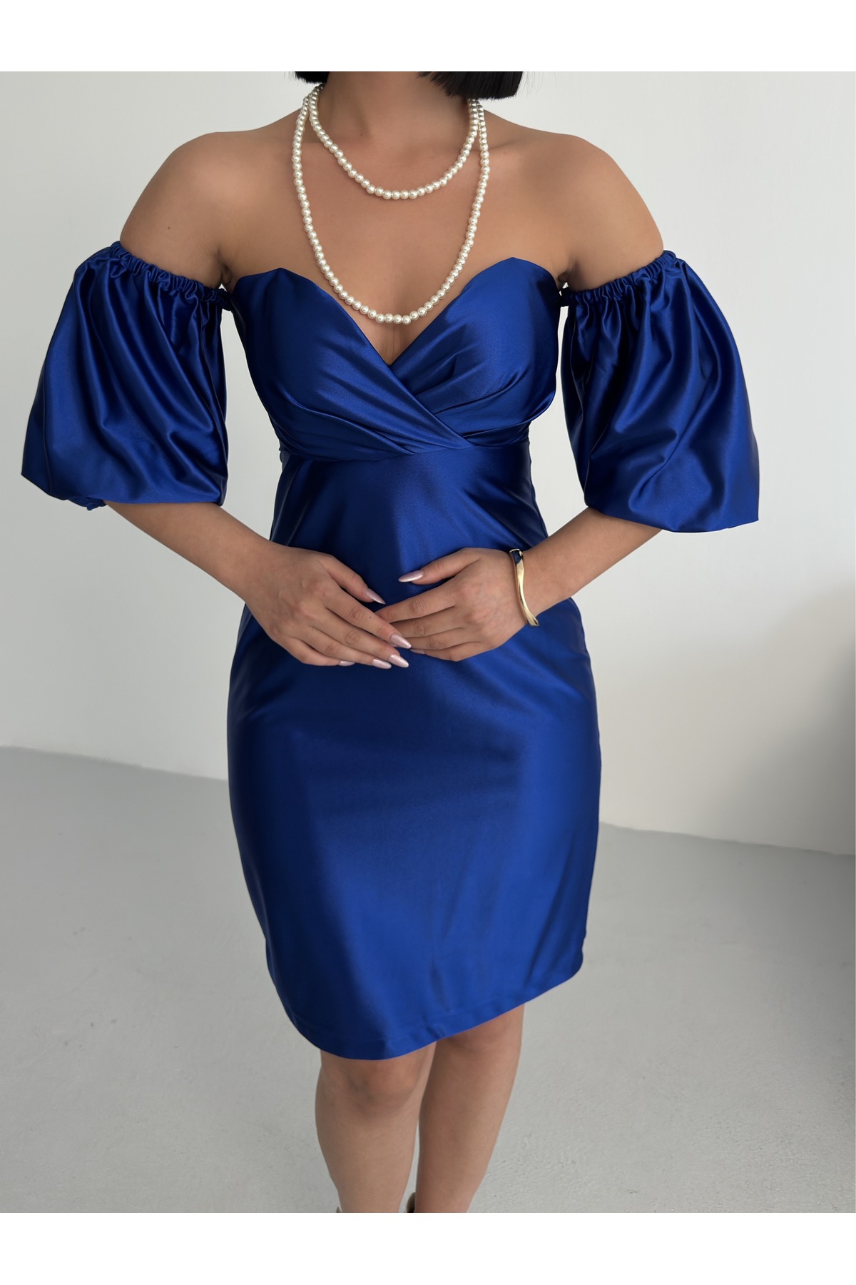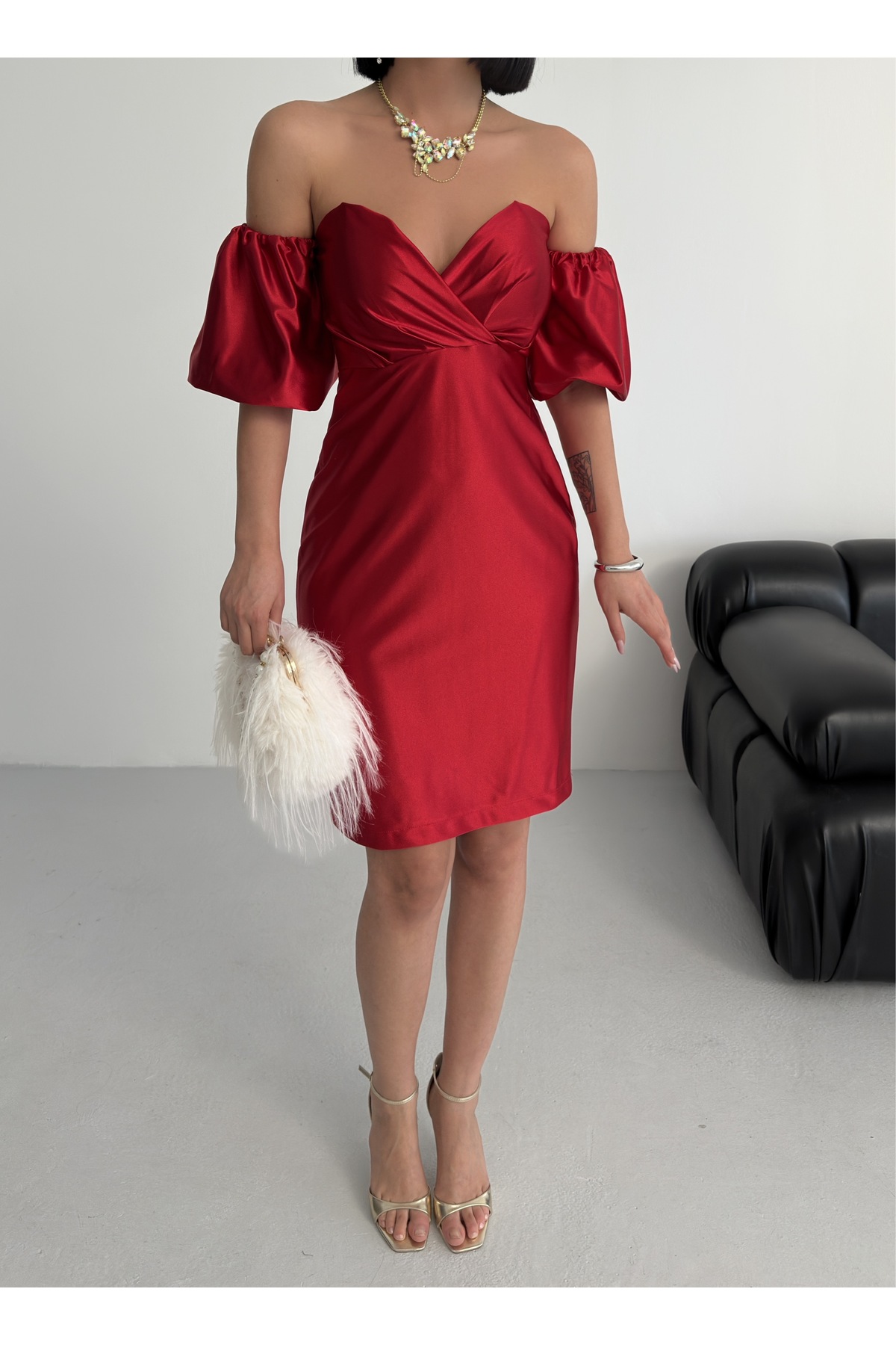 Bandeau Balon Kol Bodycon Mini Abiye Elbise