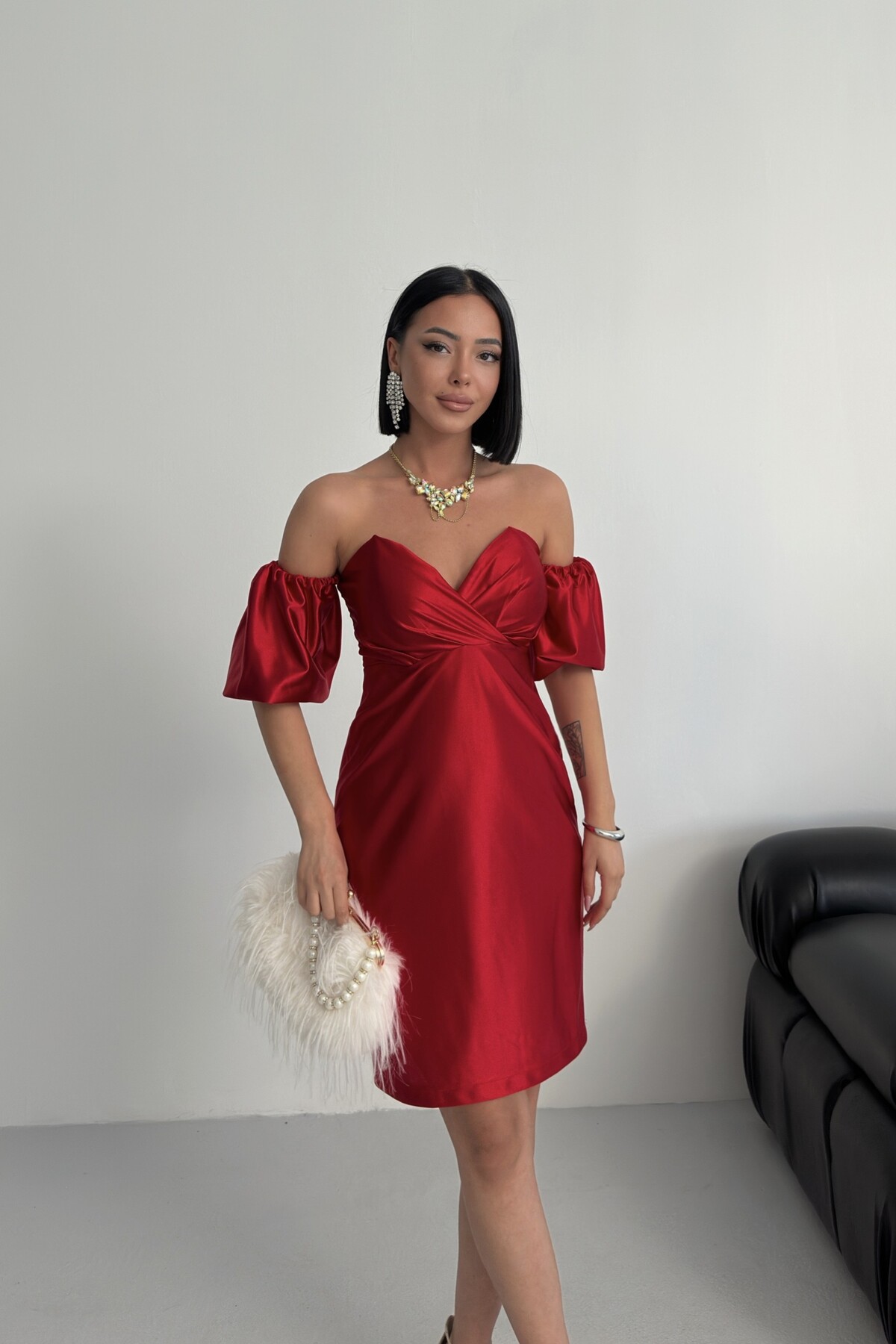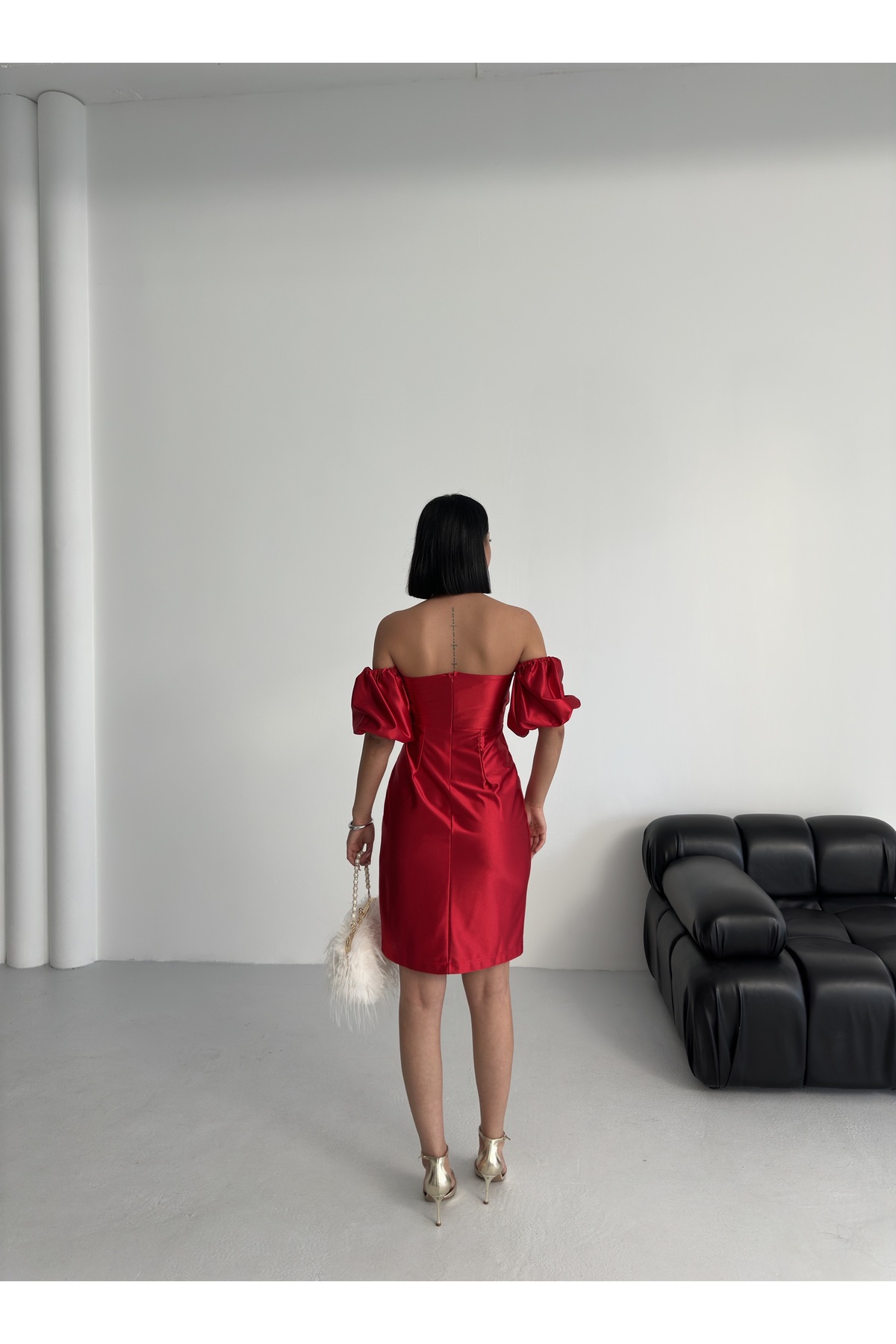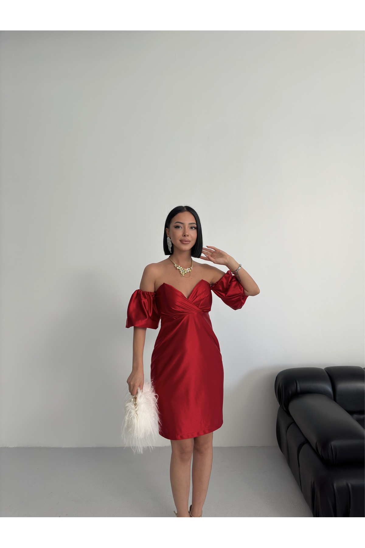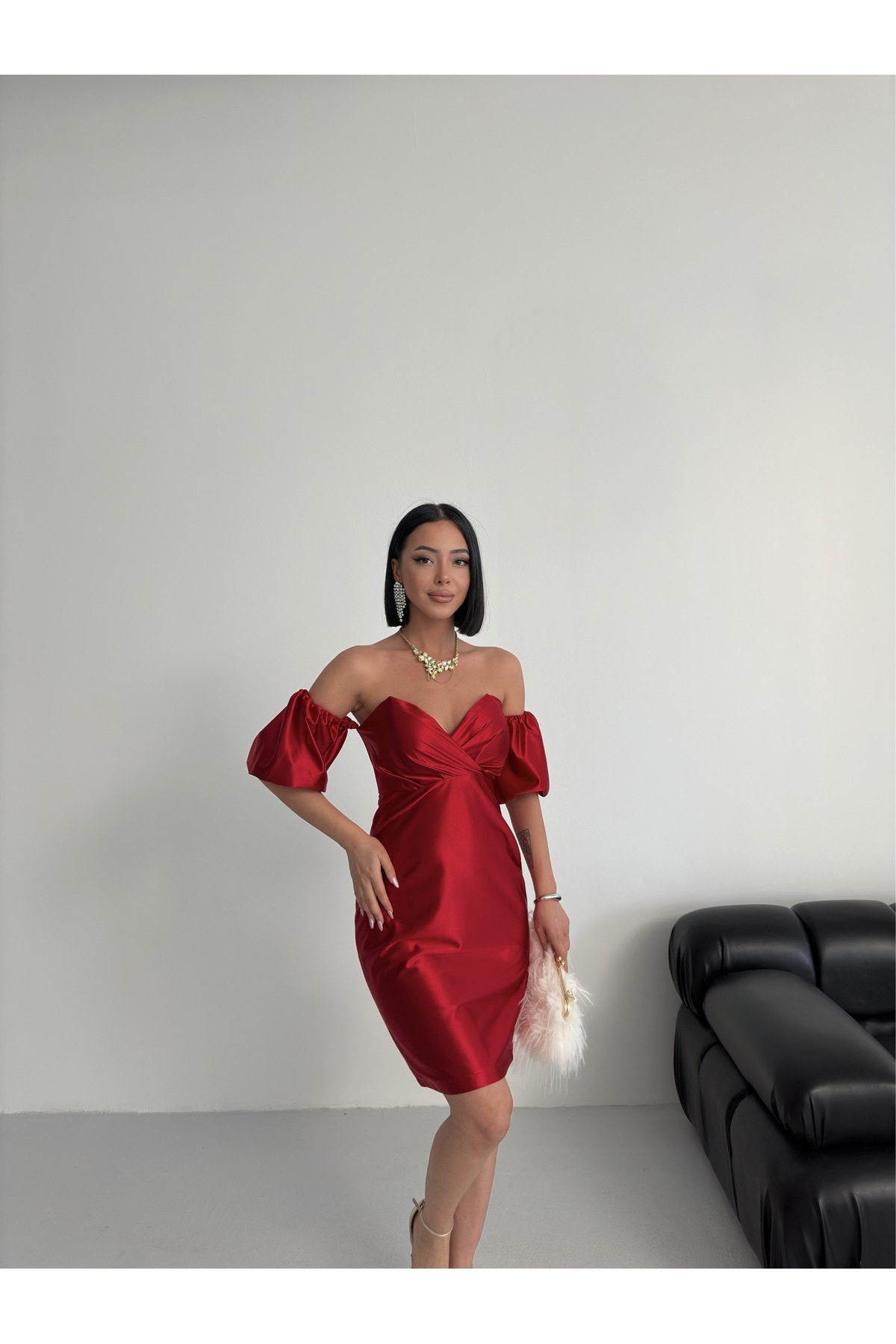 Bandeau Balon Kol Bodycon Mini Abiye Elbise