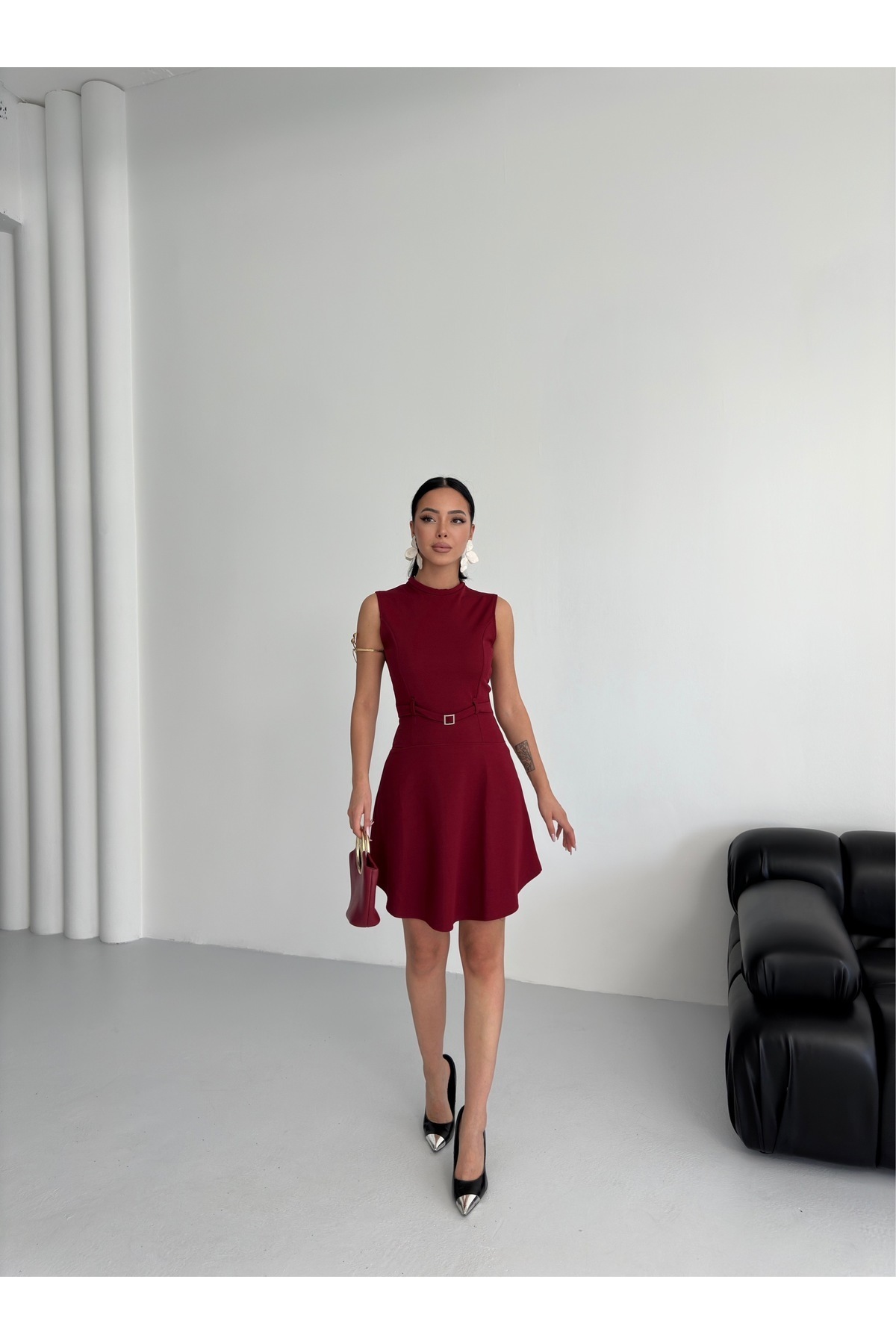 Bisiklet Yaka Kemer Aksesuar Zümrüt Elbise