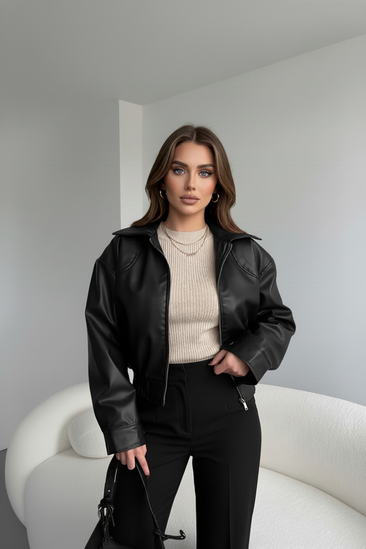 - Suni deri materyali ile şıklığı ve dayanıklılığı bir arada sunar.; - Kemersiz tasarımı, modern ve sade bir görünüm sağlar.; - Uzun kollu ve astarlı yapısı ile mevsim geçişlerinde ideal konforu sunar.; - Gömlek yaka detayı, klasik ceket tarzına zarif bir dokunuş ekler.; - Çift cepli tasarımı pratik kullanım imkanı tanır.; - Günlük kullanıma uygun rahatlığıyla her ortamda stil sahibi olmanızı sağlar.; - Fermuarlı kapama şekli kolay giyip çıkarmayı mümkün kılar.; - Tüm sezonlar için uygun kalınlıkta orta kalınlıkta denim kumaştan üretilmiştir.; - Düz kesim siluetiyle zamansız bir şıklık sunar.; - Regular kalıp ve boyu ile rahat hareket etme özgürlüğü verir.; - Genç yaş grubuna hitap eden modasıyla dikkat çeker.; - Türkiye menşeli olup, yerli üretim kalitesini garanti eder.;