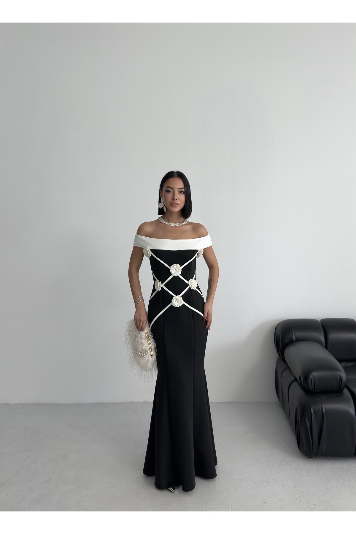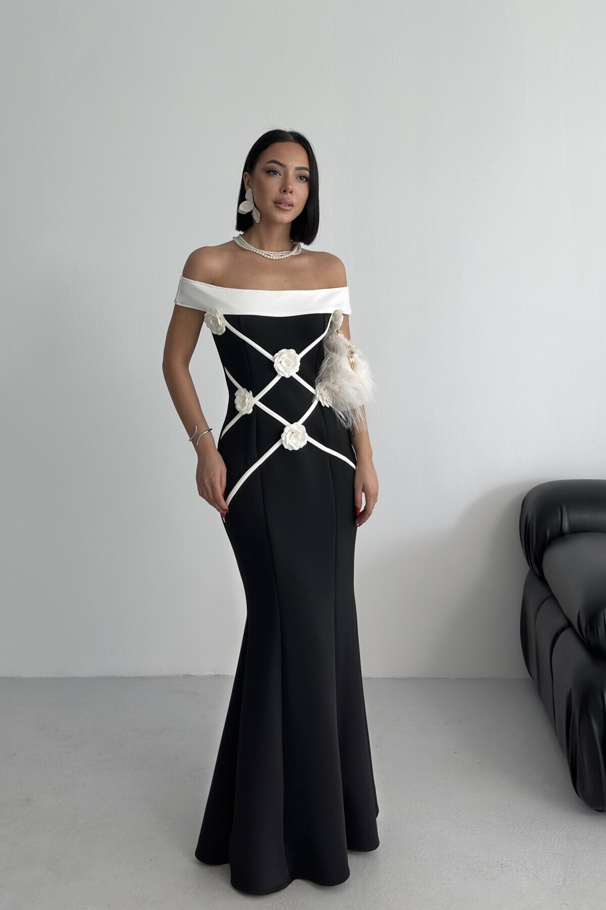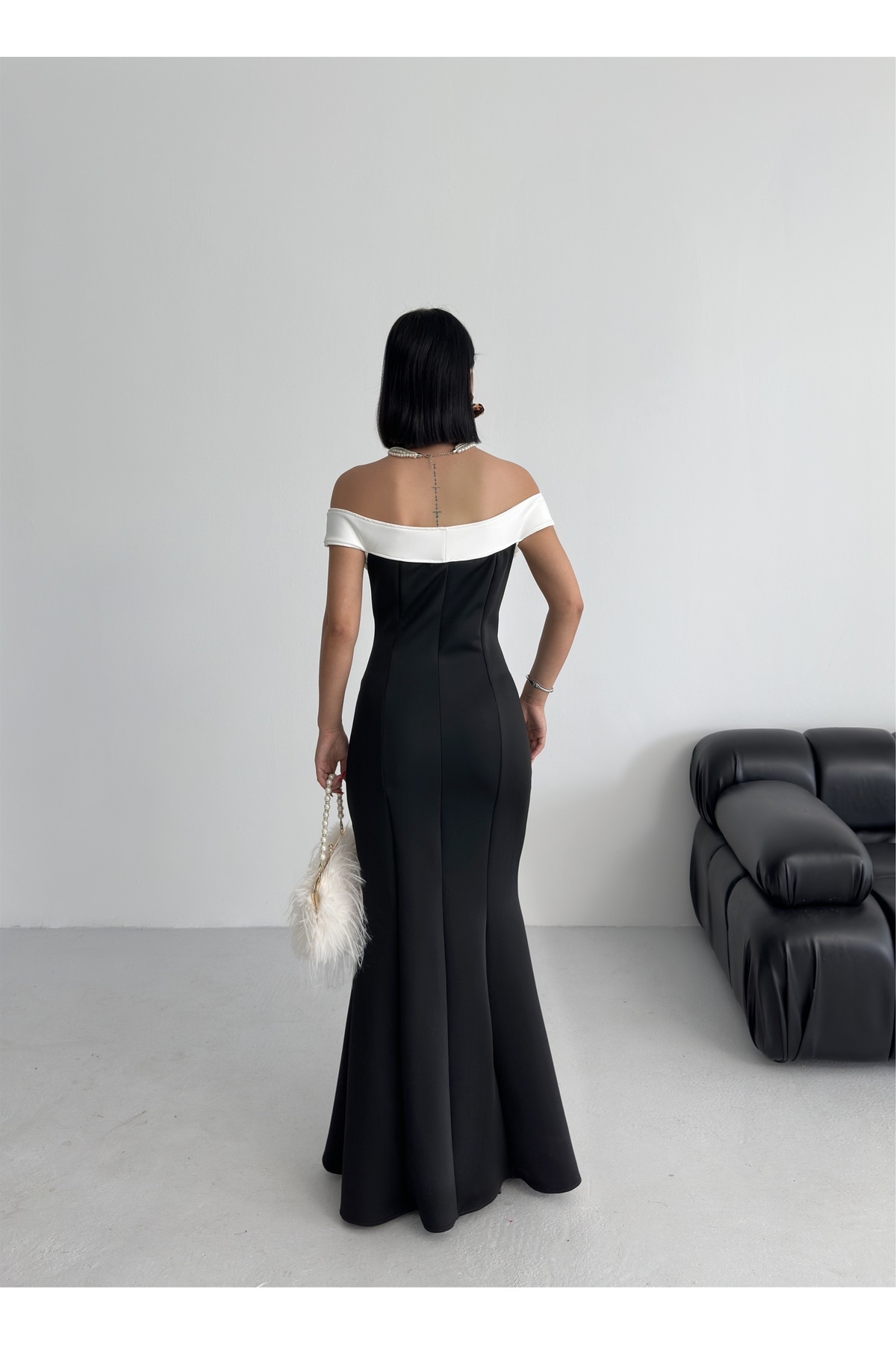 Bir gecede tüm bakışları üzerinize toplamak için tasarlandı. Eliza Abiye, klasik siyah ve beyaz kontrastını modern bir zarafetle yeniden yorumluyor.