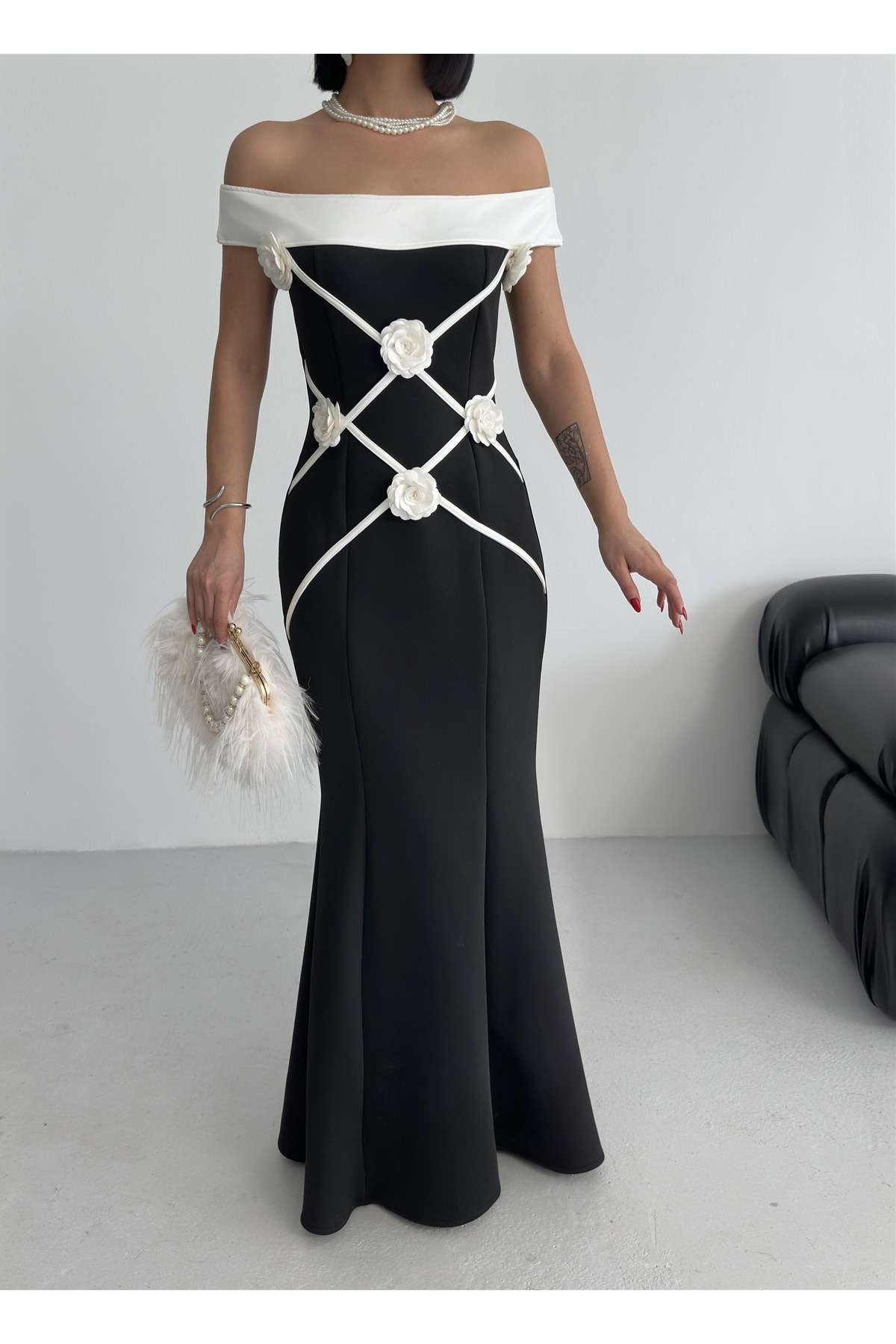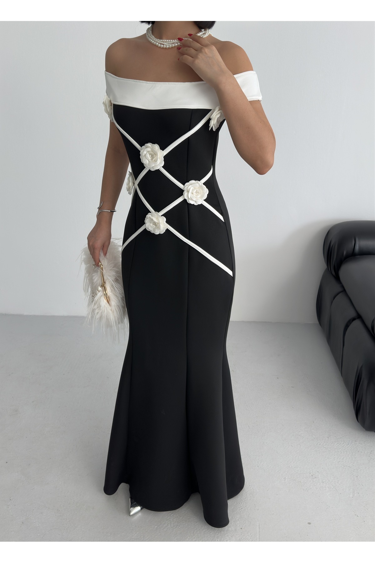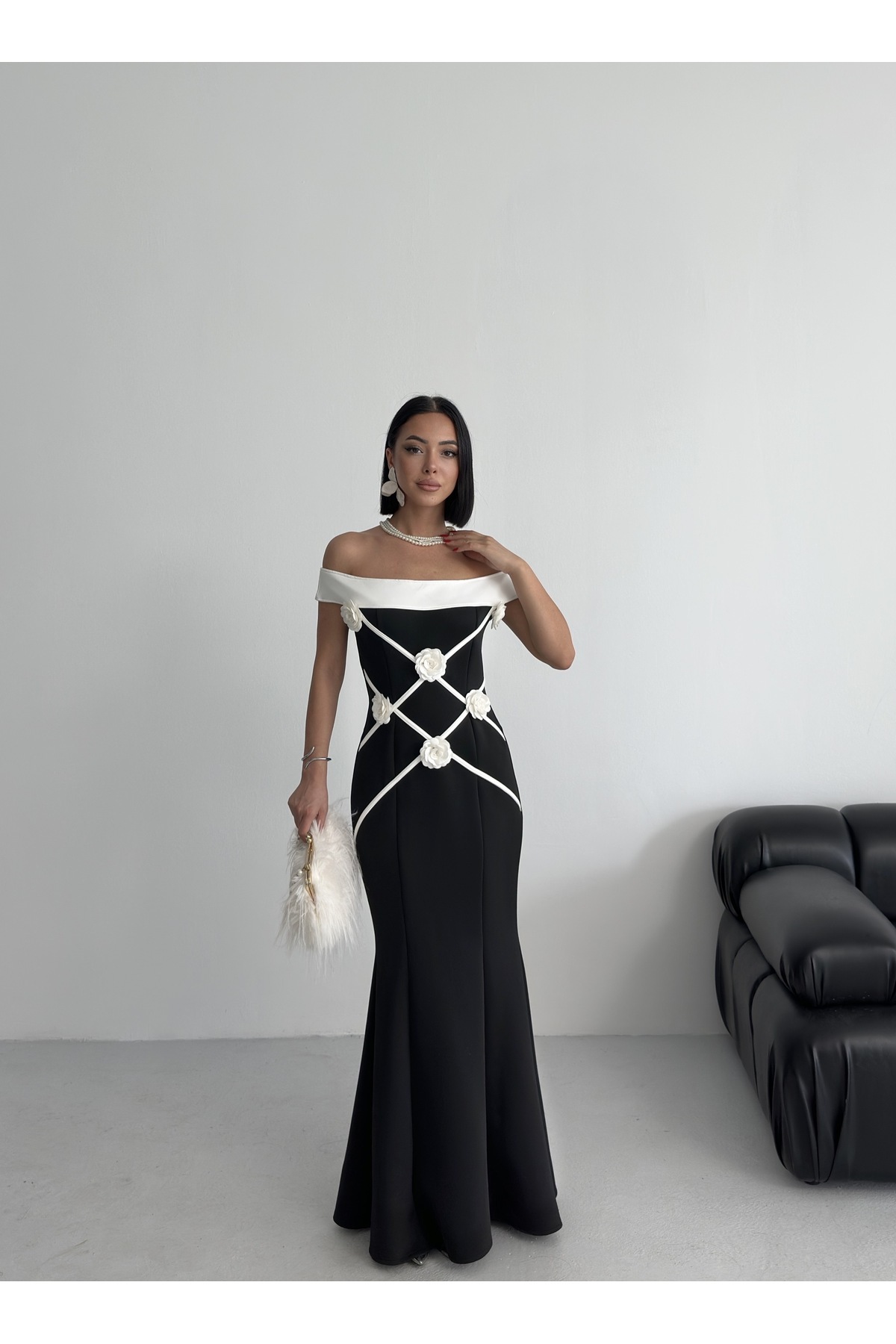 Bir gecede tüm bakışları üzerinize toplamak için tasarlandı. Eliza Abiye, klasik siyah ve beyaz kontrastını modern bir zarafetle yeniden yorumluyor.