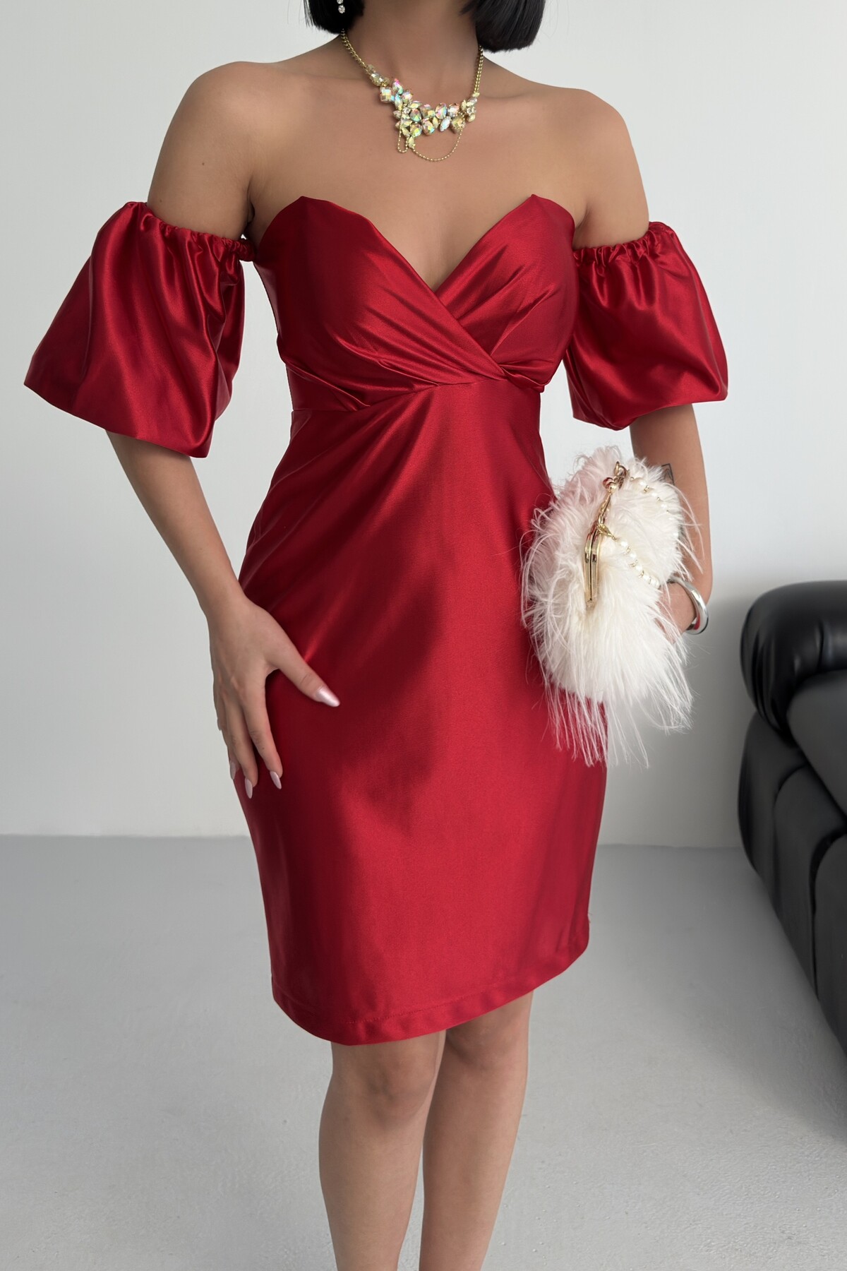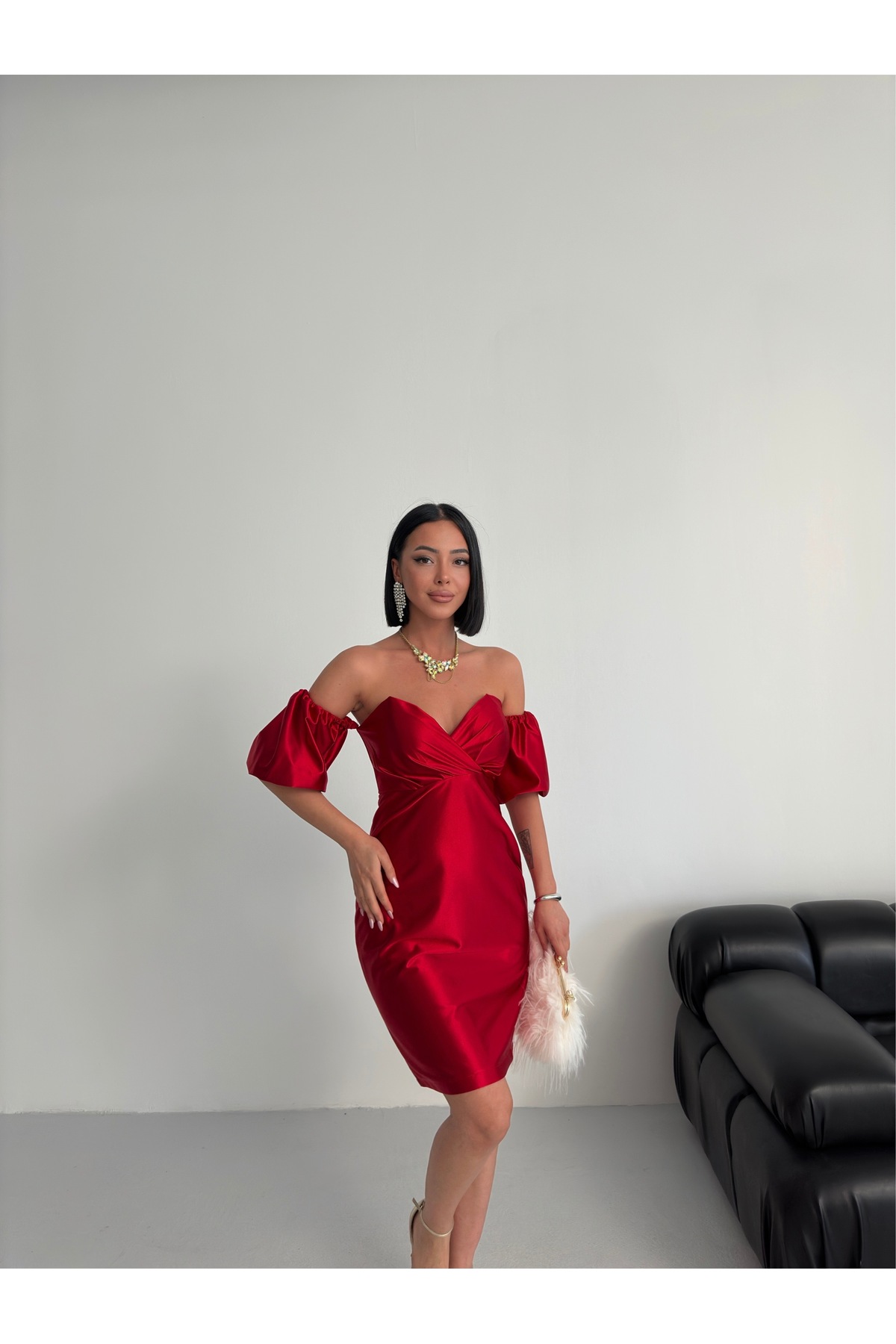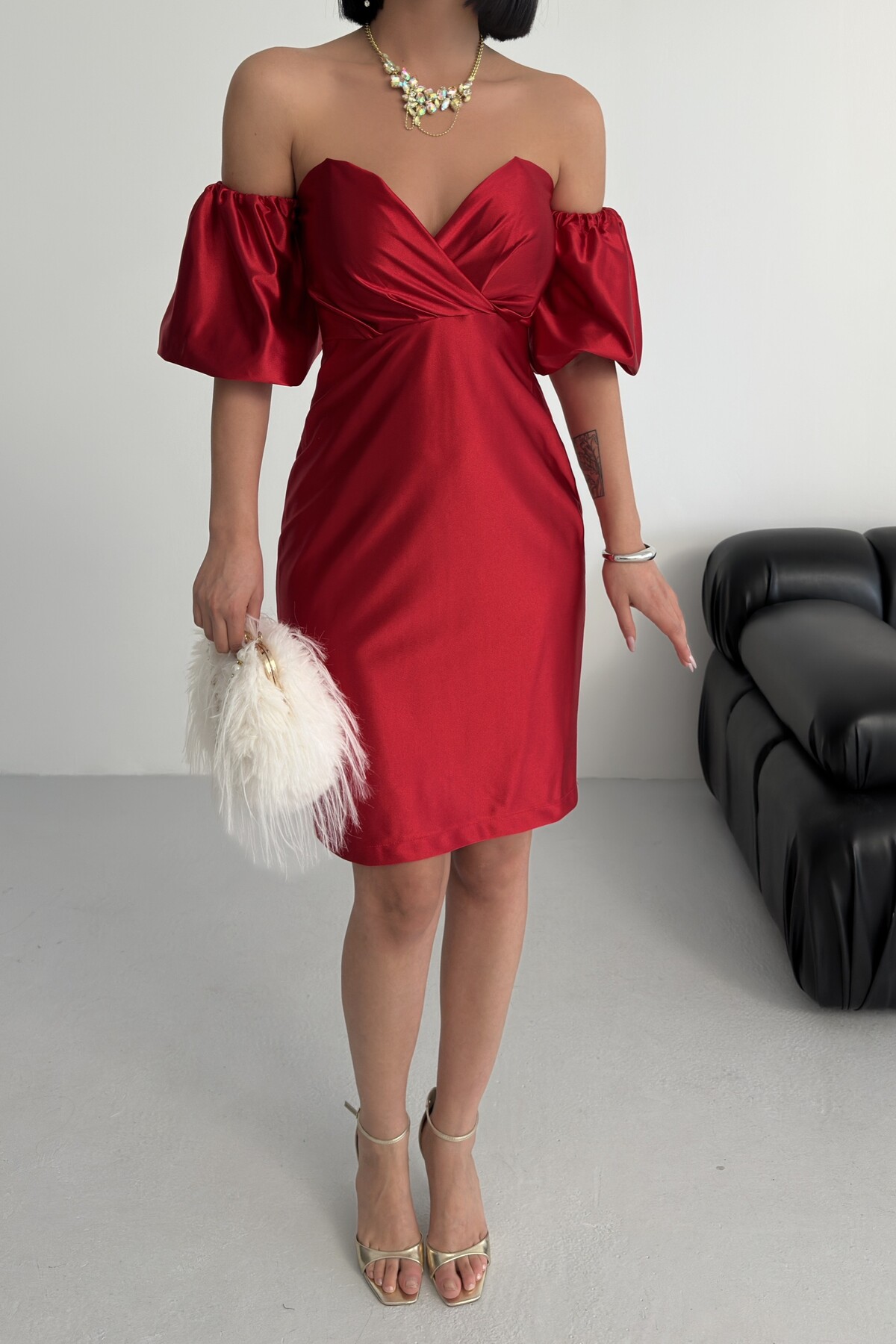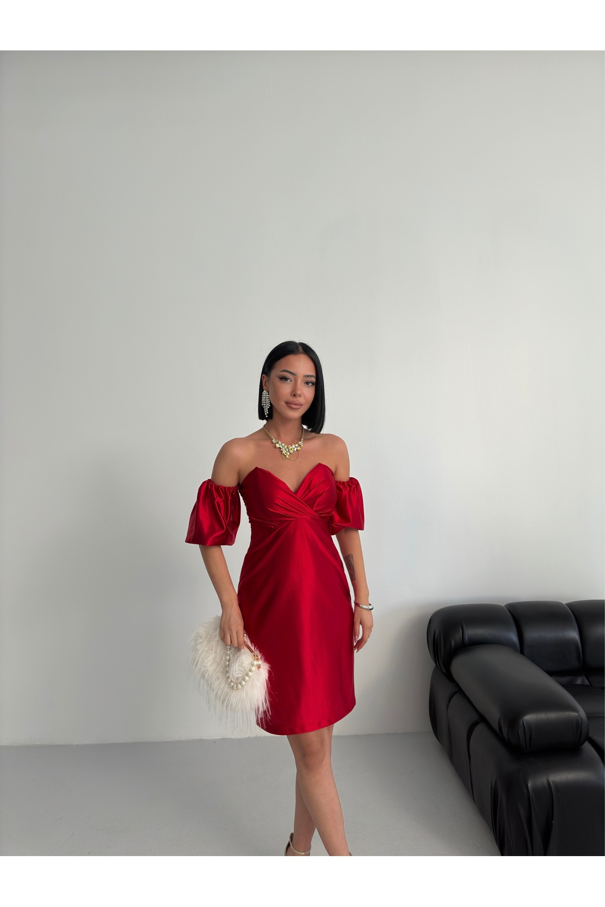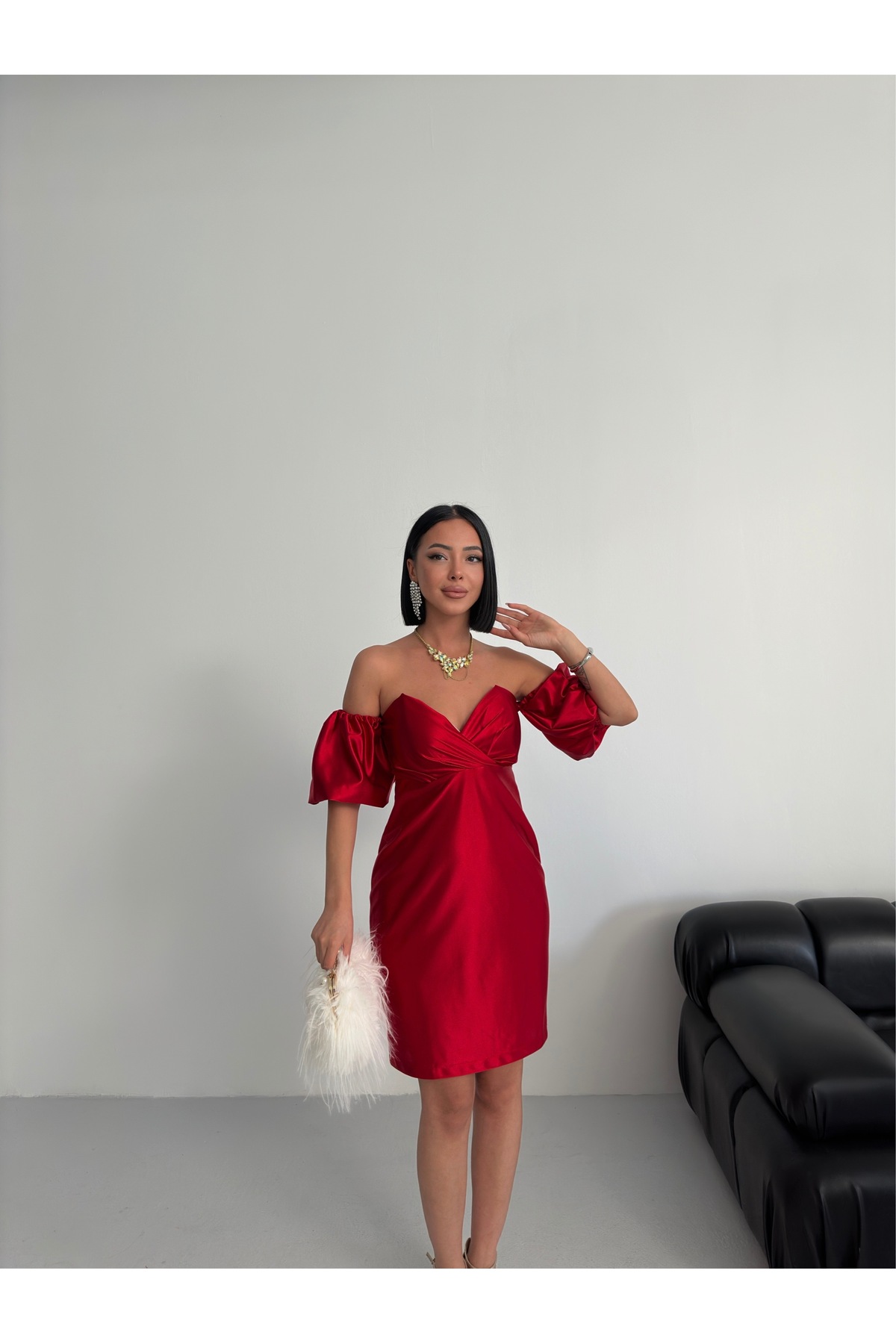 -Fermuarlı kapama özelliği ile kolayca giyilip çıkarılabilir, pratik kullanım sunar.; -Genç tarzını yansıtan tasarımıyla parti şıklığınızı tamamlar.; -Sürdürülebilir malzemeler kullanılarak üretilmiş olup çevreye duyarlı bir tercih yapmanızı sağlar.; -Kutusuz gönderim avantajıyla ekstra maliyetten tasarruf ederken, aynı zamanda minimalist bir yaklaşım sergilersiniz.; -Saten dokusu sayesinde pürüzsüz ve parlak bir görünüm kazandırırken, dikkat çekici detaylarıyla göz alıcı bir stil oluşturur.; -Party koleksiyonuna ait bu elbise, özel günlerdeki enerjinizi yansıtacak şekilde tasarlanmıştır.; -Lastikli bel detayı konforlu bir oturuş sağlarken vücut hatlarınıza mükemmel uyum gösterir.; -Düz kesimiyle zarif ve modern bir siluet çizer; her türden aksesuarla kombinlenebilirliği arttırır.; -Tüm sezonlarda rahatlıkla tercih edebileceğiniz çok yönlülükteki tasarım, gardrobunuzda yerini almayı hak ediyor.; Bodycone formu sayesinde feminen çizgilere sahip olan bu abiye elbise, sofistike duruşunu korurken hareket özgürlüğü de tanır.; -Dokuma kumaşı kaliteyi hissettiren yapıda olup uzun süreli kullanım vaad eder.; -Cepsiz yapısıyla minimalizmi benimseyerek sade ama etkileyici bir görünüm elde edersiniz.; -Kuru temizleme önerisiyle bakımı kolaylaşan bu saten abiye elbise, detaylı bakım talimatlarına ihtiyaç duymadan uzun ömürlü olabilir.; -Mini boyuyla genç ve dinamik bir hava katarken, kısa balon kolları mevsimsel geçişlerde ideal konforu sunar.; -Kadın/kız cinsiyetine hitap eden bu parça, her yaştaki yetişkin kadınların gardrobunda yerini almayı bekleyen şık seçimdir.;
