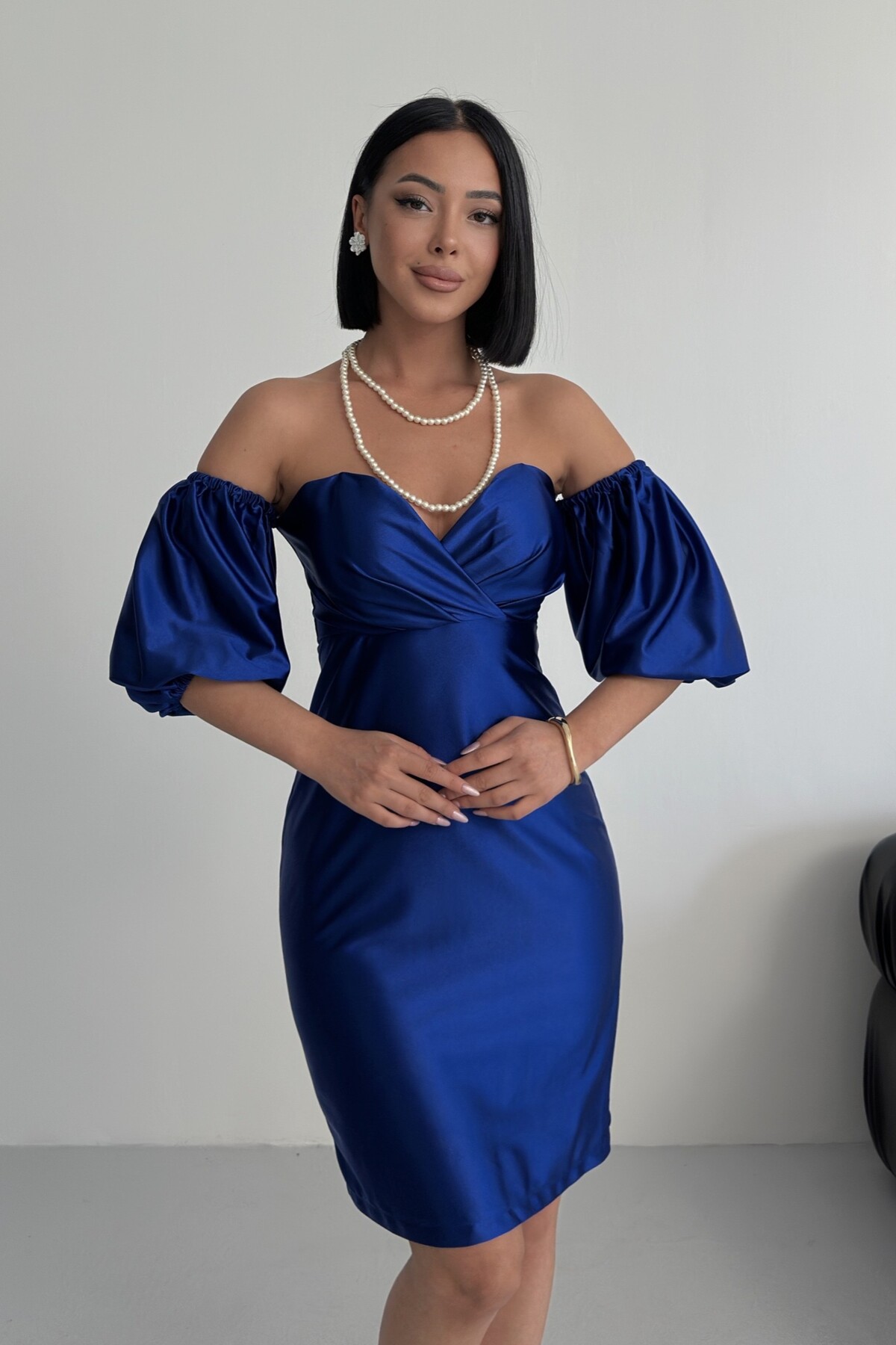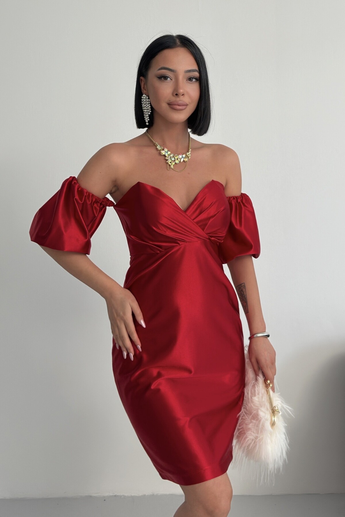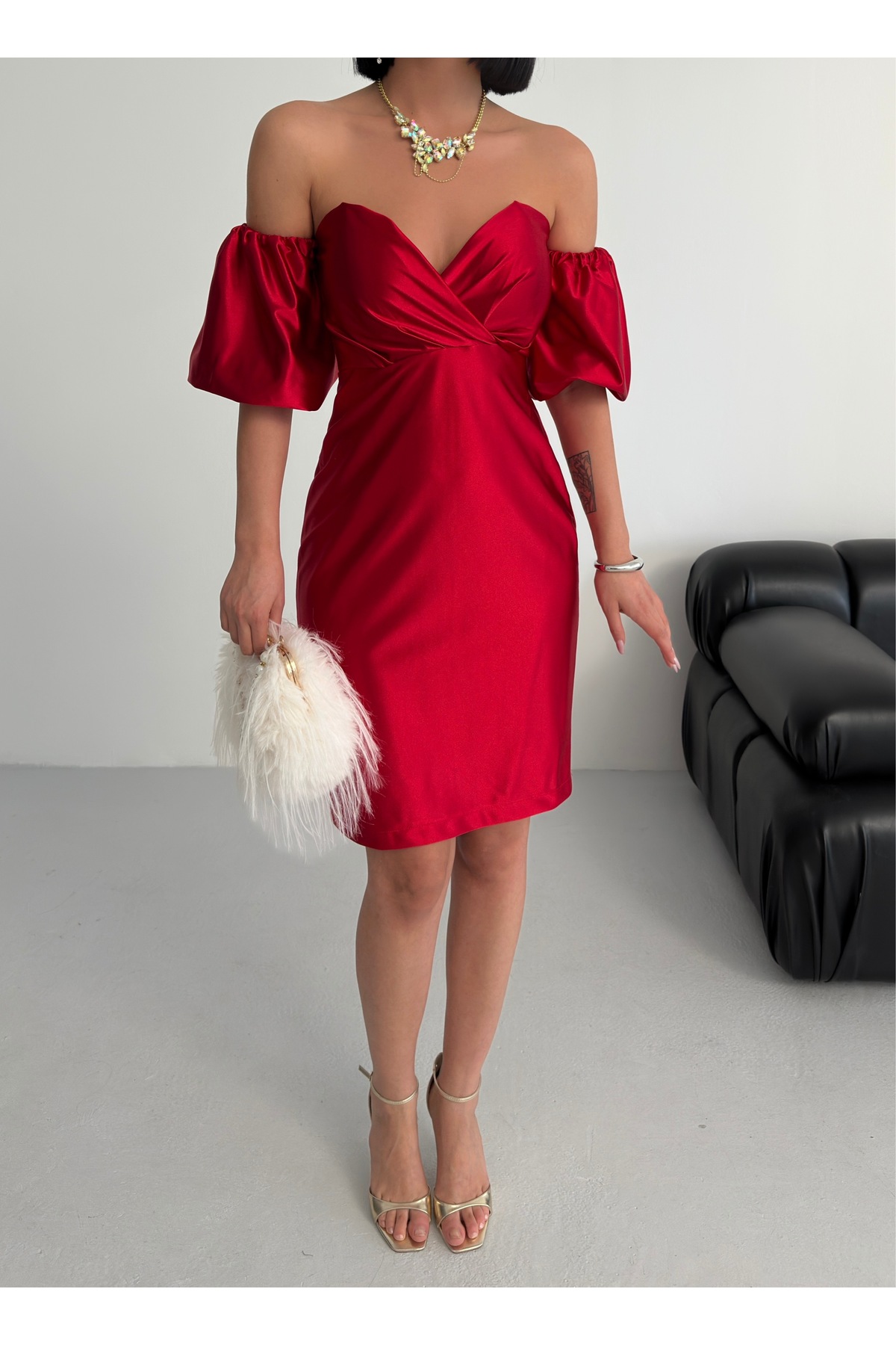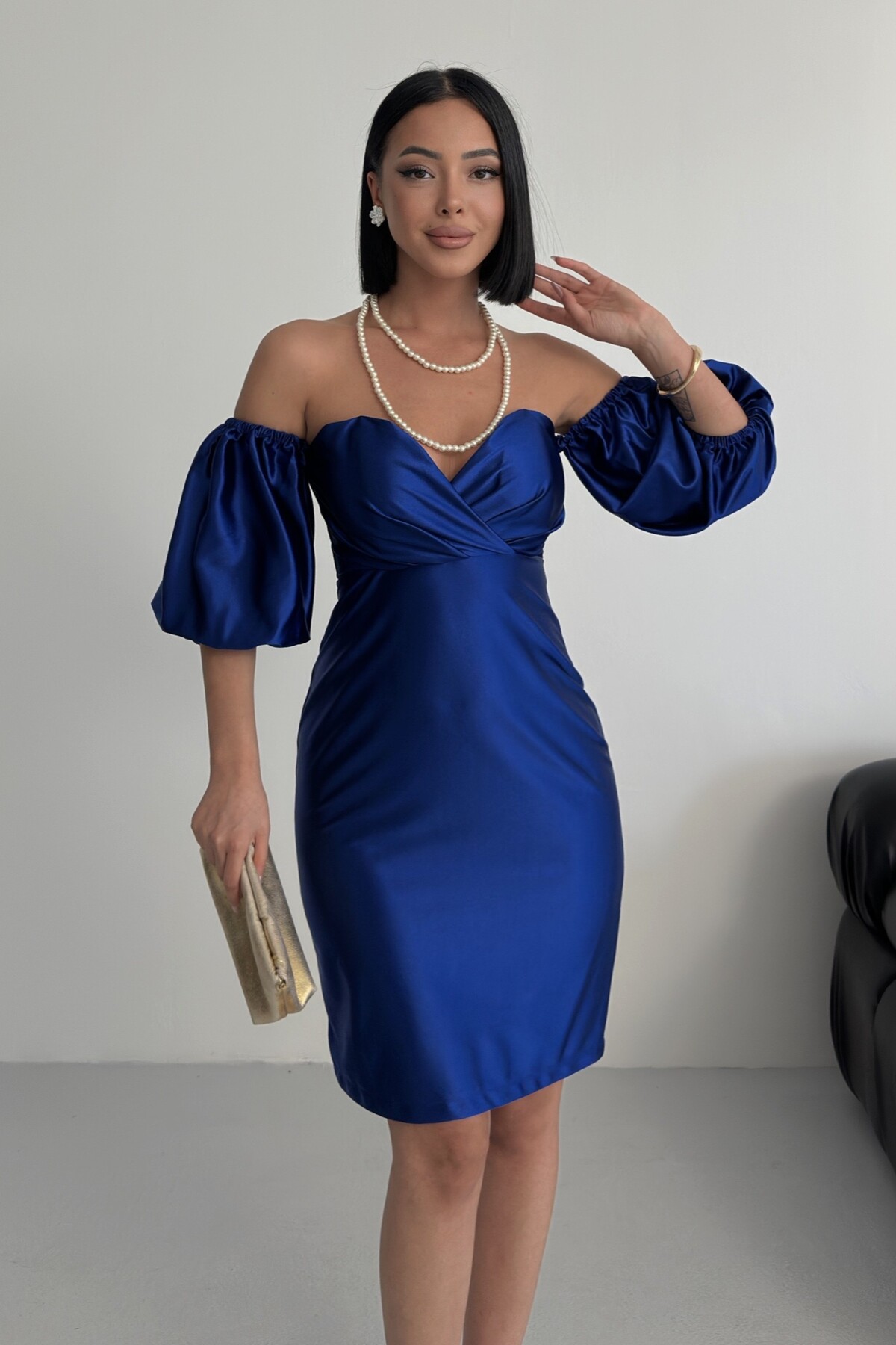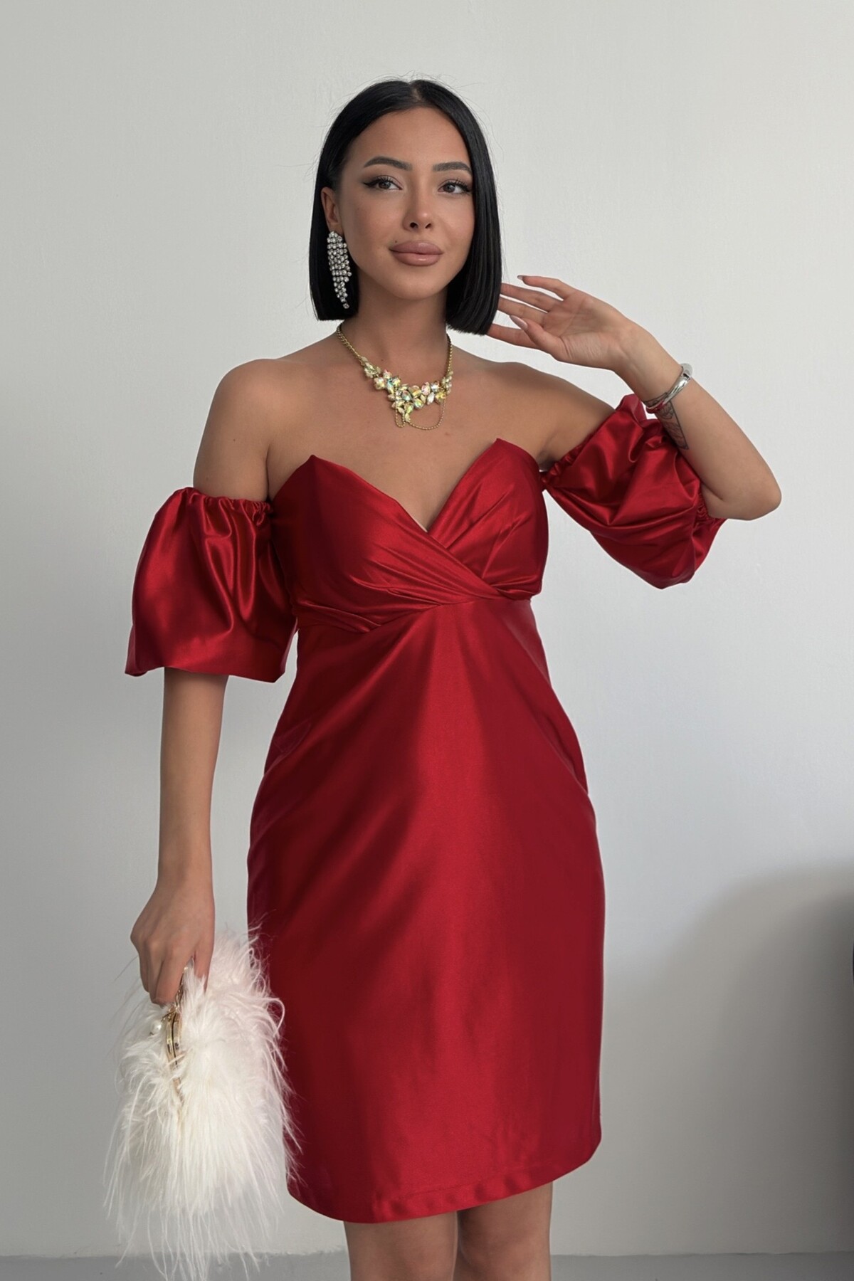 -Fermuarlı kapama özelliği ile kolayca giyilip çıkarılabilir, pratik kullanım sunar.; -Genç tarzını yansıtan tasarımıyla parti şıklığınızı tamamlar.; -Sürdürülebilir malzemeler kullanılarak üretilmiş olup çevreye duyarlı bir tercih yapmanızı sağlar.; -Kutusuz gönderim avantajıyla ekstra maliyetten tasarruf ederken, aynı zamanda minimalist bir yaklaşım sergilersiniz.; -Saten dokusu sayesinde pürüzsüz ve parlak bir görünüm kazandırırken, dikkat çekici detaylarıyla göz alıcı bir stil oluşturur.; -Party koleksiyonuna ait bu elbise, özel günlerdeki enerjinizi yansıtacak şekilde tasarlanmıştır.; -Lastikli bel detayı konforlu bir oturuş sağlarken vücut hatlarınıza mükemmel uyum gösterir.; -Düz kesimiyle zarif ve modern bir siluet çizer; her türden aksesuarla kombinlenebilirliği arttırır.; -Tüm sezonlarda rahatlıkla tercih edebileceğiniz çok yönlülükteki tasarım, gardrobunuzda yerini almayı hak ediyor.; Bodycone formu sayesinde feminen çizgilere sahip olan bu abiye elbise, sofistike duruşunu korurken hareket özgürlüğü de tanır.; -Dokuma kumaşı kaliteyi hissettiren yapıda olup uzun süreli kullanım vaad eder.; -Cepsiz yapısıyla minimalizmi benimseyerek sade ama etkileyici bir görünüm elde edersiniz.; -Kuru temizleme önerisiyle bakımı kolaylaşan bu saten abiye elbise, detaylı bakım talimatlarına ihtiyaç duymadan uzun ömürlü olabilir.; -Mini boyuyla genç ve dinamik bir hava katarken, kısa balon kolları mevsimsel geçişlerde ideal konforu sunar.; -Kadın/kız cinsiyetine hitap eden bu parça, her yaştaki yetişkin kadınların gardrobunda yerini almayı bekleyen şık seçimdir.;
