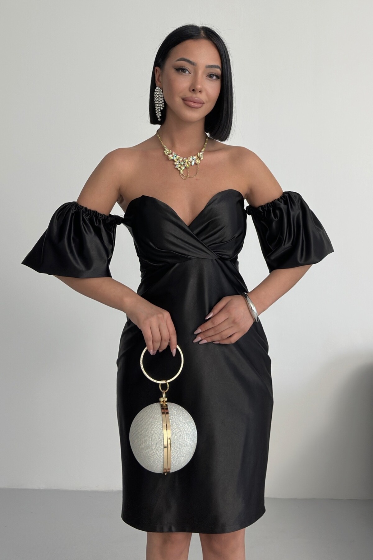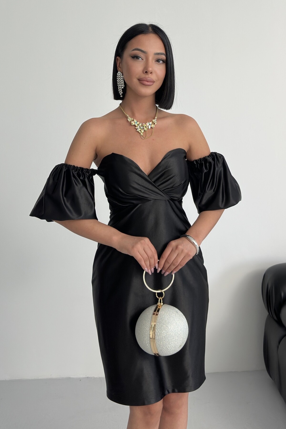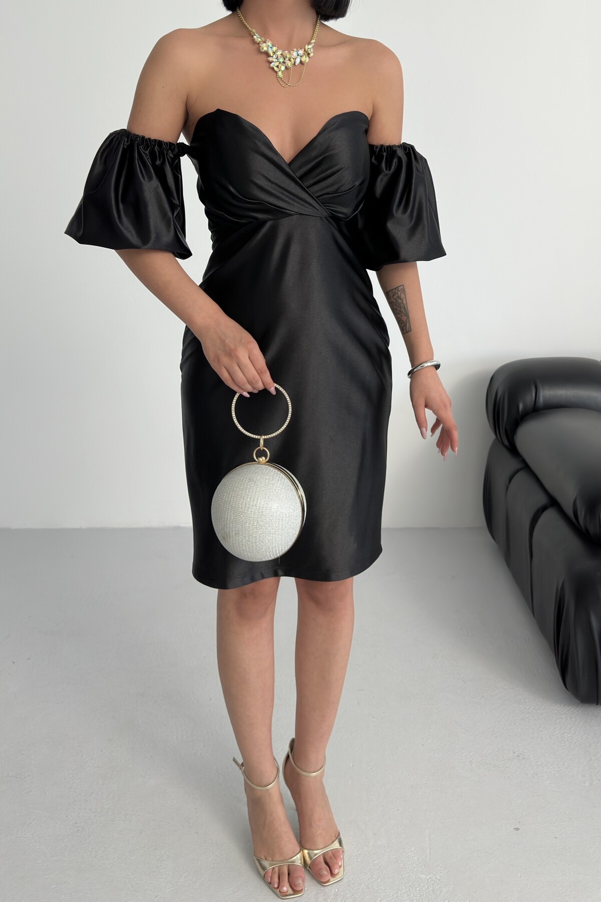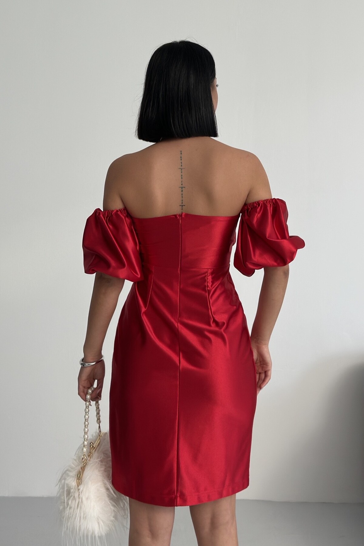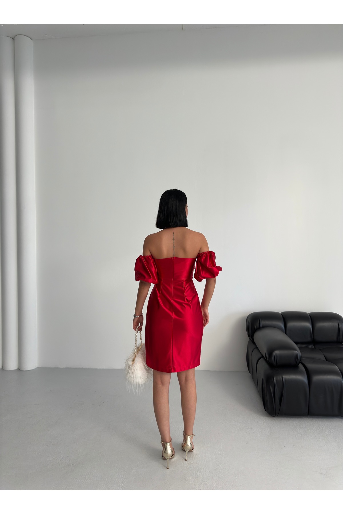 -Fermuarlı kapama özelliği ile kolayca giyilip çıkarılabilir, pratik kullanım sunar.; -Genç tarzını yansıtan tasarımıyla parti şıklığınızı tamamlar.; -Sürdürülebilir malzemeler kullanılarak üretilmiş olup çevreye duyarlı bir tercih yapmanızı sağlar.; -Kutusuz gönderim avantajıyla ekstra maliyetten tasarruf ederken, aynı zamanda minimalist bir yaklaşım sergilersiniz.; -Saten dokusu sayesinde pürüzsüz ve parlak bir görünüm kazandırırken, dikkat çekici detaylarıyla göz alıcı bir stil oluşturur.; -Party koleksiyonuna ait bu elbise, özel günlerdeki enerjinizi yansıtacak şekilde tasarlanmıştır.; -Lastikli bel detayı konforlu bir oturuş sağlarken vücut hatlarınıza mükemmel uyum gösterir.; -Düz kesimiyle zarif ve modern bir siluet çizer; her türden aksesuarla kombinlenebilirliği arttırır.; -Tüm sezonlarda rahatlıkla tercih edebileceğiniz çok yönlülükteki tasarım, gardrobunuzda yerini almayı hak ediyor.; Bodycone formu sayesinde feminen çizgilere sahip olan bu abiye elbise, sofistike duruşunu korurken hareket özgürlüğü de tanır.; -Dokuma kumaşı kaliteyi hissettiren yapıda olup uzun süreli kullanım vaad eder.; -Cepsiz yapısıyla minimalizmi benimseyerek sade ama etkileyici bir görünüm elde edersiniz.; -Kuru temizleme önerisiyle bakımı kolaylaşan bu saten abiye elbise, detaylı bakım talimatlarına ihtiyaç duymadan uzun ömürlü olabilir.; -Mini boyuyla genç ve dinamik bir hava katarken, kısa balon kolları mevsimsel geçişlerde ideal konforu sunar.; -Kadın/kız cinsiyetine hitap eden bu parça, her yaştaki yetişkin kadınların gardrobunda yerini almayı bekleyen şık seçimdir.;