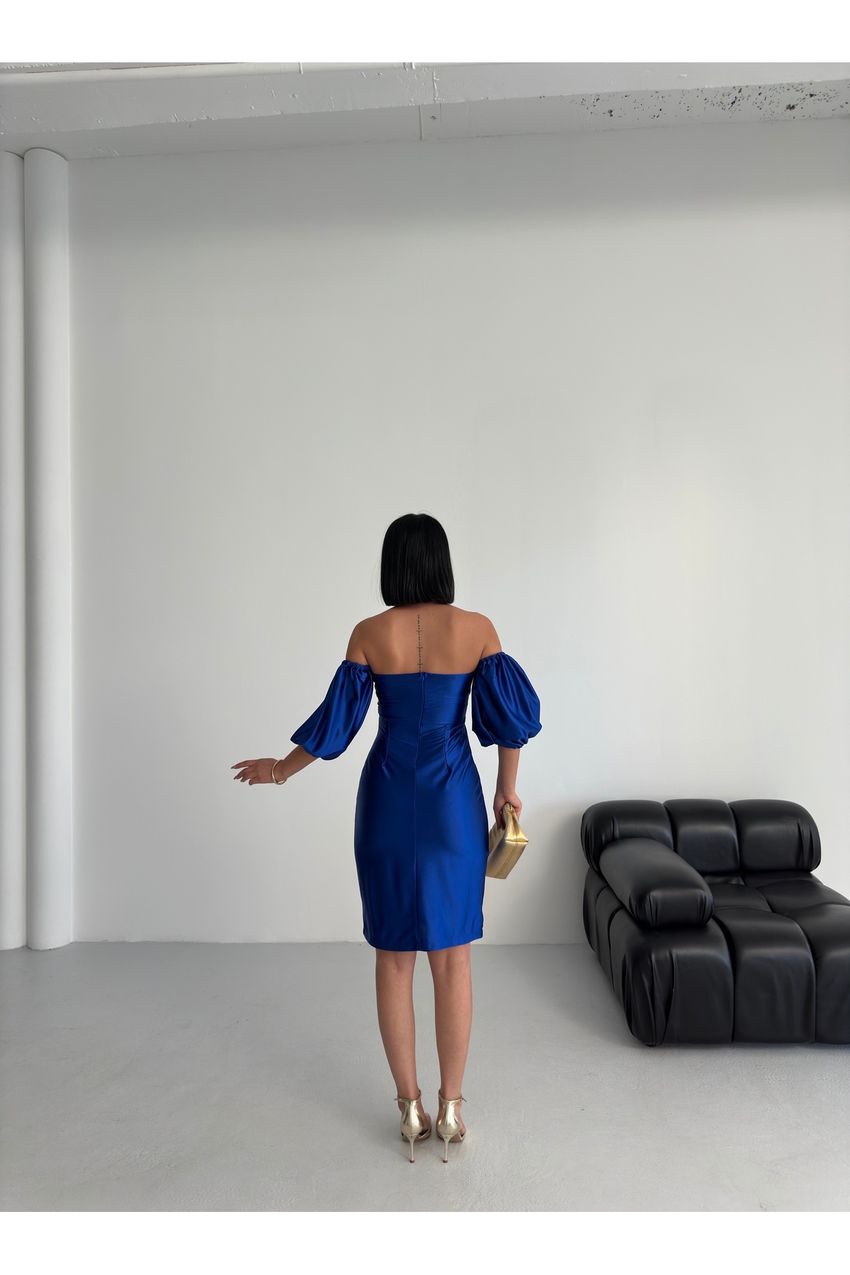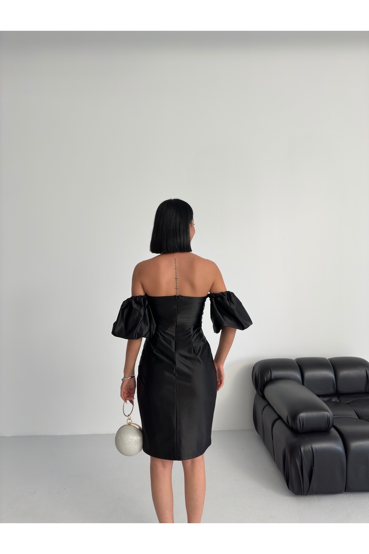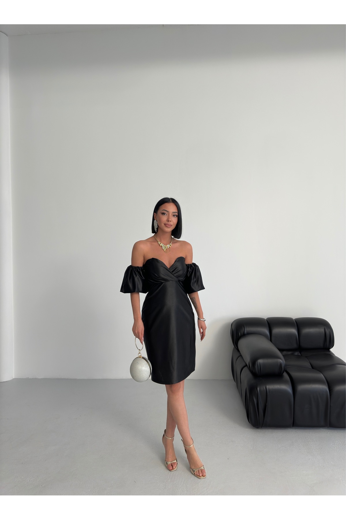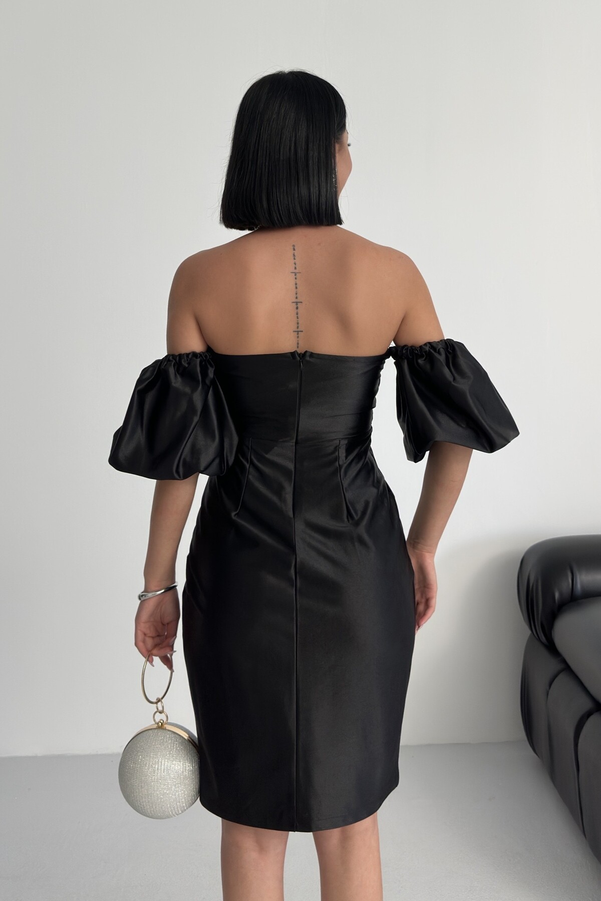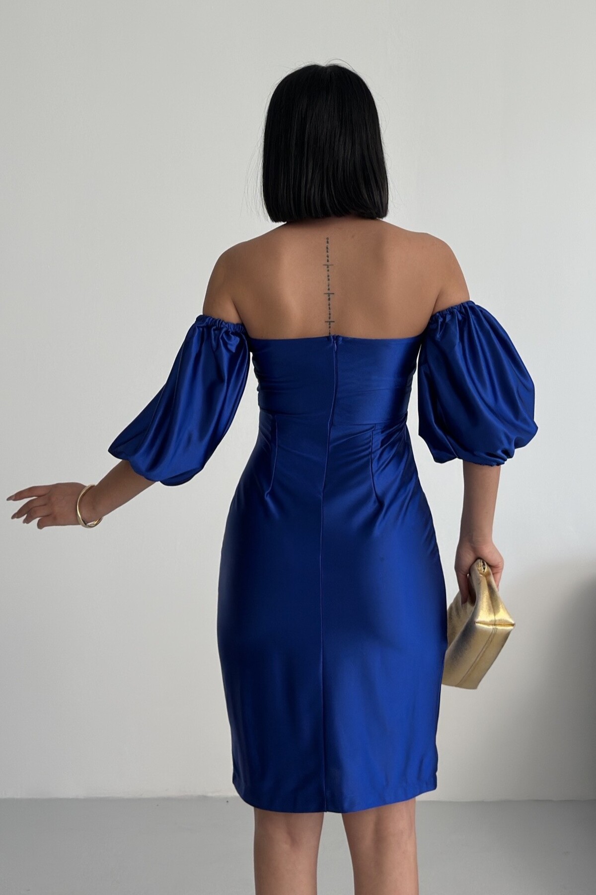 -Fermuarlı kapama özelliği ile kolayca giyilip çıkarılabilir, pratik kullanım sunar.; -Genç tarzını yansıtan tasarımıyla parti şıklığınızı tamamlar.; -Sürdürülebilir malzemeler kullanılarak üretilmiş olup çevreye duyarlı bir tercih yapmanızı sağlar.; -Kutusuz gönderim avantajıyla ekstra maliyetten tasarruf ederken, aynı zamanda minimalist bir yaklaşım sergilersiniz.; -Saten dokusu sayesinde pürüzsüz ve parlak bir görünüm kazandırırken, dikkat çekici detaylarıyla göz alıcı bir stil oluşturur.; -Party koleksiyonuna ait bu elbise, özel günlerdeki enerjinizi yansıtacak şekilde tasarlanmıştır.; -Lastikli bel detayı konforlu bir oturuş sağlarken vücut hatlarınıza mükemmel uyum gösterir.; -Düz kesimiyle zarif ve modern bir siluet çizer; her türden aksesuarla kombinlenebilirliği arttırır.; -Tüm sezonlarda rahatlıkla tercih edebileceğiniz çok yönlülükteki tasarım, gardrobunuzda yerini almayı hak ediyor.; Bodycone formu sayesinde feminen çizgilere sahip olan bu abiye elbise, sofistike duruşunu korurken hareket özgürlüğü de tanır.; -Dokuma kumaşı kaliteyi hissettiren yapıda olup uzun süreli kullanım vaad eder.; -Cepsiz yapısıyla minimalizmi benimseyerek sade ama etkileyici bir görünüm elde edersiniz.; -Kuru temizleme önerisiyle bakımı kolaylaşan bu saten abiye elbise, detaylı bakım talimatlarına ihtiyaç duymadan uzun ömürlü olabilir.; -Mini boyuyla genç ve dinamik bir hava katarken, kısa balon kolları mevsimsel geçişlerde ideal konforu sunar.; -Kadın/kız cinsiyetine hitap eden bu parça, her yaştaki yetişkin kadınların gardrobunda yerini almayı bekleyen şık seçimdir.;