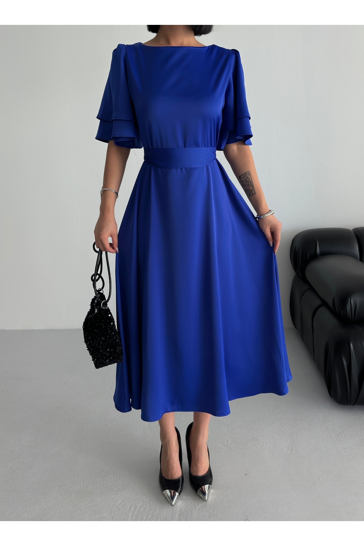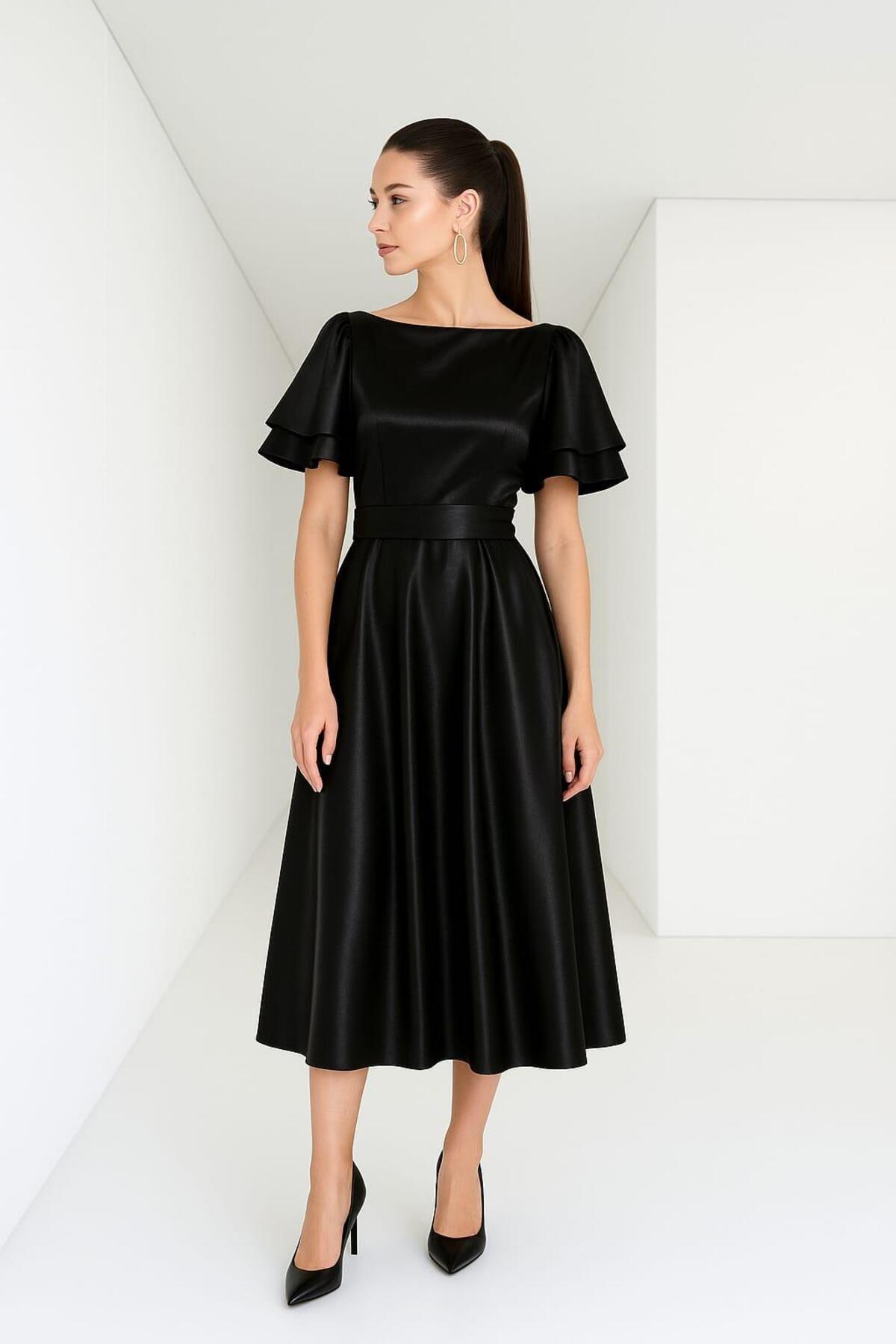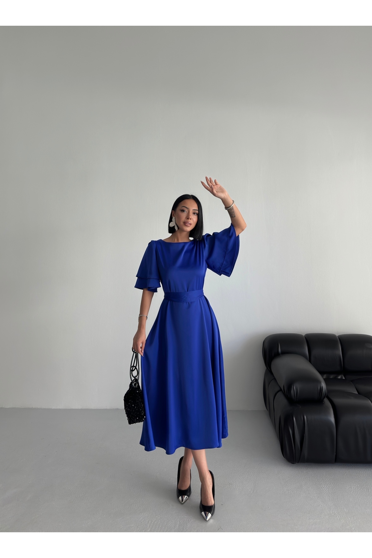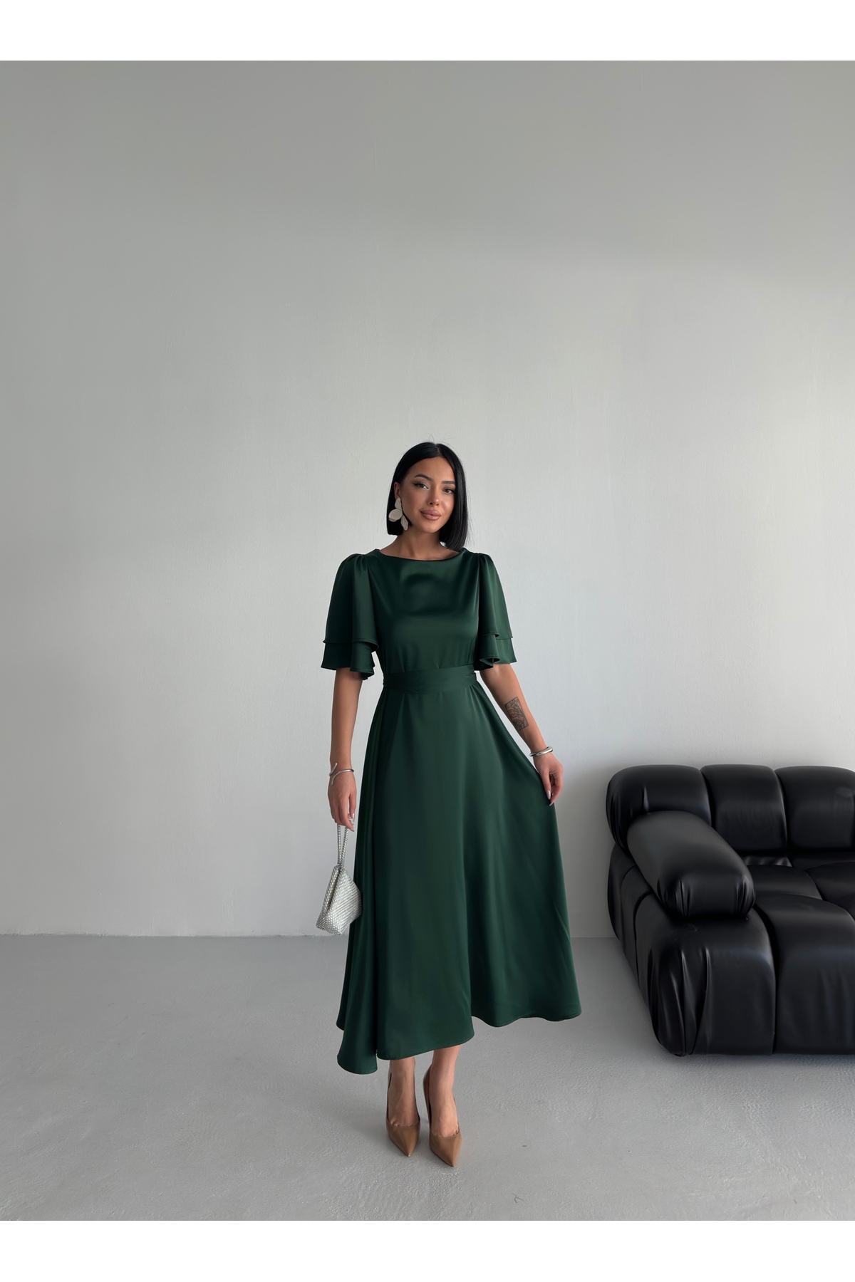 Saten kumaşın zarif dokusuyla öne çıkan bu abiye elbise, tüm özel günlerinizde şıklığınızı tamamlar; Klasik siyah rengiyle her zaman moda olan bu elbise, farklı yaş gruplarına hitap eder ve zamansız bir tarz sunar; İspanyol kol tasarımı ile modern ve feminen bir siluet oluştururken, kayık yaka detayı dekolte bölgesini zarifçe vurgular; Belinizi saran kuşak detayı sayesinde vücut hatlarınıza mükemmel uyum sağlar ve feminen bir duruş kazandırır; Regular kalıp ile rahat hareket etme özgürlüğü sunarken, dokuma kumaş tipi dayanıklılığı arttırarak uzun süreli kullanım imkanı tanır; Düz kesimiyle sade ve şık bir görünüm sergilerken, kloş silueti hareket özgürlüğünüzü kısıtlamaz; Pratik kuşak kapama şekliyle kolayca giyilip çıkartılabilir ve kişisel zevkinize göre ayarlama imkanı sunar;