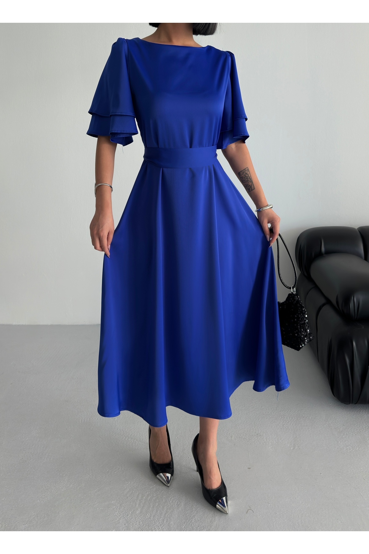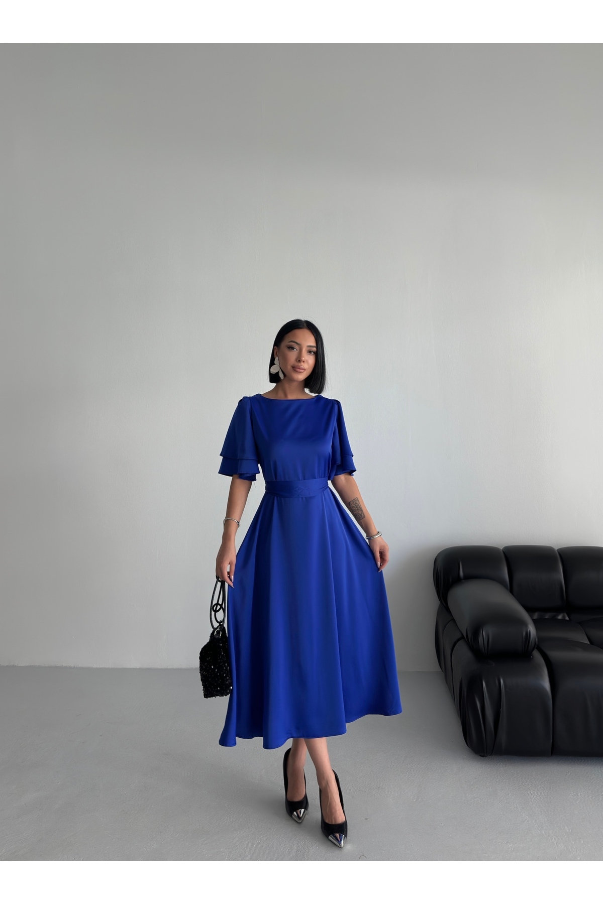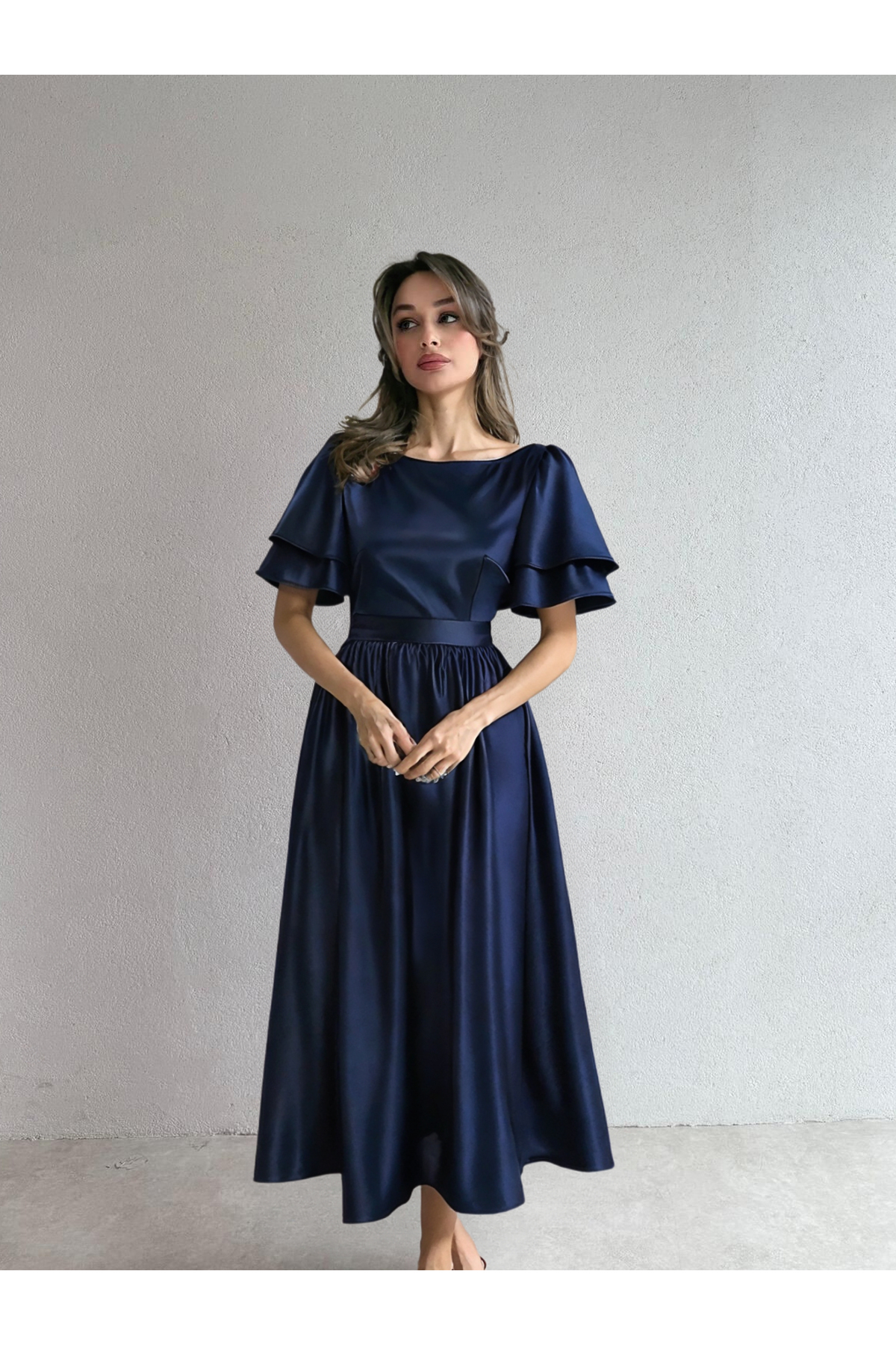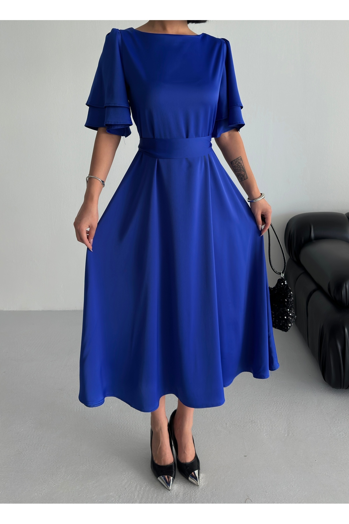 Saten kumaşın zarif dokusuyla öne çıkan bu abiye elbise, tüm özel günlerinizde şıklığınızı tamamlar; Klasik siyah rengiyle her zaman moda olan bu elbise, farklı yaş gruplarına hitap eder ve zamansız bir tarz sunar; İspanyol kol tasarımı ile modern ve feminen bir siluet oluştururken, kayık yaka detayı dekolte bölgesini zarifçe vurgular; Belinizi saran kuşak detayı sayesinde vücut hatlarınıza mükemmel uyum sağlar ve feminen bir duruş kazandırır; Regular kalıp ile rahat hareket etme özgürlüğü sunarken, dokuma kumaş tipi dayanıklılığı arttırarak uzun süreli kullanım imkanı tanır; Düz kesimiyle sade ve şık bir görünüm sergilerken, kloş silueti hareket özgürlüğünüzü kısıtlamaz; Pratik kuşak kapama şekliyle kolayca giyilip çıkartılabilir ve kişisel zevkinize göre ayarlama imkanı sunar;