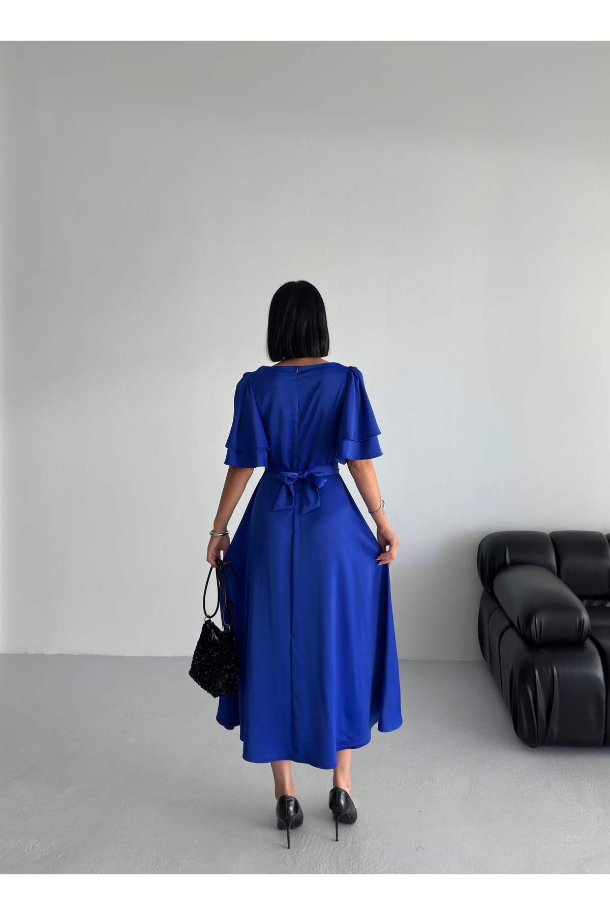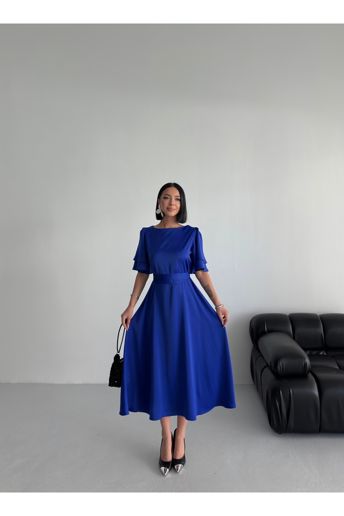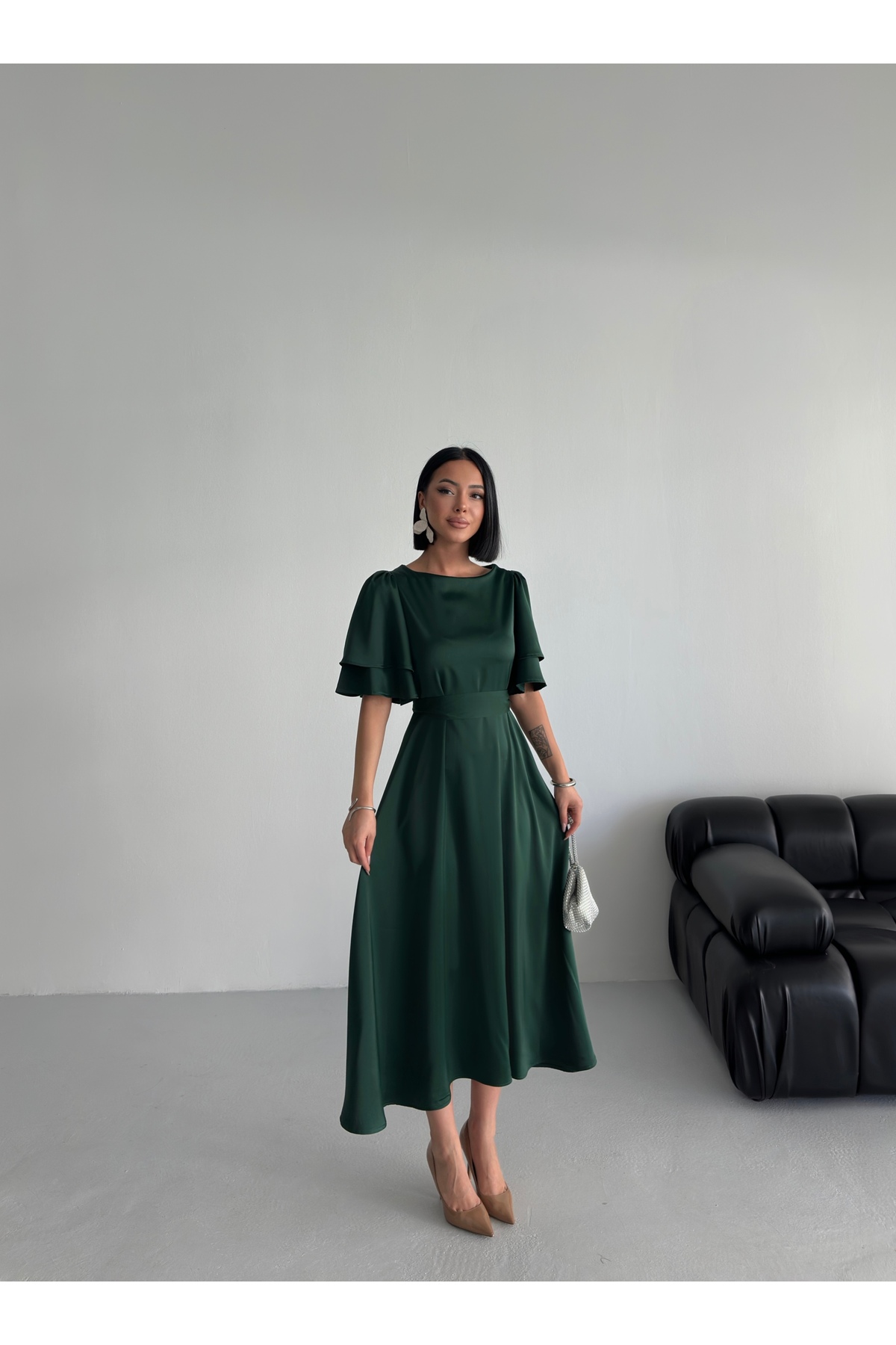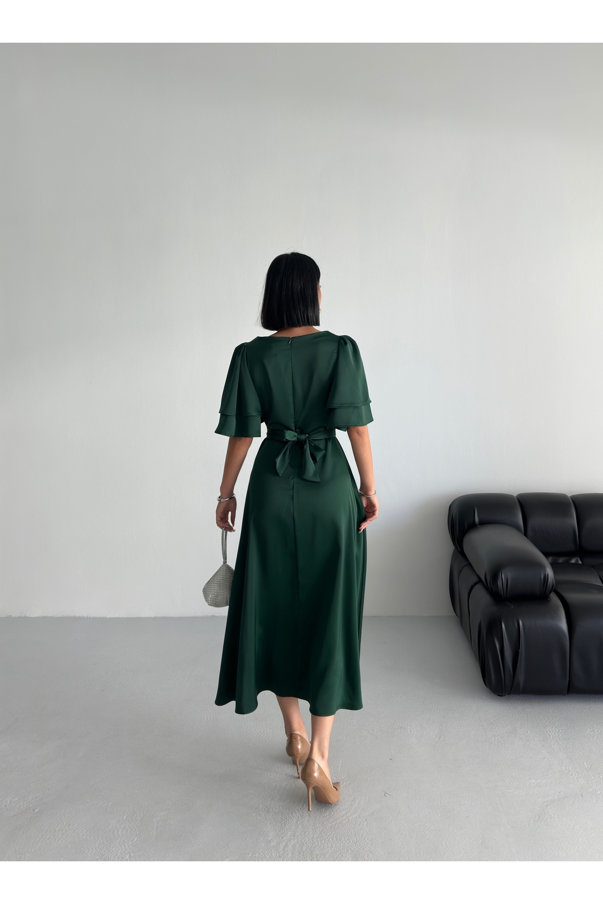 Saten kumaşın zarif dokusuyla öne çıkan bu abiye elbise, tüm özel günlerinizde şıklığınızı tamamlar; Klasik siyah rengiyle her zaman moda olan bu elbise, farklı yaş gruplarına hitap eder ve zamansız bir tarz sunar; İspanyol kol tasarımı ile modern ve feminen bir siluet oluştururken, kayık yaka detayı dekolte bölgesini zarifçe vurgular; Belinizi saran kuşak detayı sayesinde vücut hatlarınıza mükemmel uyum sağlar ve feminen bir duruş kazandırır; Regular kalıp ile rahat hareket etme özgürlüğü sunarken, dokuma kumaş tipi dayanıklılığı arttırarak uzun süreli kullanım imkanı tanır; Düz kesimiyle sade ve şık bir görünüm sergilerken, kloş silueti hareket özgürlüğünüzü kısıtlamaz; Pratik kuşak kapama şekliyle kolayca giyilip çıkartılabilir ve kişisel zevkinize göre ayarlama imkanı sunar;