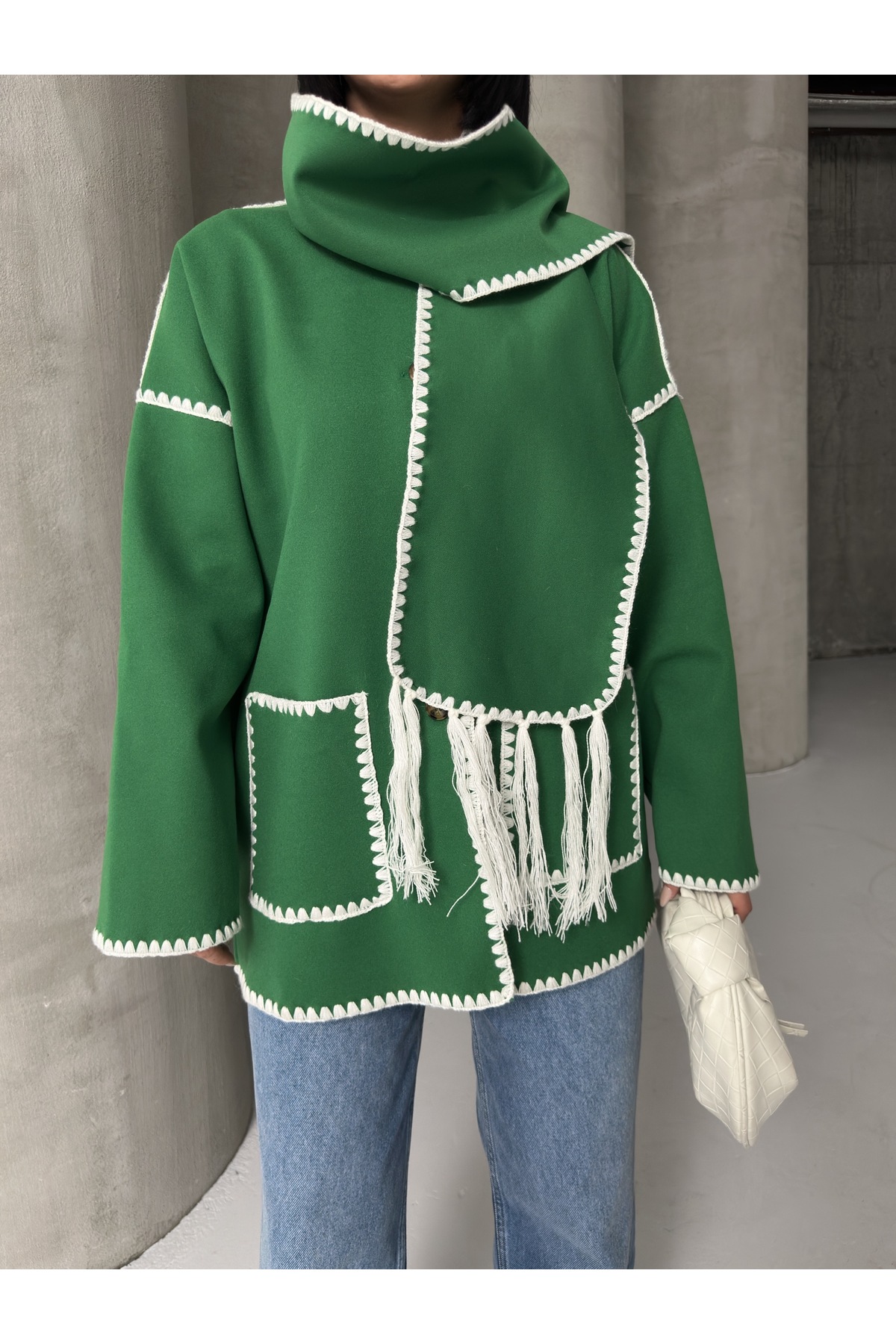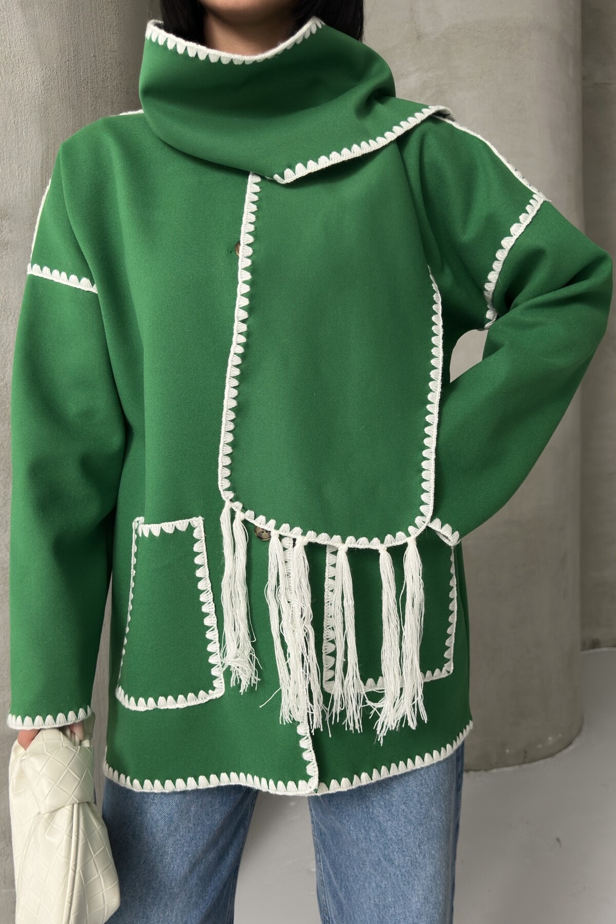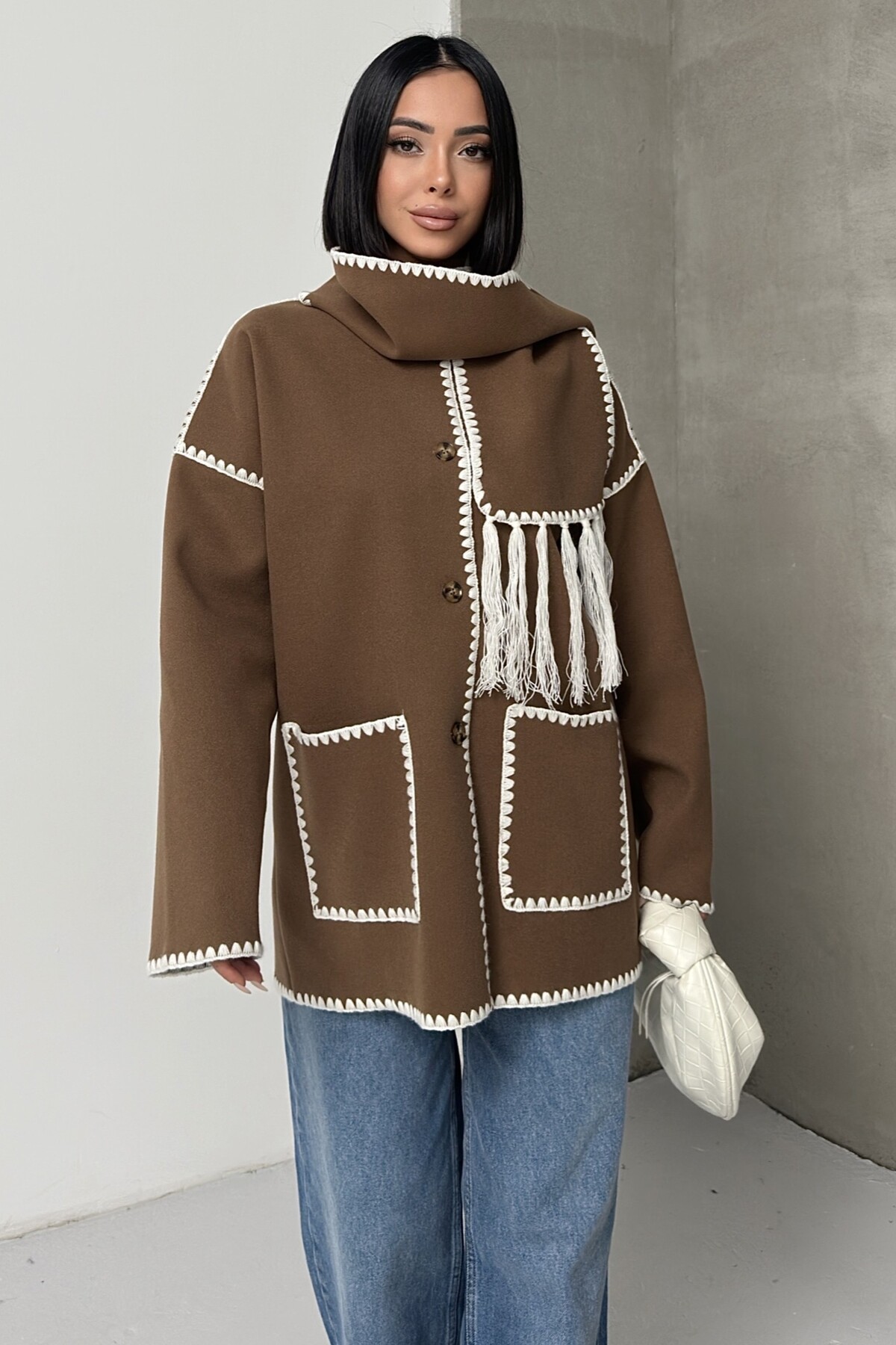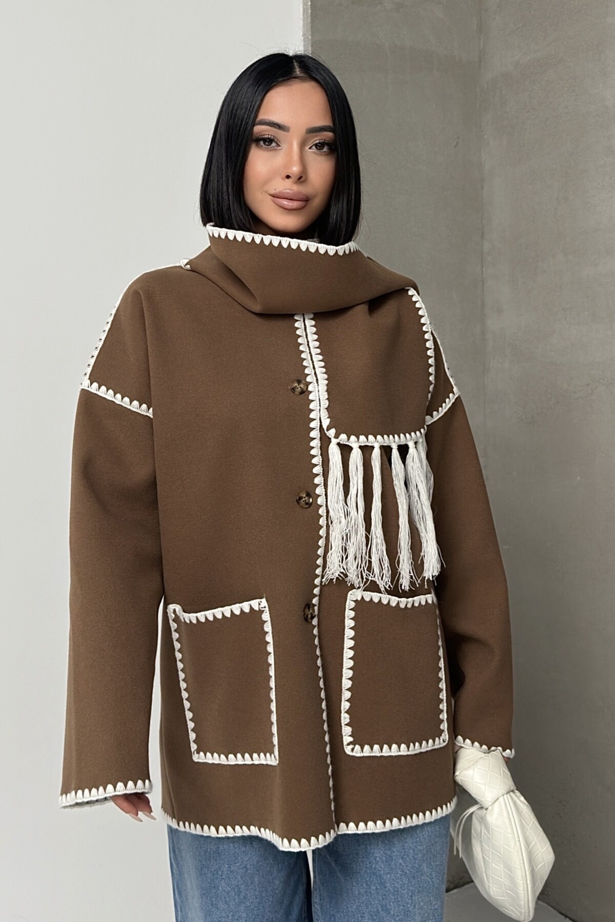 Nakış Detaylı Atkılı Yumuşak Triko Hırka Ceket Bej