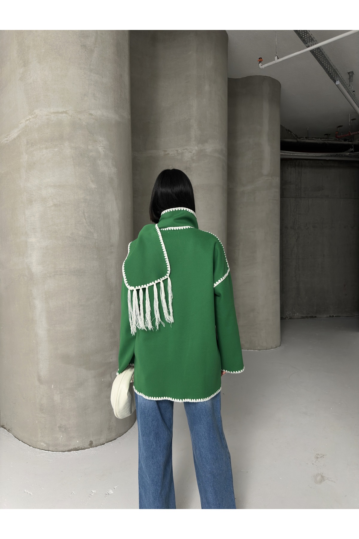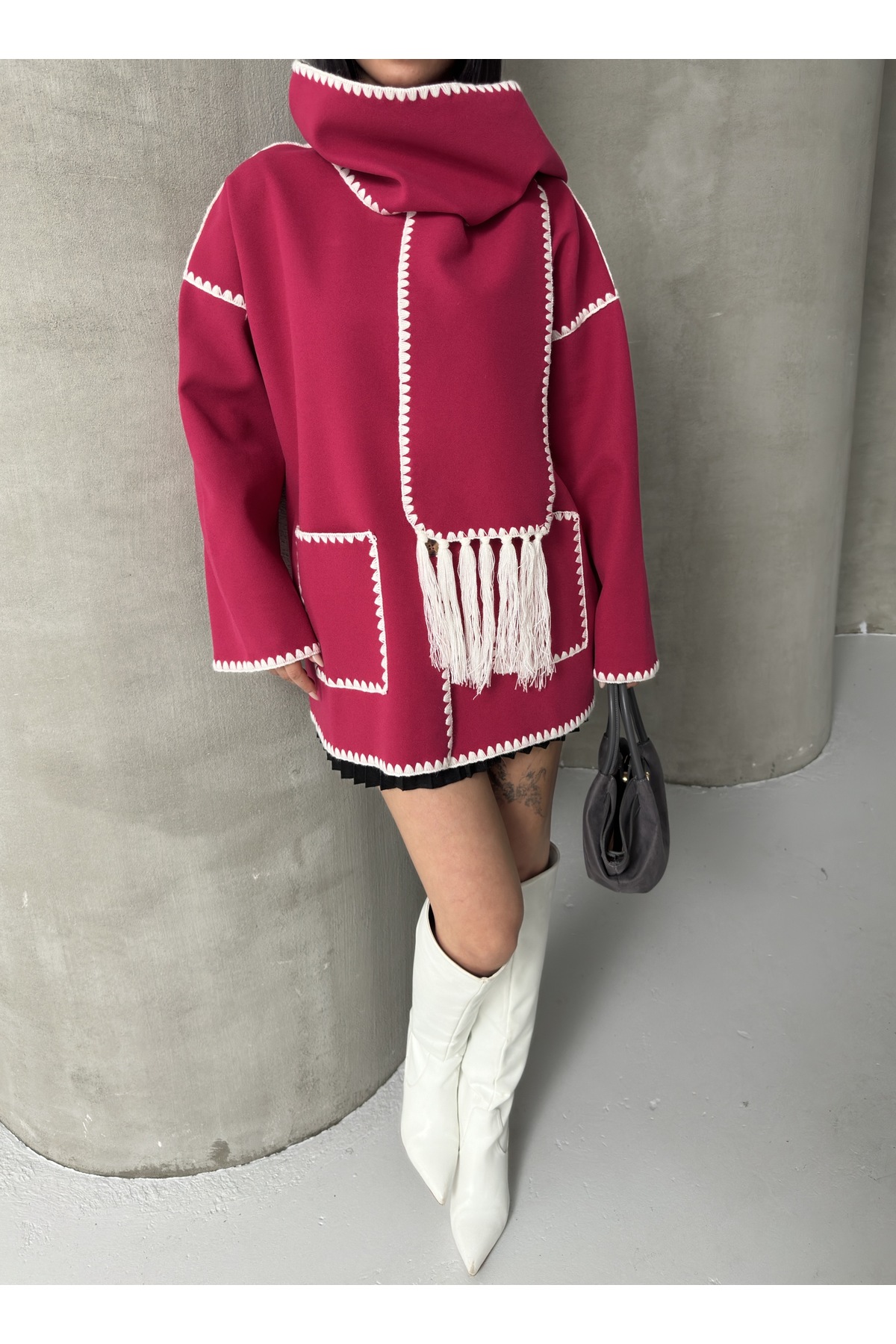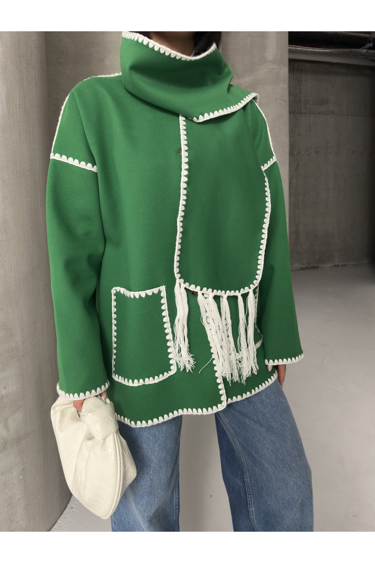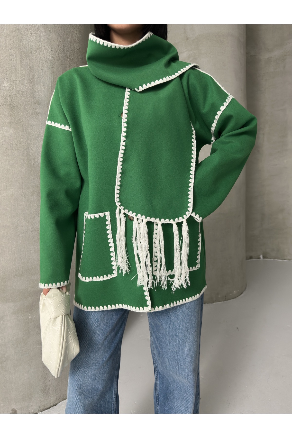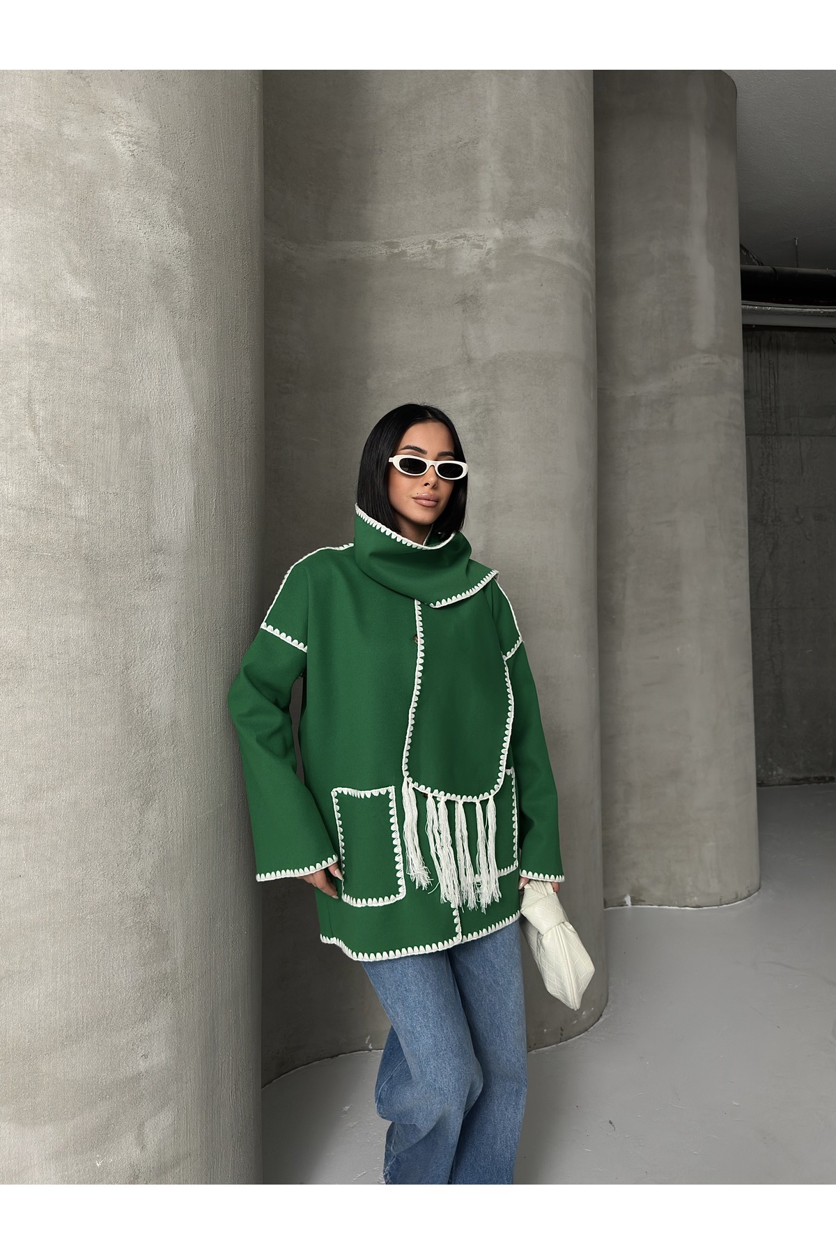 Nakış Detaylı Atkılı Yumuşak Triko Hırka Ceket Bej