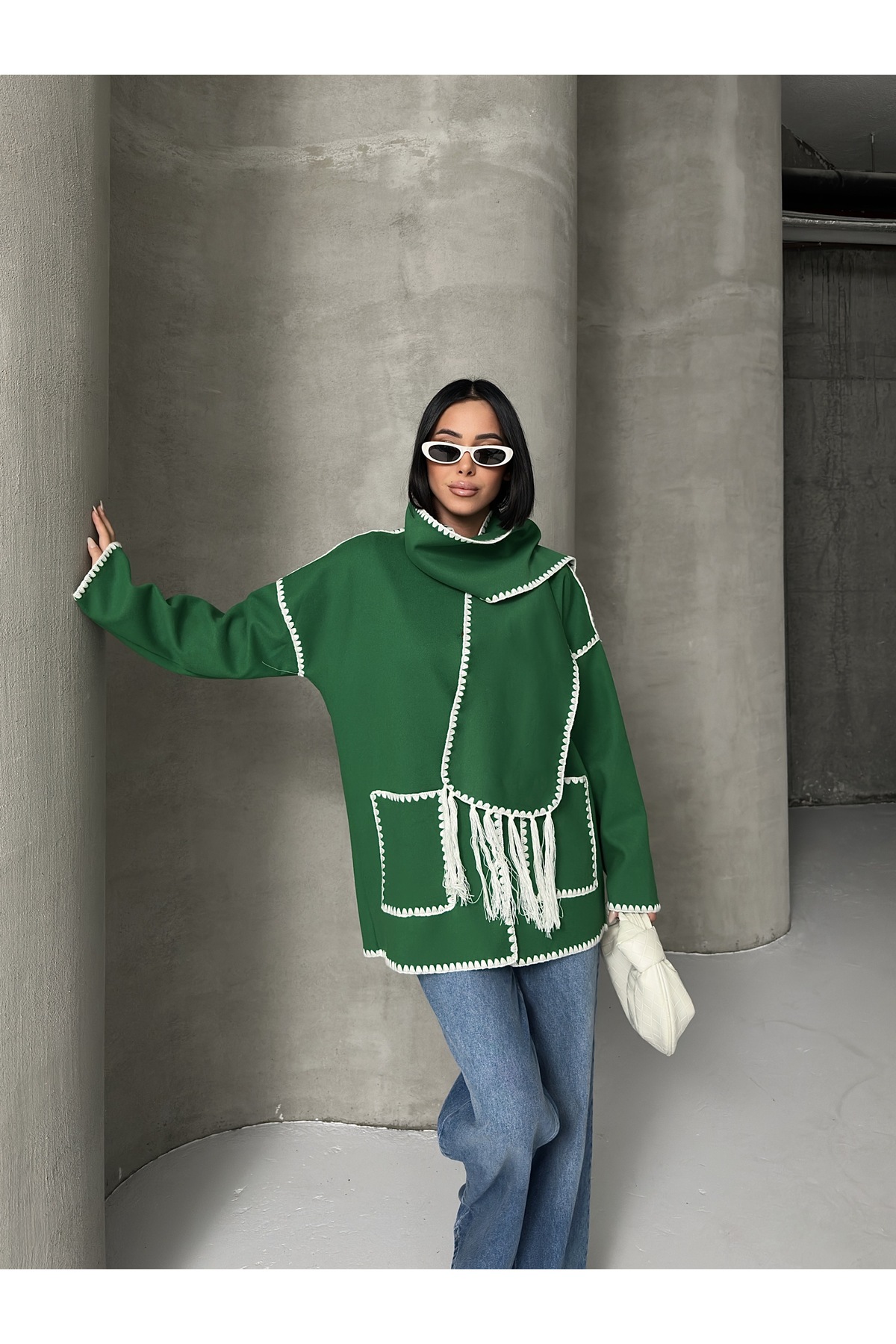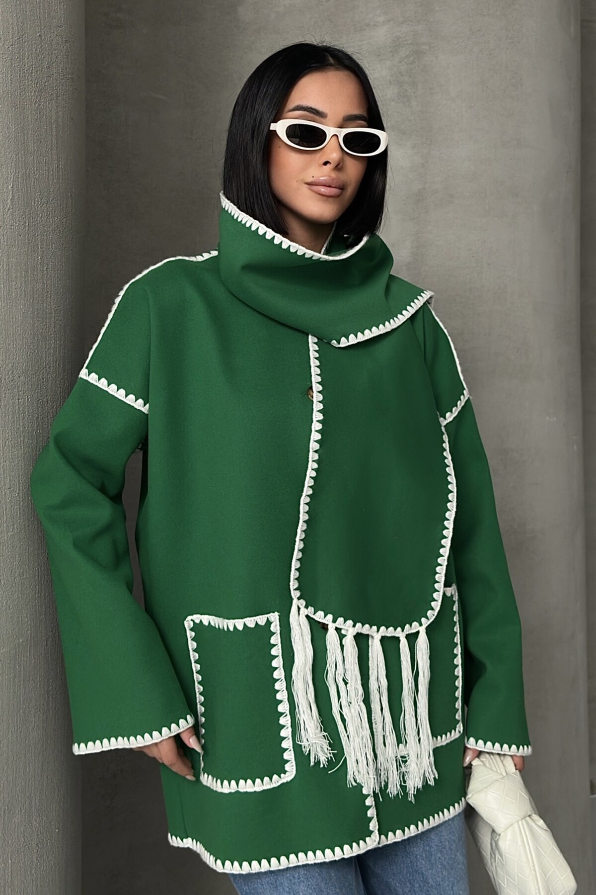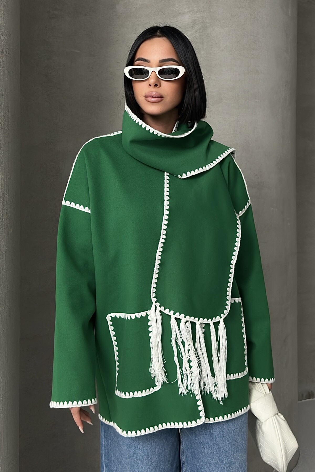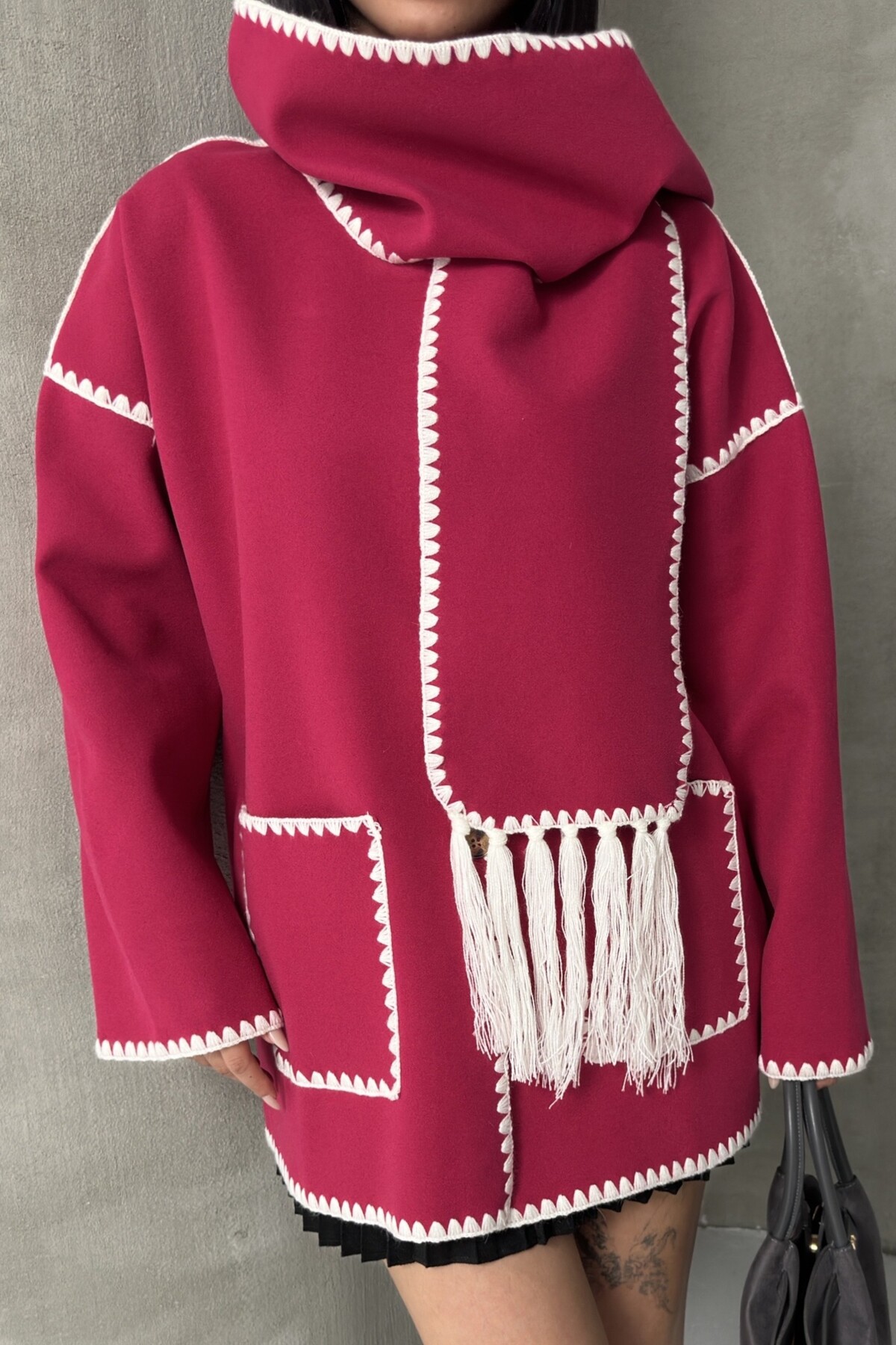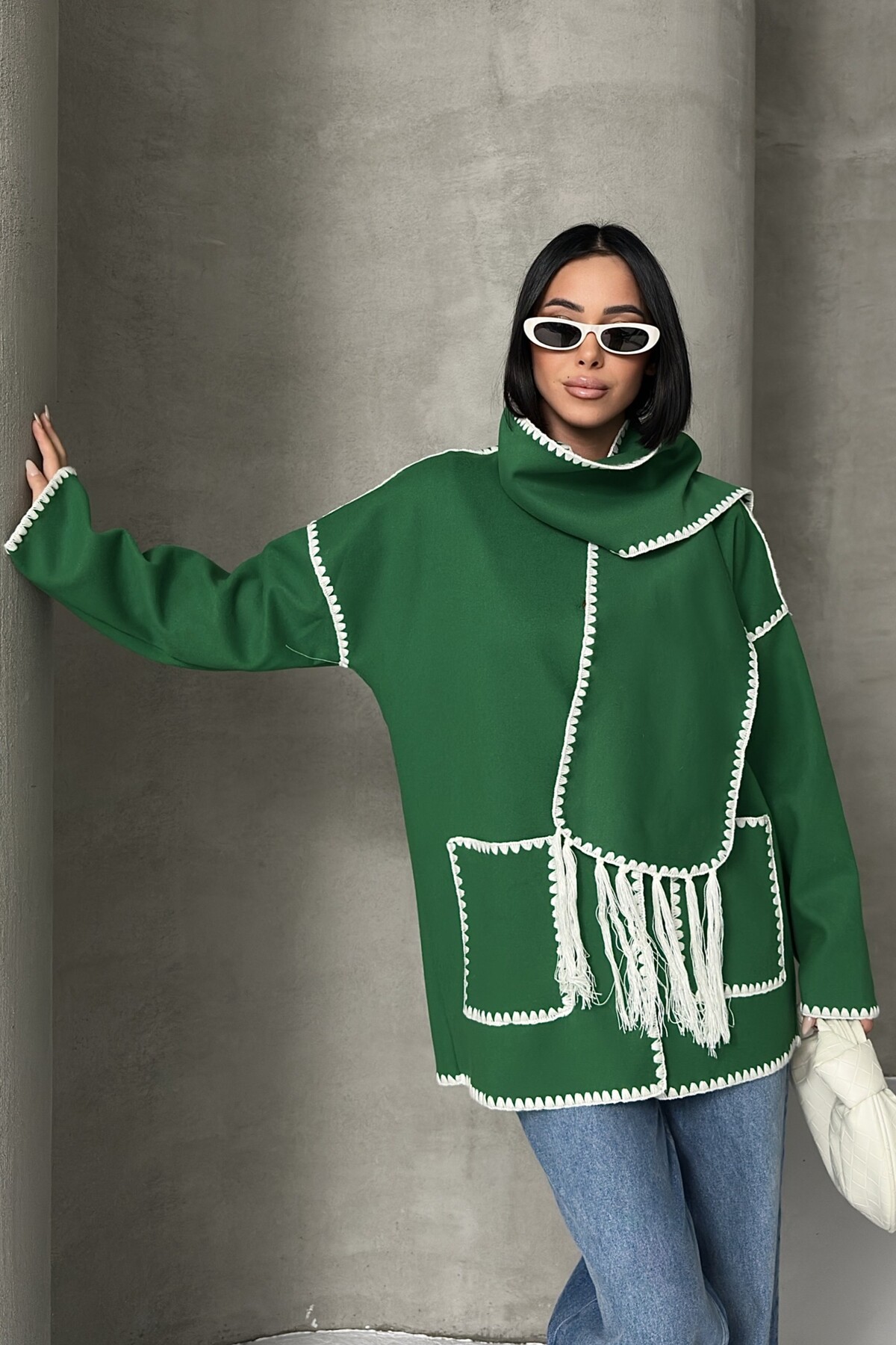 Nakış Detaylı Atkılı Yumuşak Triko Hırka Ceket Bej