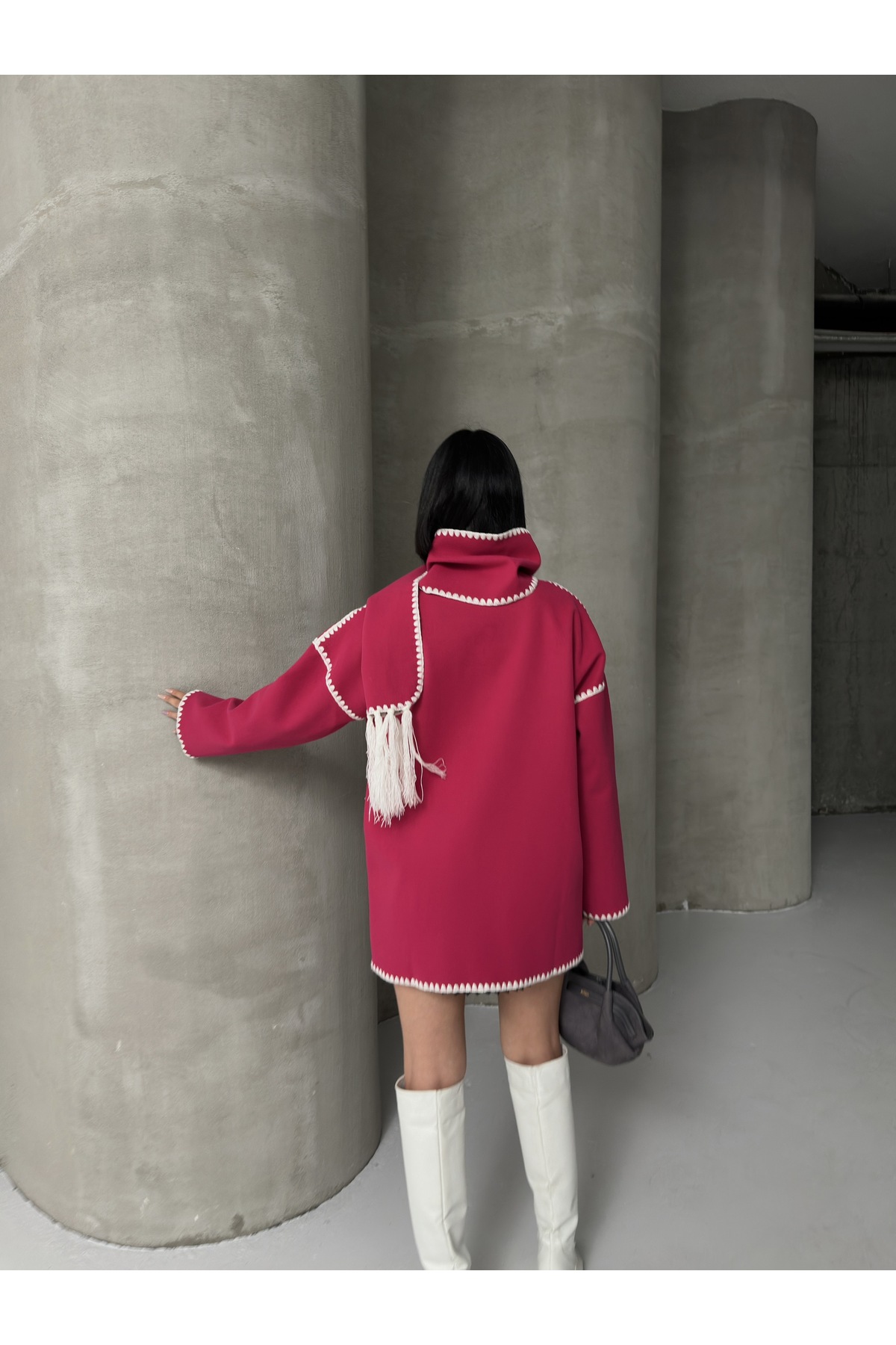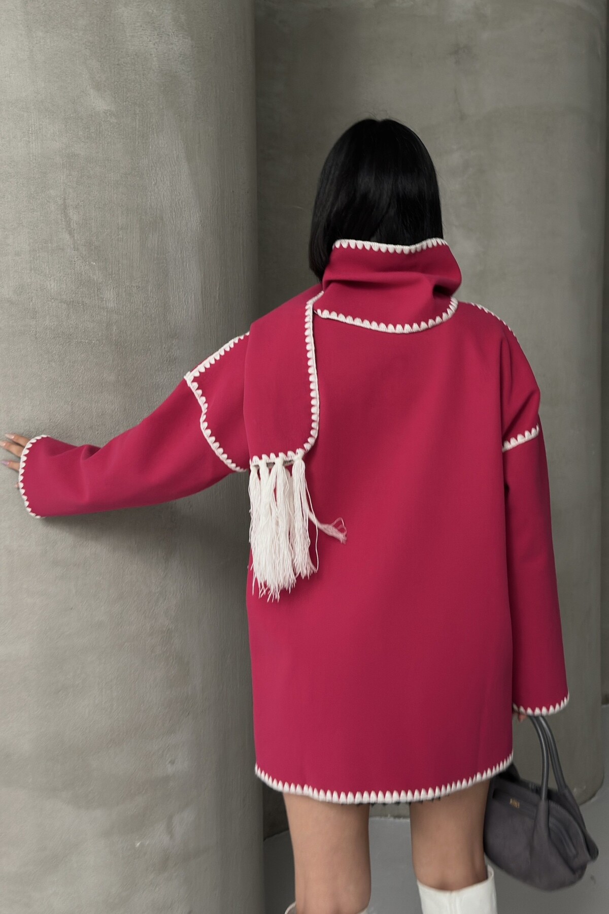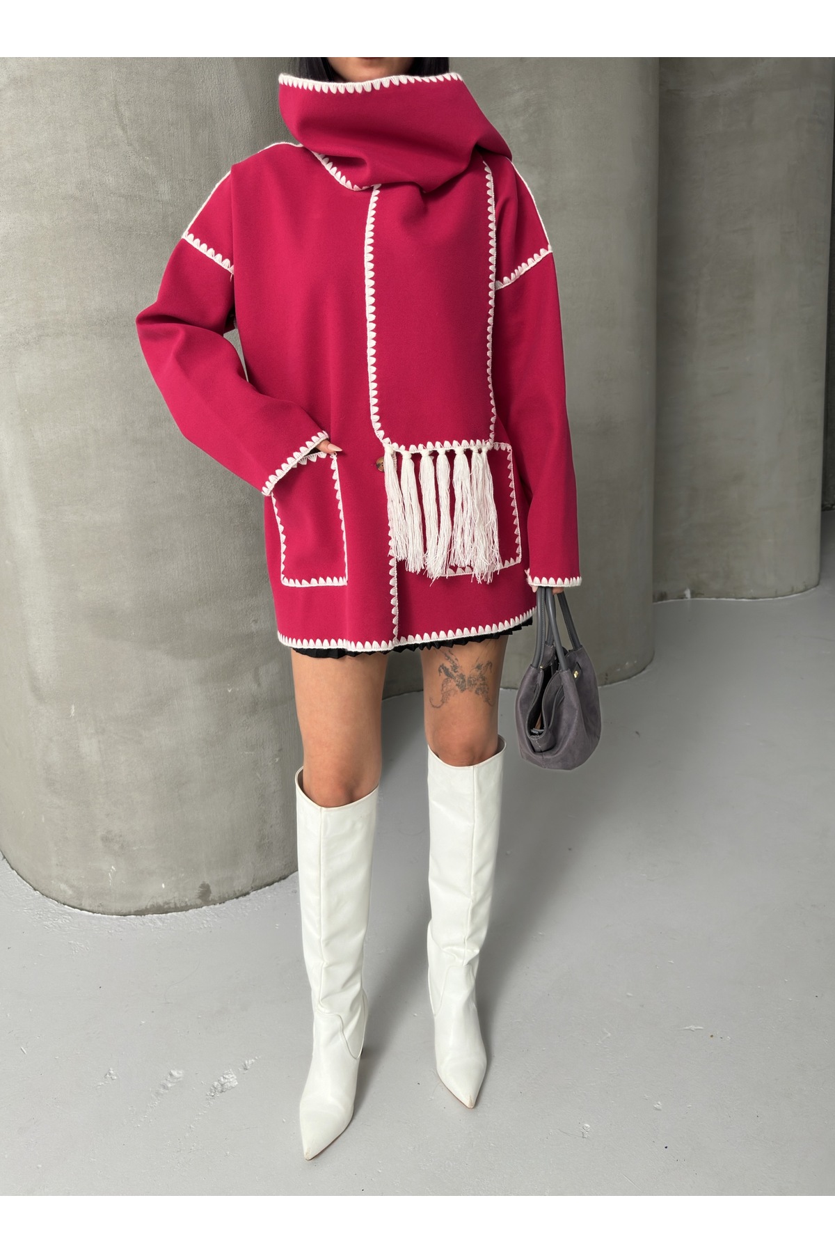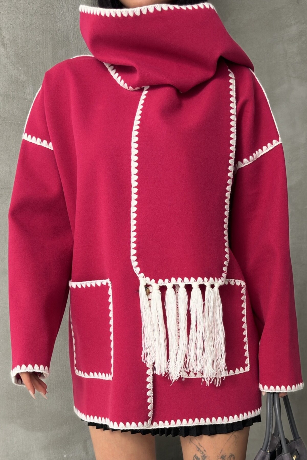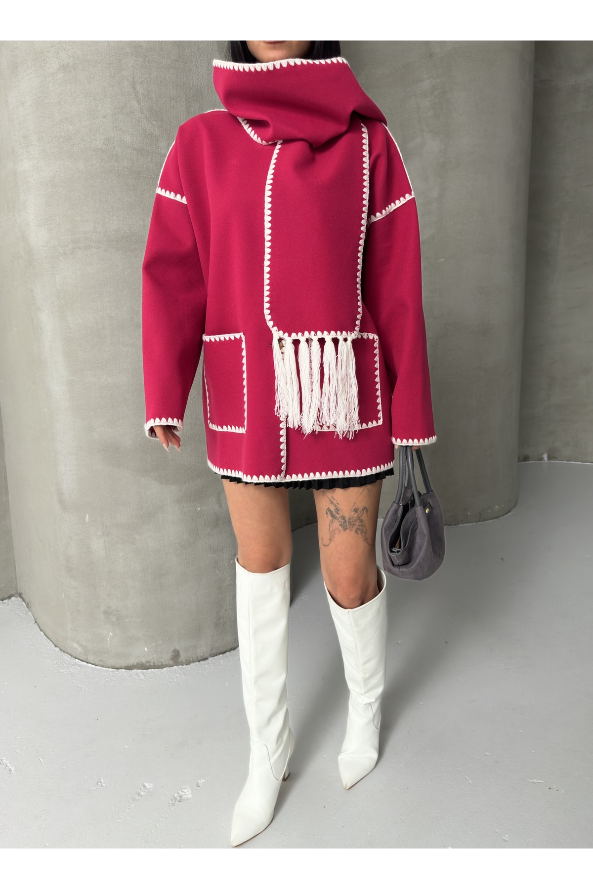 Nakış Detaylı Atkılı Yumuşak Triko Hırka Ceket Bej
