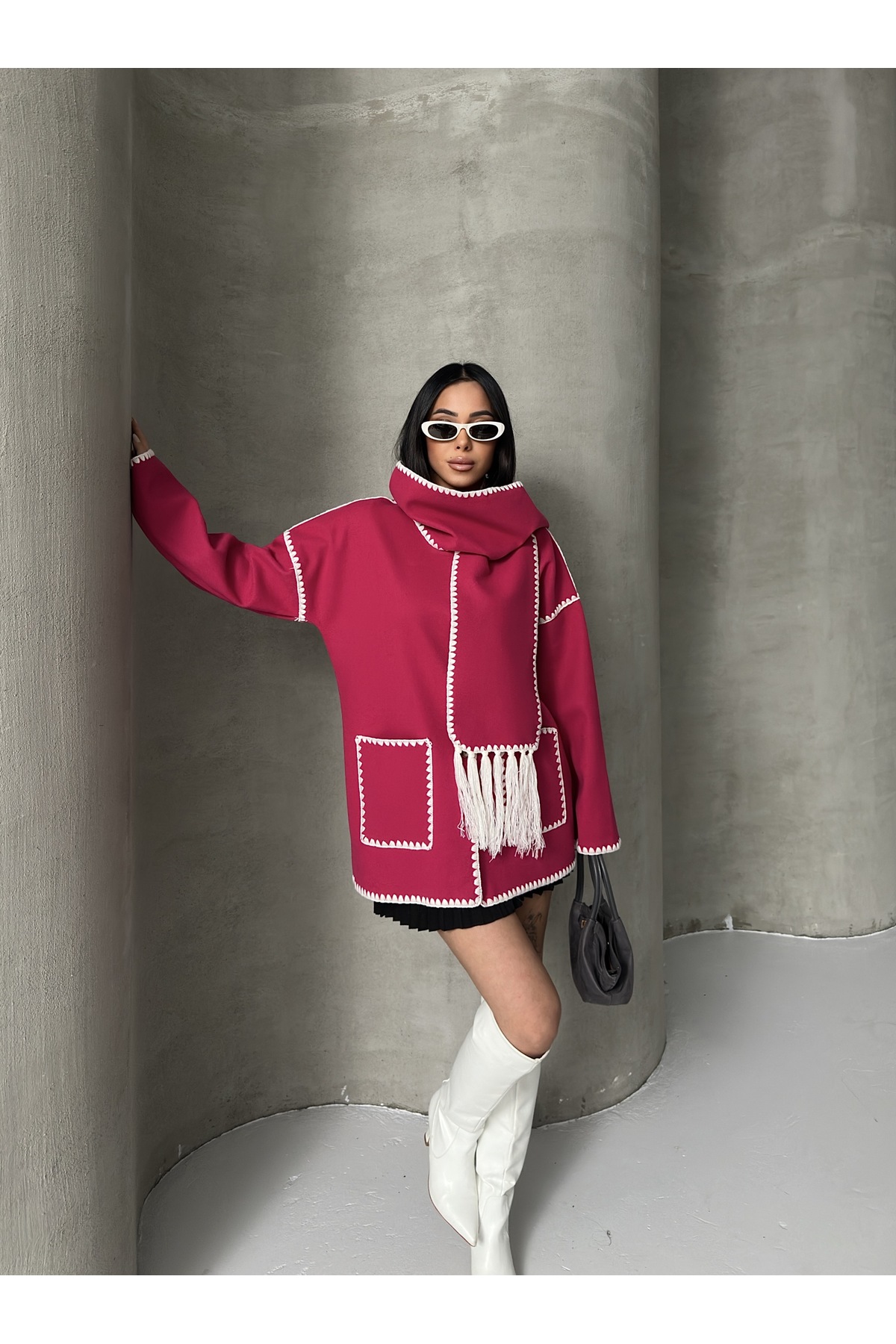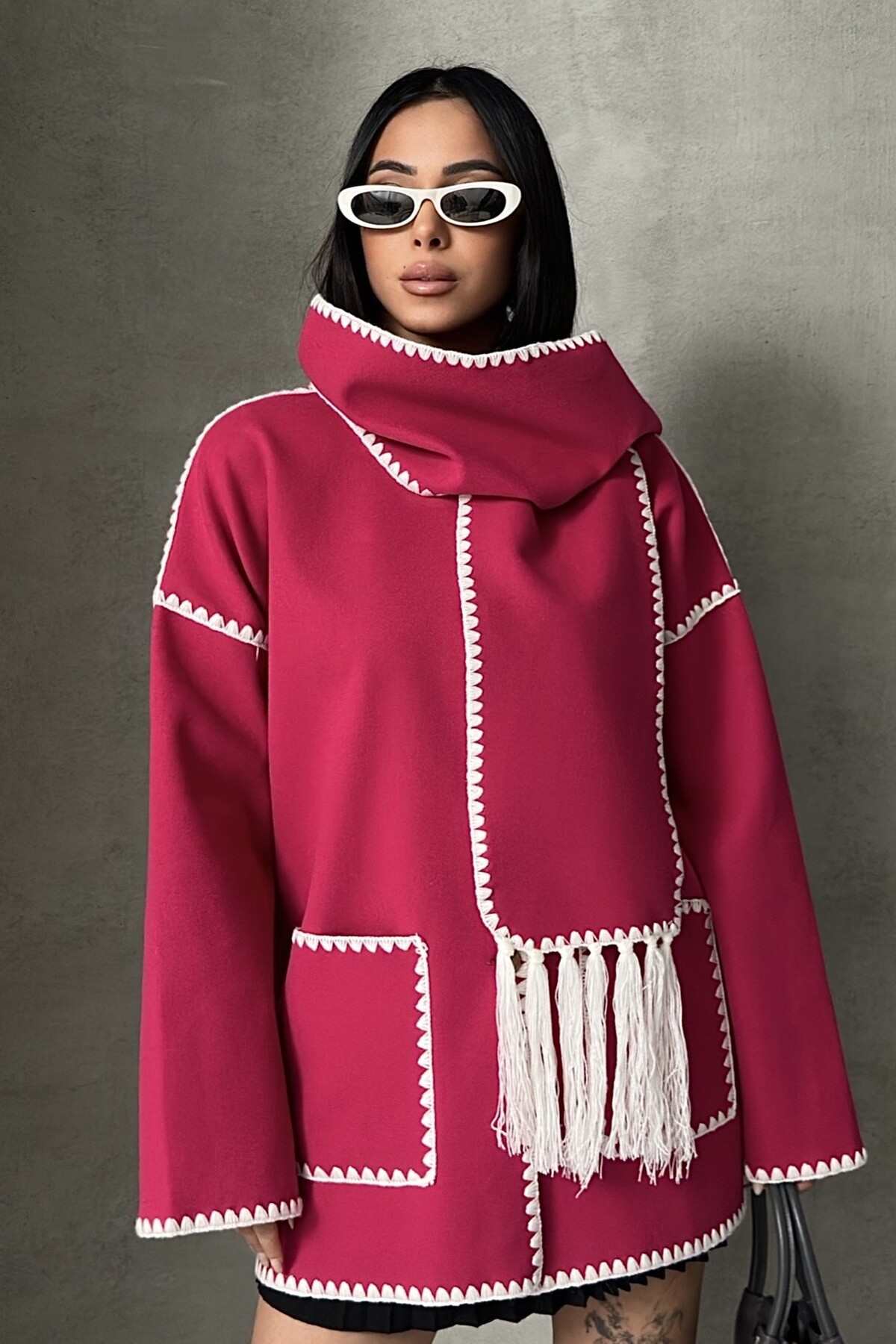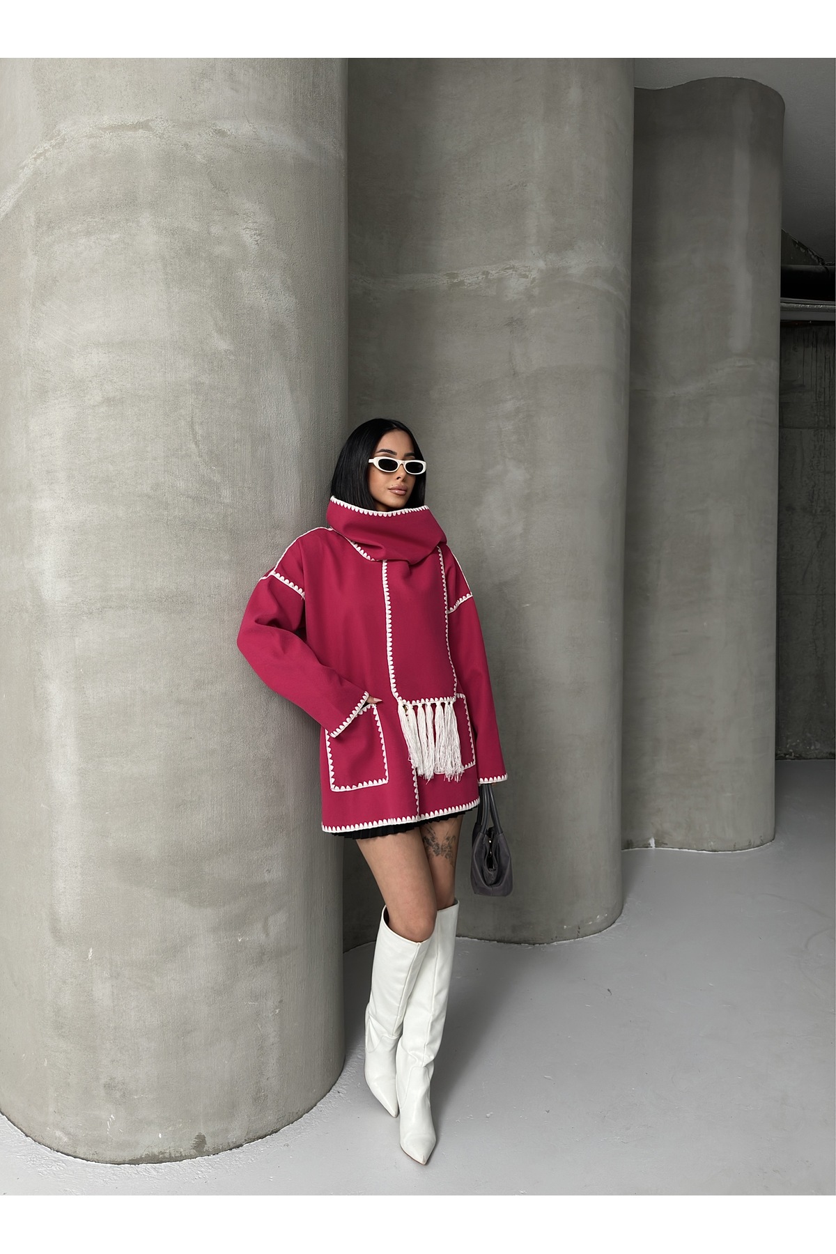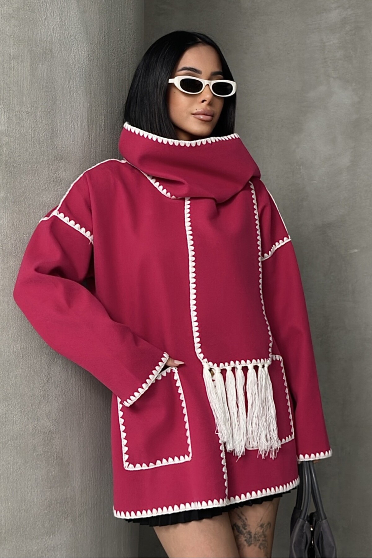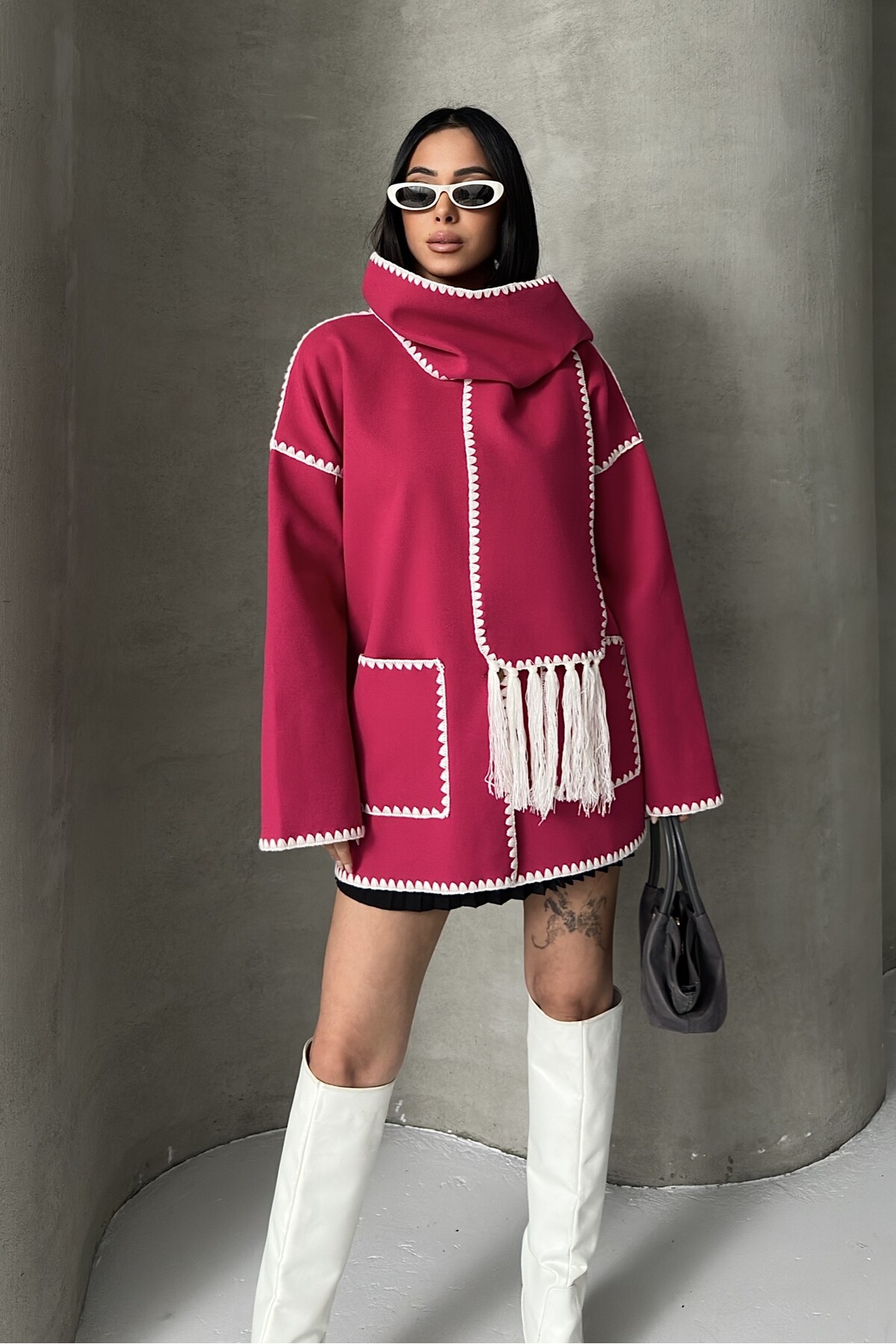 Nakış Detaylı Atkılı Yumuşak Triko Hırka Ceket Bej