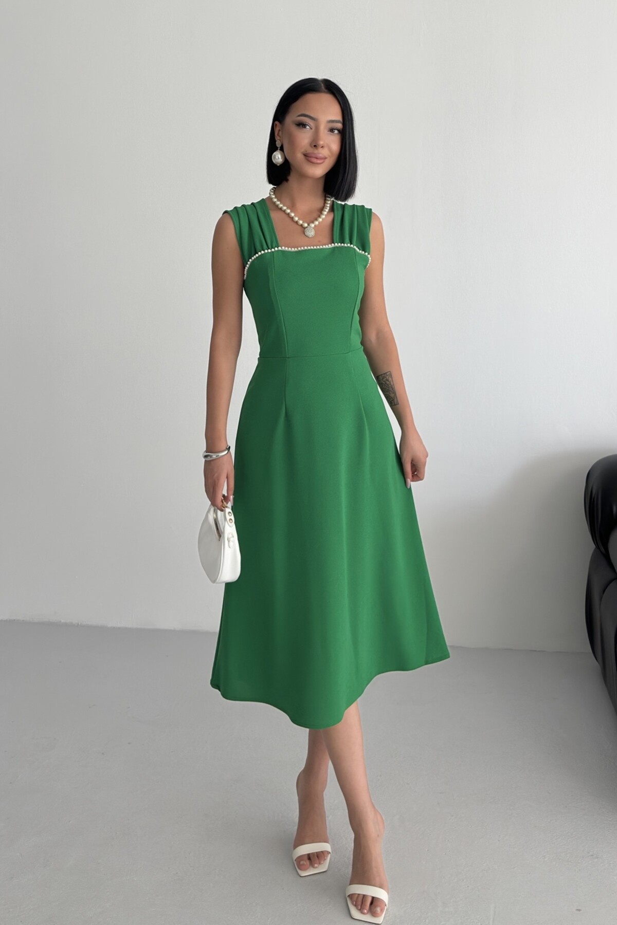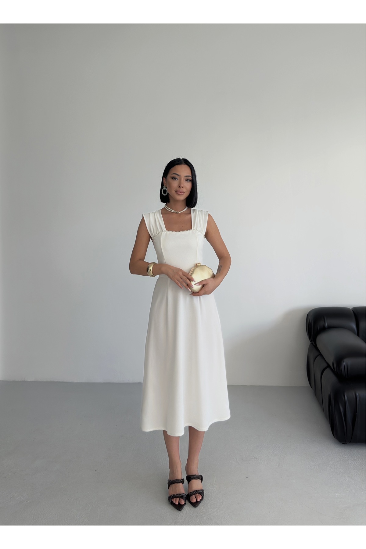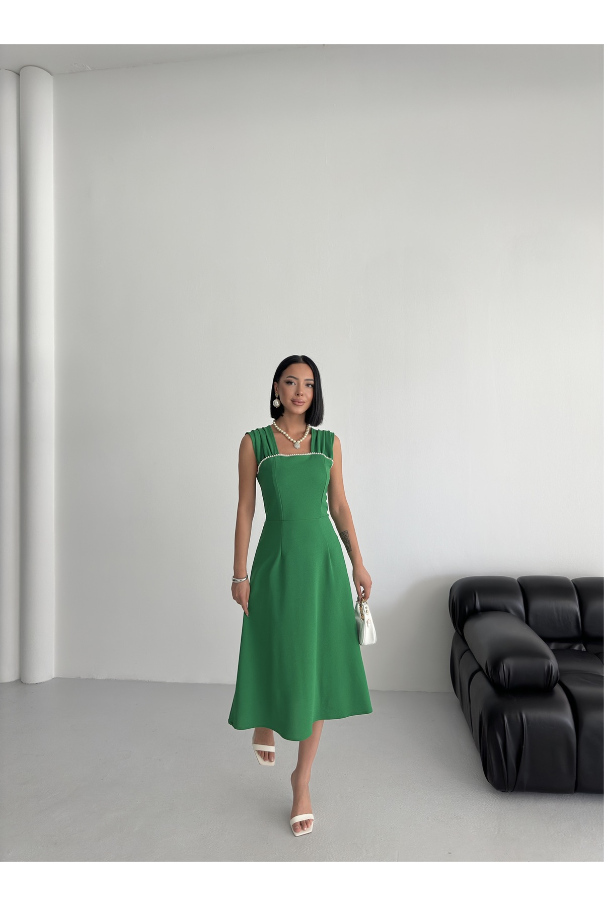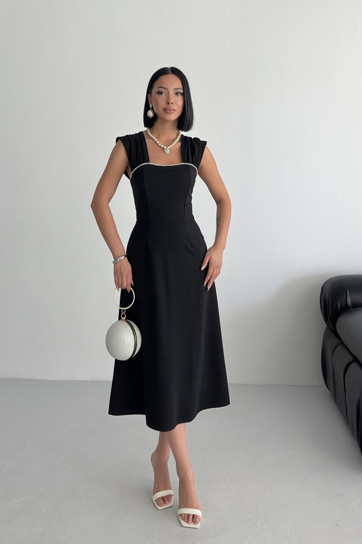 - Krep kumaş yapısı ile zarif bir dokunuş sunar ve vücut hatlarını nazikçe sarar.; - Straplez yaka tasarımı, omuzları serbest bırakarak feminen bir görünüm sağlar.; - İç göstermeyen yapısı sayesinde rahatlıkla giyilebilir ve şeffaflıktan endişe duyulmaz.; - Kemersiz tasarımı, bel bölgesini vurgularken sade ve modern bir stil sunar.; - Kısa kollu tasarım, yaz aylarında serinlik sağlarken şık kombinler için idealdir.; - Şık ve gece ortamları için uygun olan bu elbise, özel davetlerde göz alıcı bir tercih olacaktır.; - Fermuarlı kapama şekli pratik kullanım imkanı sunarken, elbisenin kolayca giyilip çıkarılmasını sağlar.; - Astarsız yapısı hafifliğiyle konforlu bir deneyim vaat ederken, düz kesimiyle zamansız bir şıklık kazandırır.; - Balık silueti vücut hatlarını zarifçe sararak feminen çizgileri ön plana çıkarır.; - Düz deseniyle sadeliği ön planda tutarken, her tür aksesuarla kolayca kombinlenebilir.; - Midi boyuyla hem rahatlık hem de şıklığı bir arada sunarak günlük veya özel günlerde tercih edilebilir.; - Yetişkin kadınlar için uygun kalıbı ve regular kesimiyle her vücut tipine uyum sağlar.; - Türk menşei garantisiyle yerli üretim destek olmaktadır.;