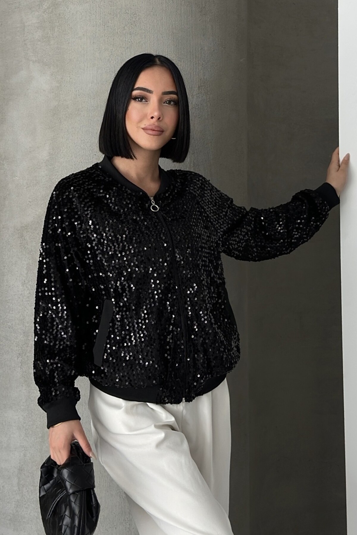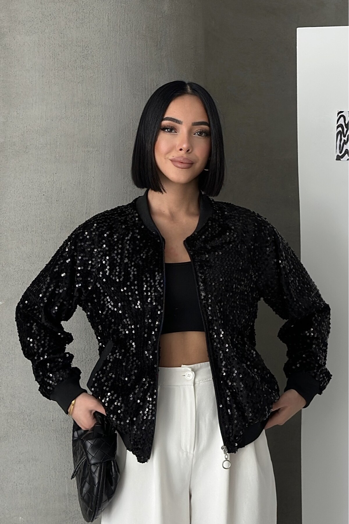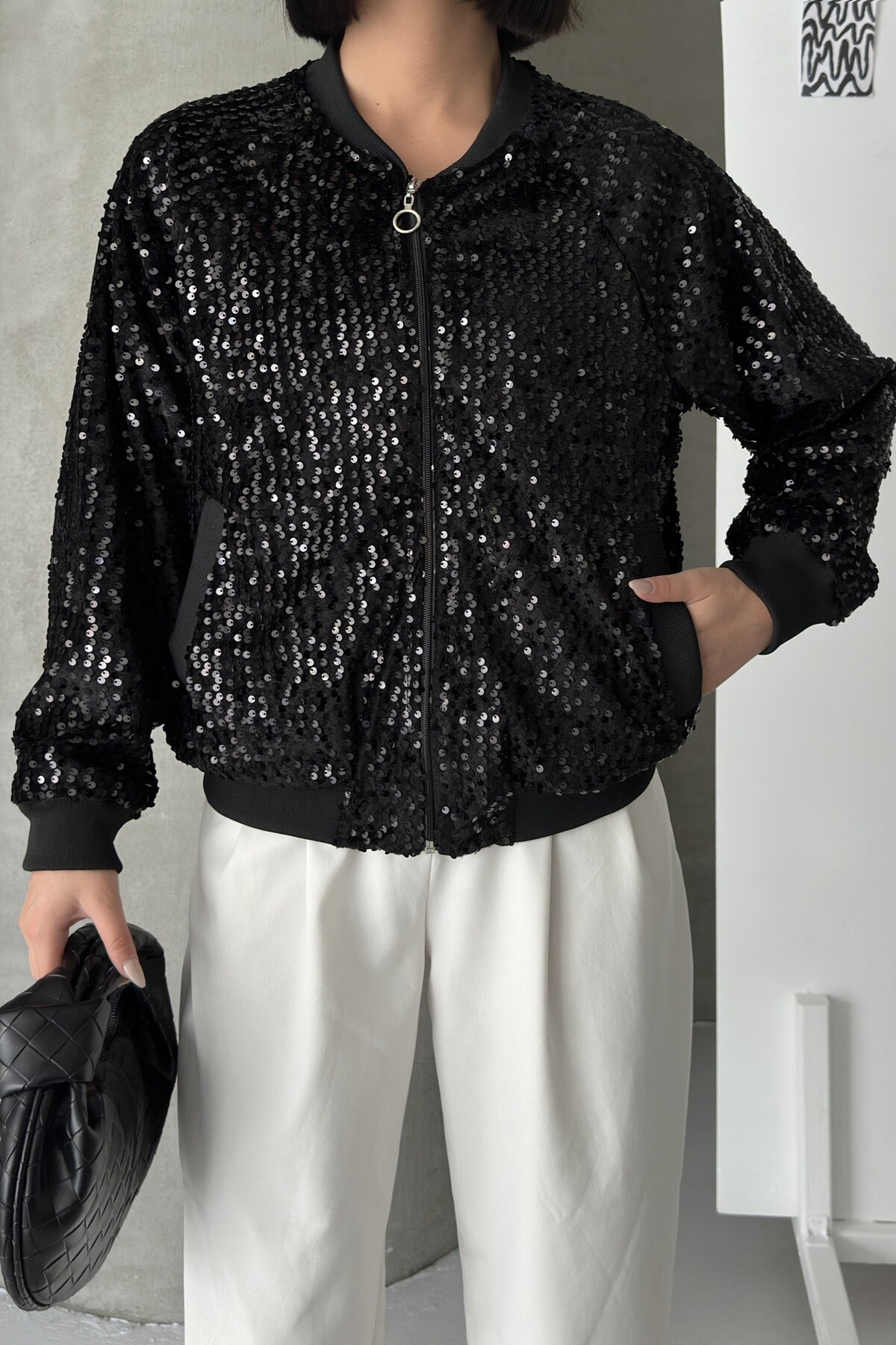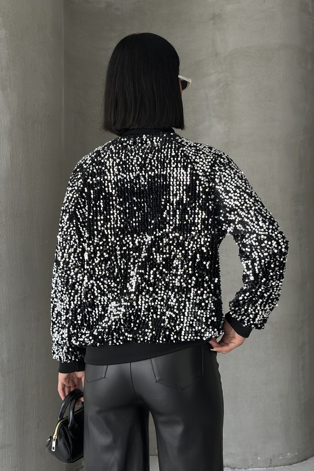 Siyah Payetli Bomber Ceket - Gece Işıltısı Seninle!