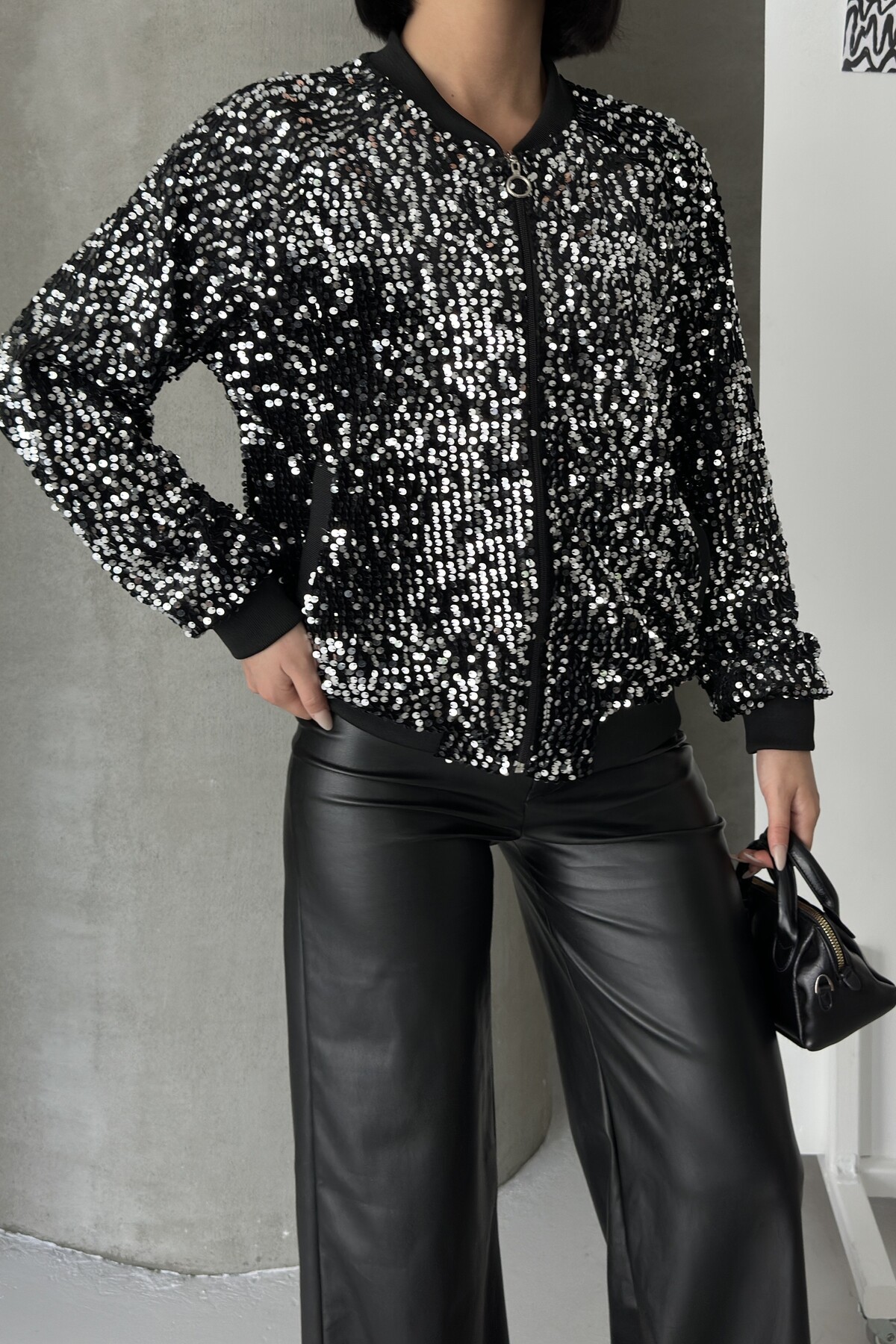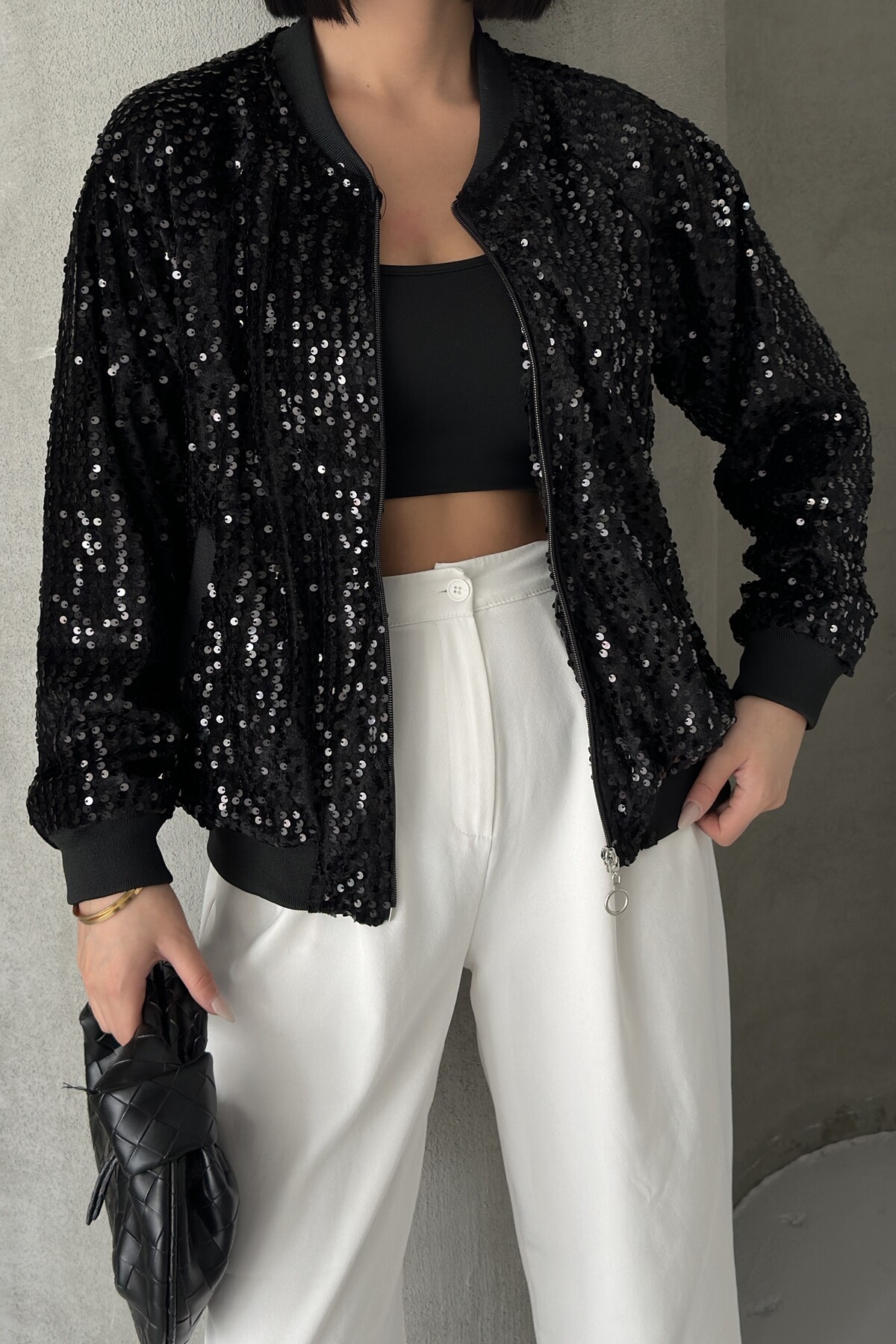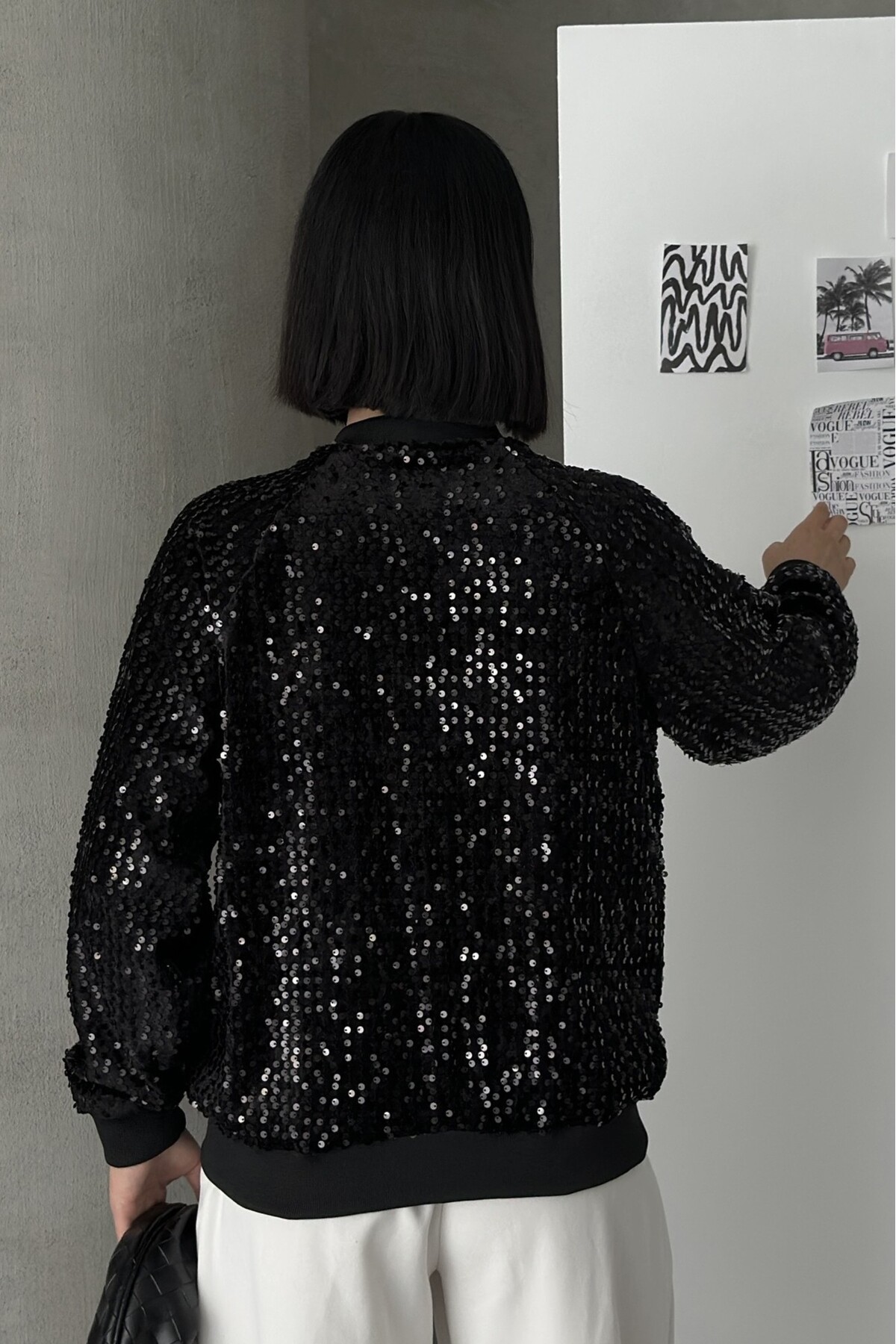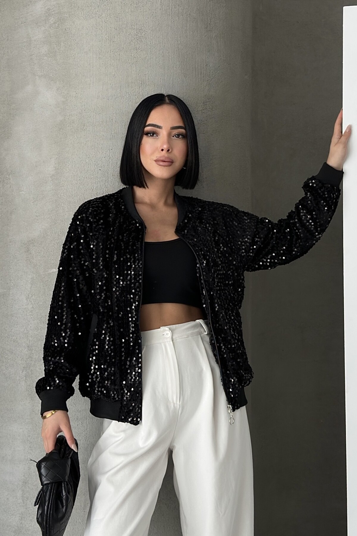 Siyah Payetli Bomber Ceket - Gece Işıltısı Seninle!