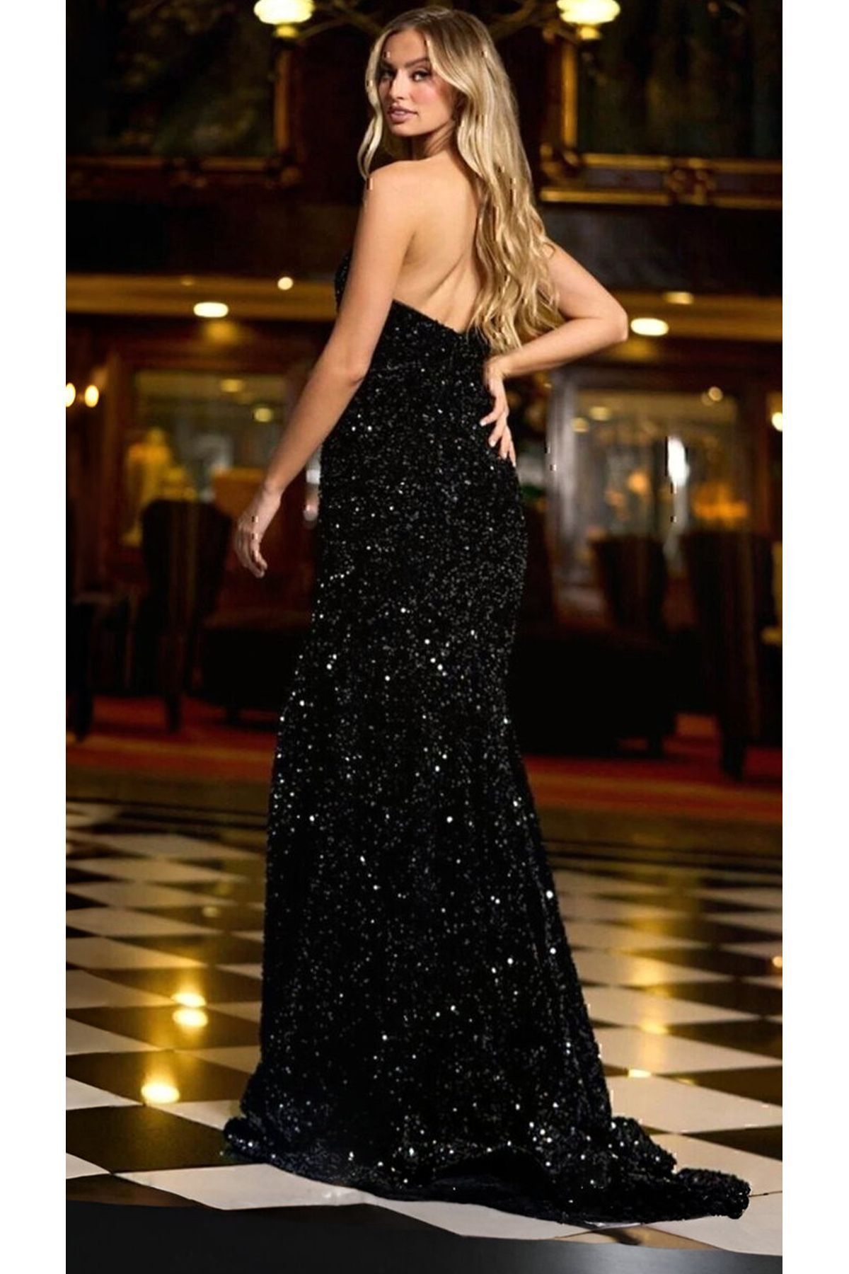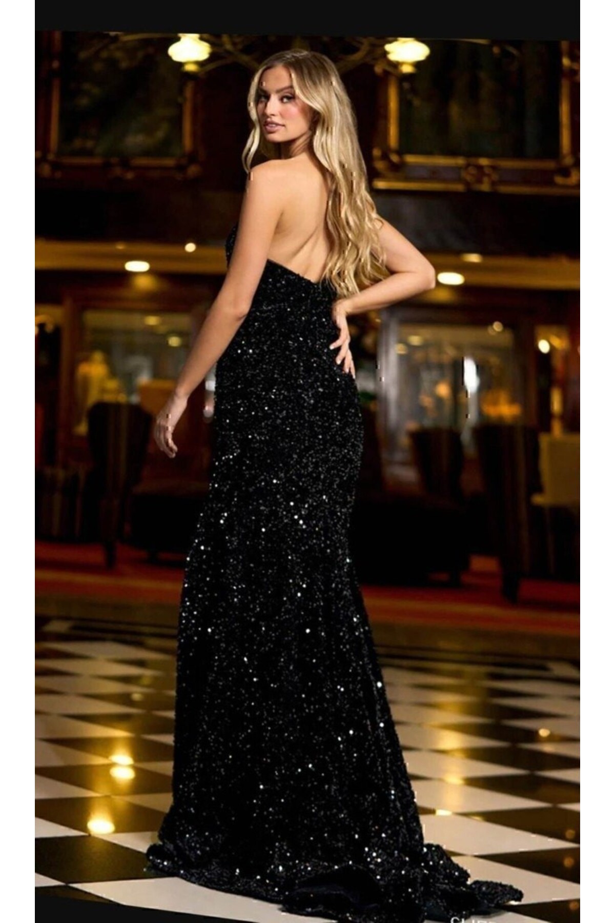 Design koleksiyonuna ait bu elbise, zarif tasarımıyla göz alıcı bir siluet sunar.; Slim fit kalıbı sayesinde vücut hatlarınıza mükemmel uyum sağlar ve şık bir görünüm kazandırır.; Balık silueti ile feminen çizgileri ön plana çıkarırken, straplez yaka tasarımı omuzlarınızı zarifçe sergiler.; Astarlı yapısıyla konforlu bir kullanım sunarken, 95% polyester ve 5% likra materyali esneklik ve dayanıklılık sağlar.; Şık gece ortamları için ideal olan bu elbise, siyah rengiyle kolayca kombinlenebilir.; Bağcıklı kapama şekli ile kişisel tarzınıza göre ayarlanabilirlik sunarken, örme kumaşı yumuşak dokunuşuyla konforlu bir deneyim vaat eder.; Düz deseniyle sade güzelliği ön plana çıkaran elbise, payet detaylarıyla ışıltınızı artırır.; Makinede yıkama imkanı sayesinde pratik bakım avantajlarından faydalanabilirsiniz; kuru temizleme, askıda kurutma gibi diğer detaylarla da kolayca temizlenir.;
