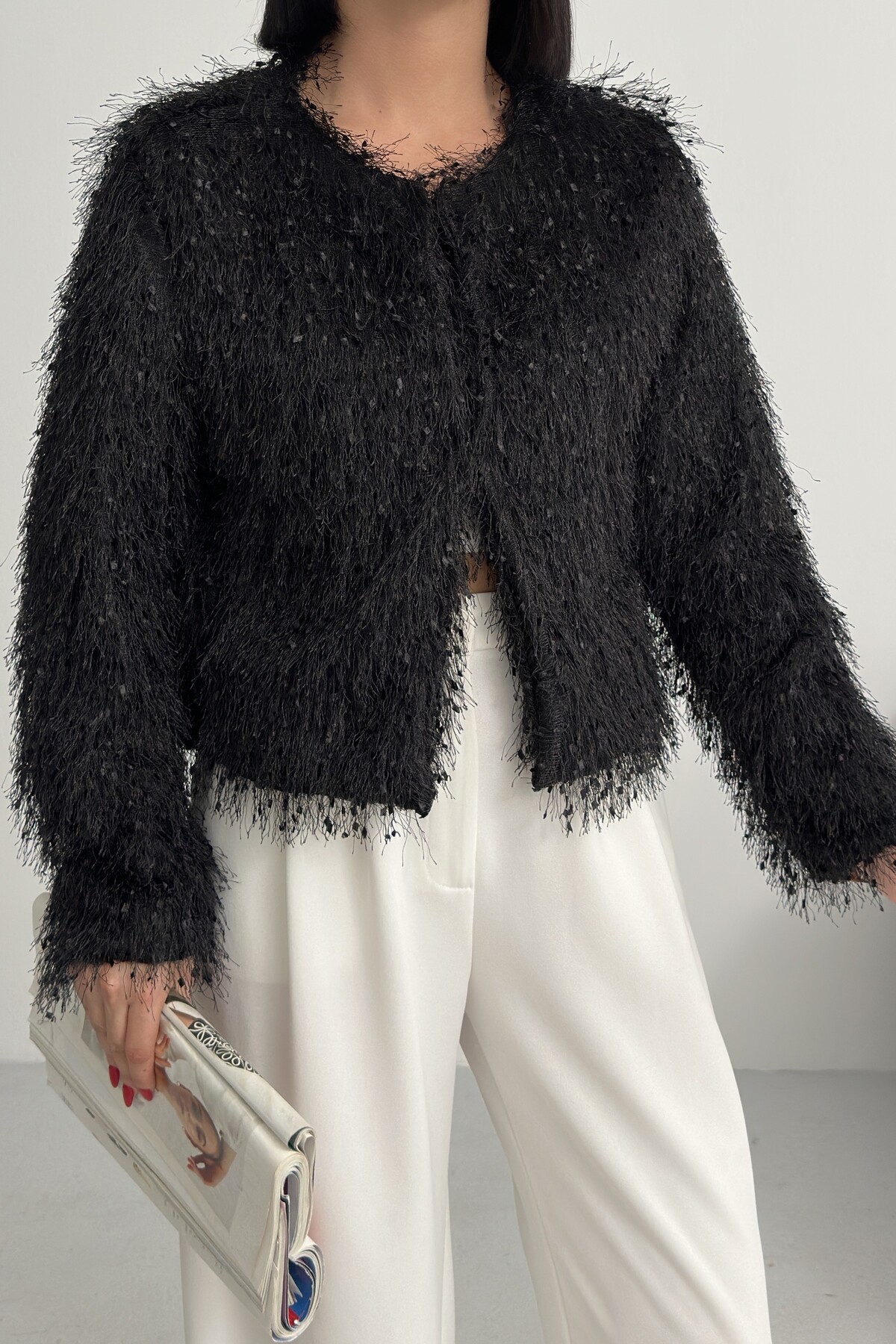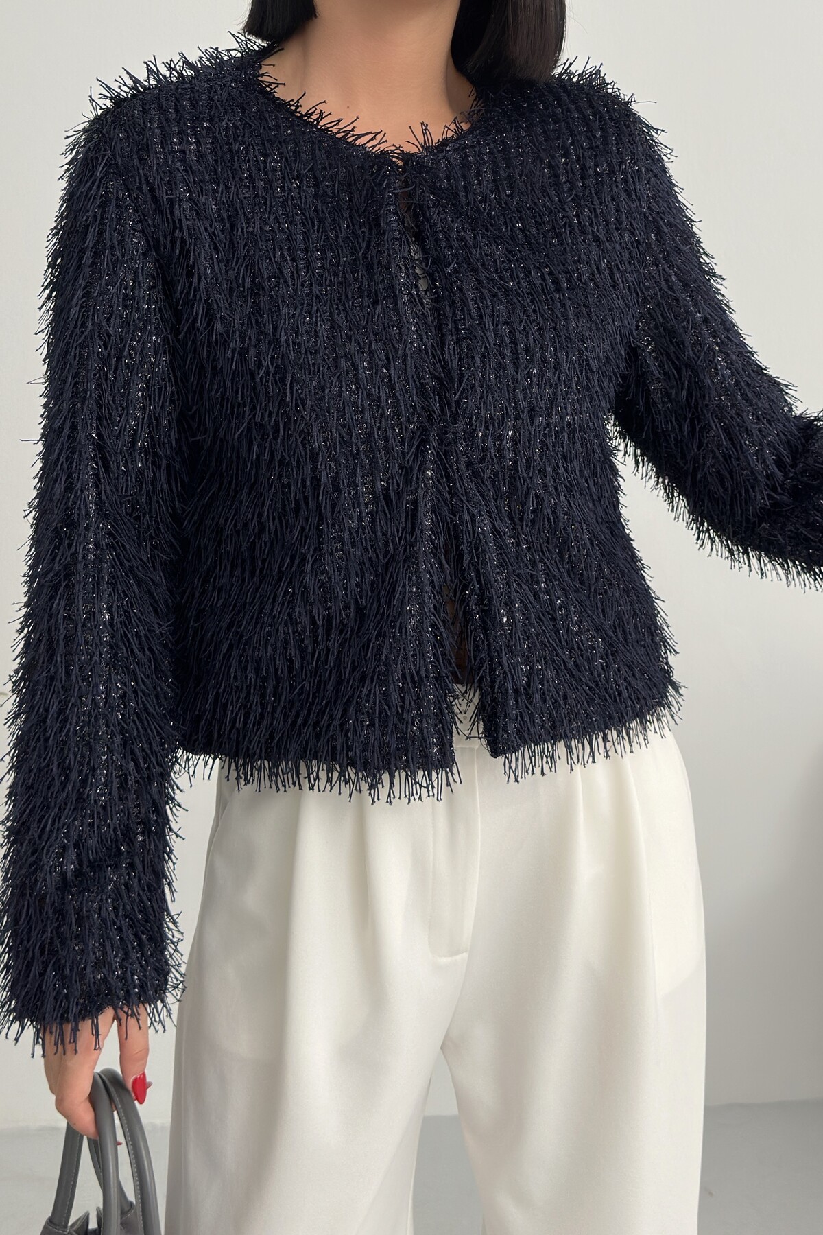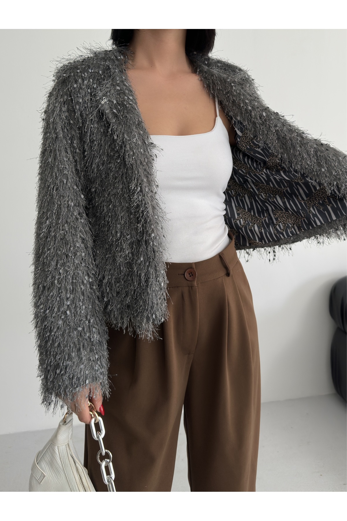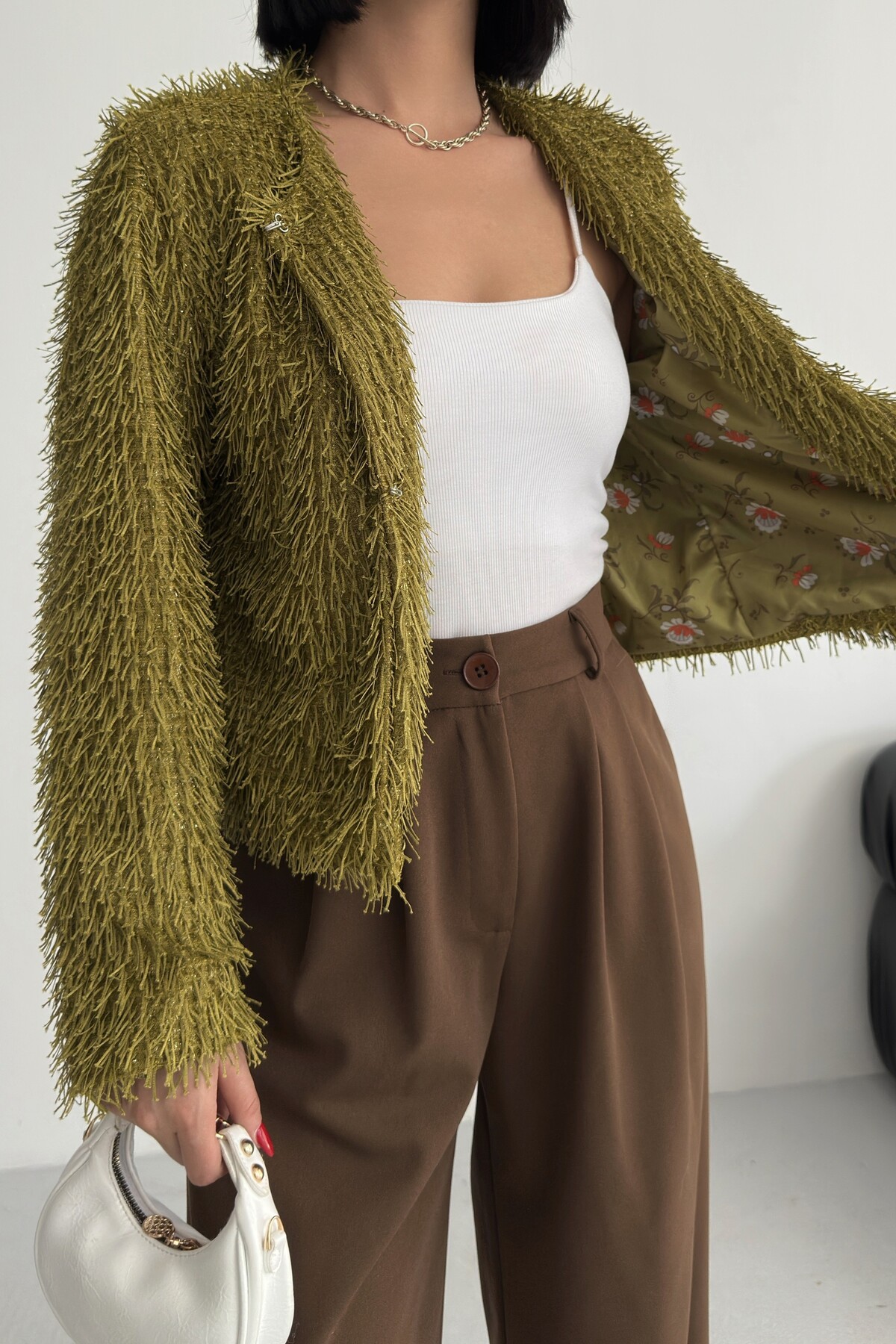 - Uzun kollu tasarımı ile mevsim geçişlerinde ve soğuk havalarda ideal bir koruma sağlar.; - Soyut deseniyle modern ve şık bir görünüm sunar, günlük kullanım için uygundur.; - Tüm sezonlara uygun yapısıyla yılın her döneminde rahatlıkla tercih edilebilir.; - Dolgusuz yapısı sayesinde hafif ve konforlu bir kullanım sunar.; - Orta kalınlıkta dokusu, soğuk havalarda yeterli sıcaklık sağlar ancak aşırı kalınlıkta değildir.; - Kemersiz tasarımı ile sade ve şık bir görünüm elde edilir, kolay kombin yapma imkanı tanır.; - Kutu içermeyen ambalajı sayesinde çevre dostu bir tercih olurken, ürünün doğrudan teslimatını sağlar.; - Sürdürülebilirlik detayına sahip olmasıyla çevreye duyarlı tüketiciler için idealdir.; - Dokuma materyali dayanıklılığı artırırken, cepsiz tasarım minimalist bir stil oluşturur.; - Dolgusuz yapısı hafifliği koruyarak hareket özgürlüğünüzü kısıtlamaz.; - Basic siluetiyle her türden kıyafetle uyum sağlayarak gardırobunuzdaki