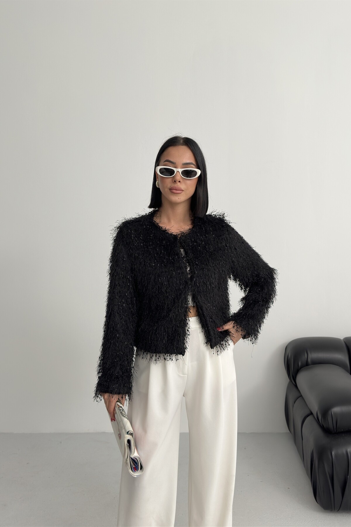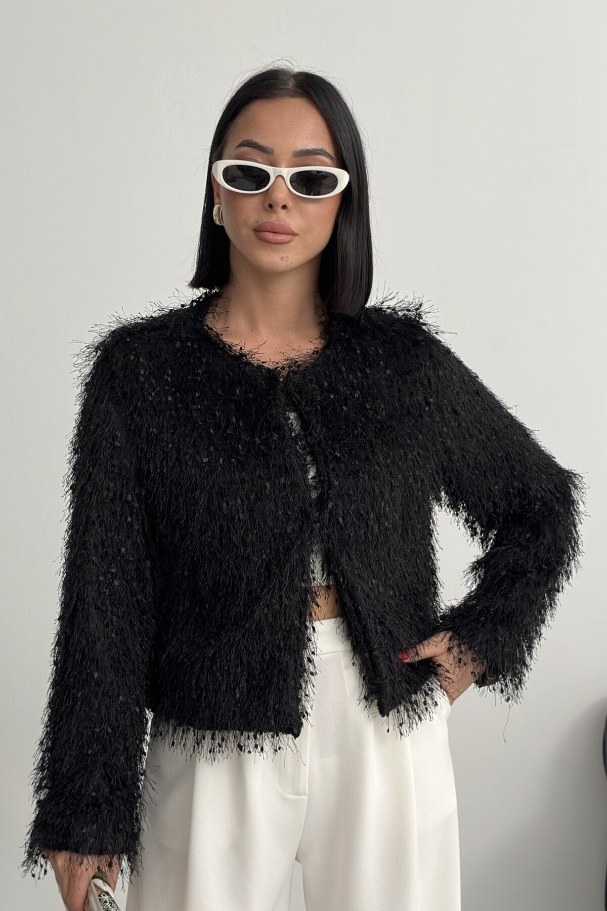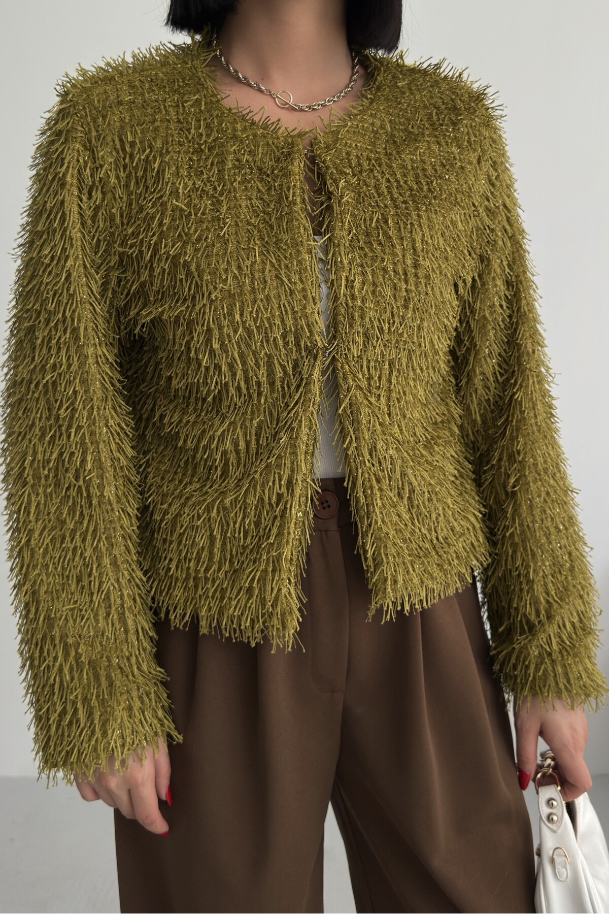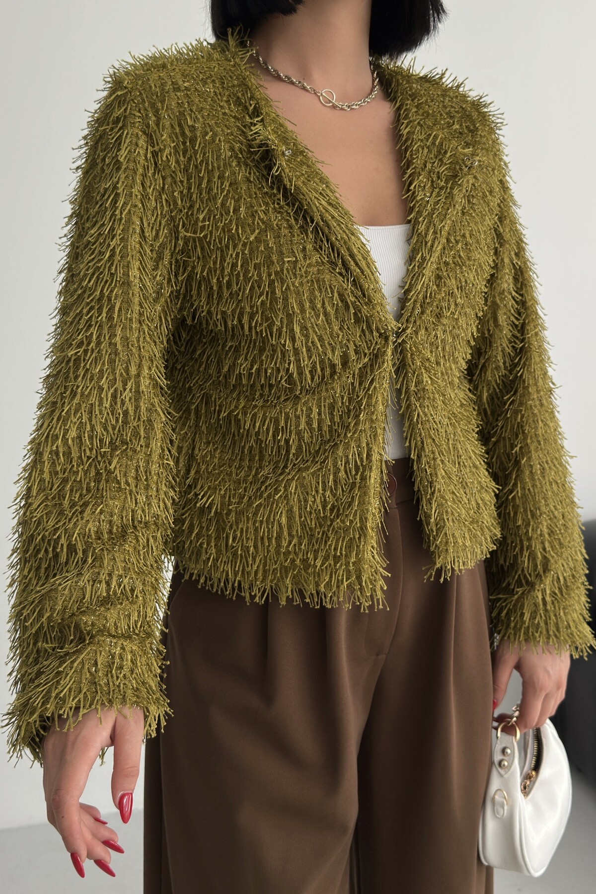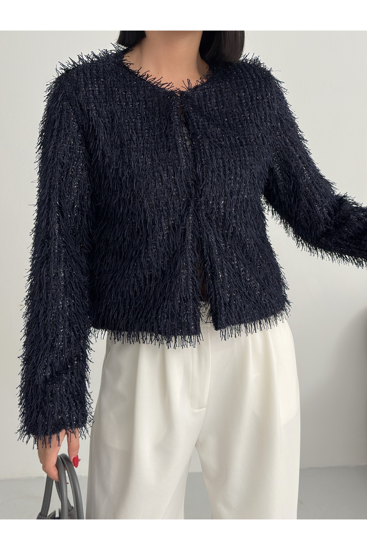 - Uzun kollu tasarımı ile mevsim geçişlerinde ve soğuk havalarda ideal bir koruma sağlar.; - Soyut deseniyle modern ve şık bir görünüm sunar, günlük kullanım için uygundur.; - Tüm sezonlara uygun yapısıyla yılın her döneminde rahatlıkla tercih edilebilir.; - Dolgusuz yapısı sayesinde hafif ve konforlu bir kullanım sunar.; - Orta kalınlıkta dokusu, soğuk havalarda yeterli sıcaklık sağlar ancak aşırı kalınlıkta değildir.; - Kemersiz tasarımı ile sade ve şık bir görünüm elde edilir, kolay kombin yapma imkanı tanır.; - Kutu içermeyen ambalajı sayesinde çevre dostu bir tercih olurken, ürünün doğrudan teslimatını sağlar.; - Sürdürülebilirlik detayına sahip olmasıyla çevreye duyarlı tüketiciler için idealdir.; - Dokuma materyali dayanıklılığı artırırken, cepsiz tasarım minimalist bir stil oluşturur.; - Dolgusuz yapısı hafifliği koruyarak hareket özgürlüğünüzü kısıtlamaz.; - Basic siluetiyle her türden kıyafetle uyum sağlayarak gardırobunuzdaki