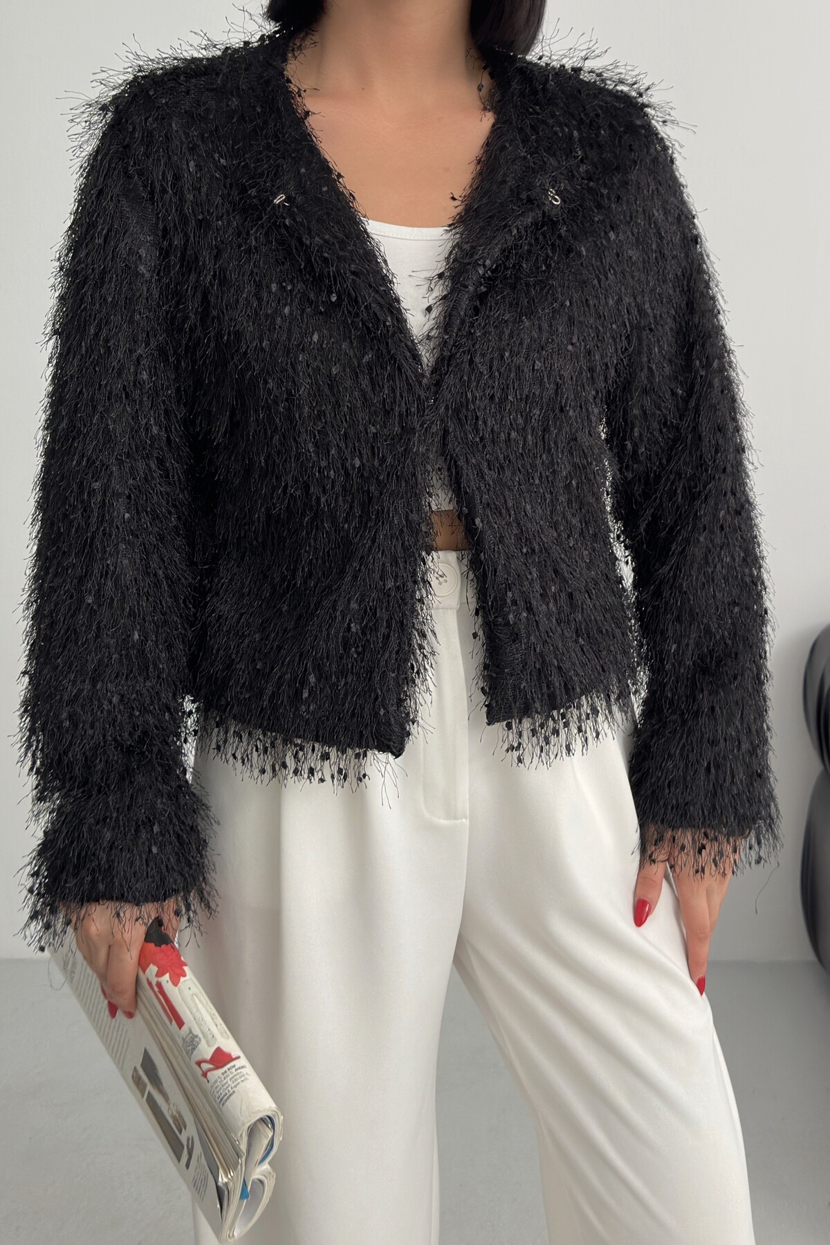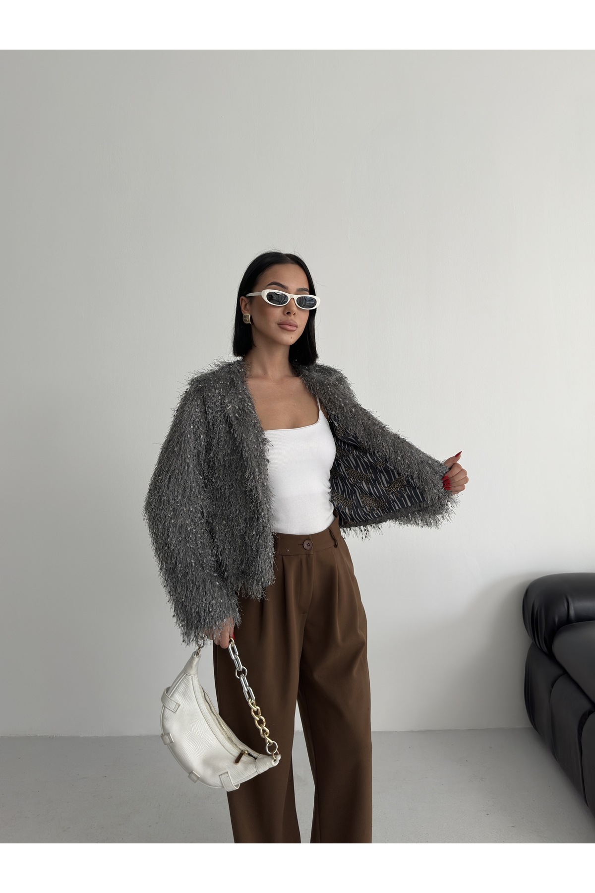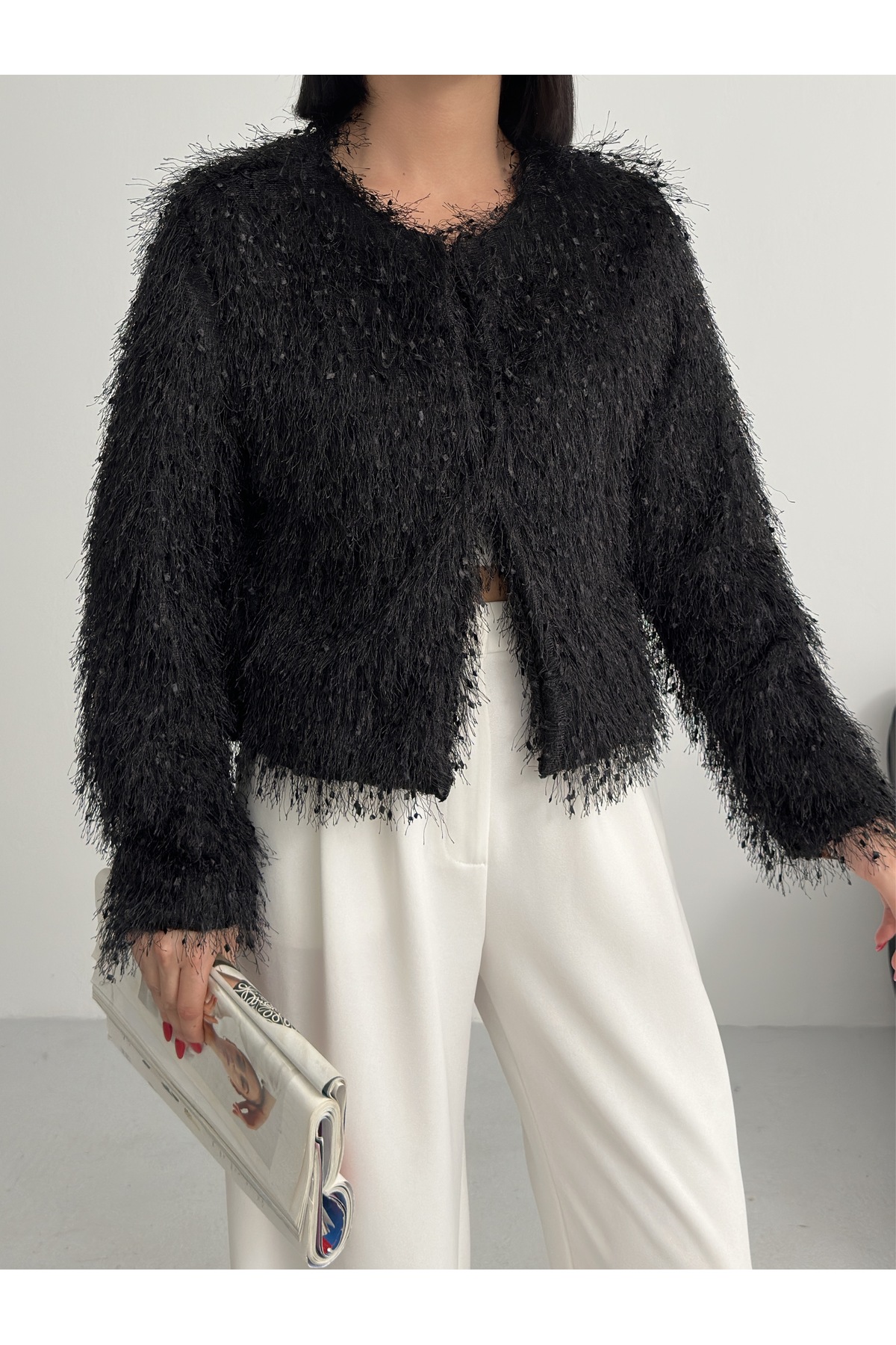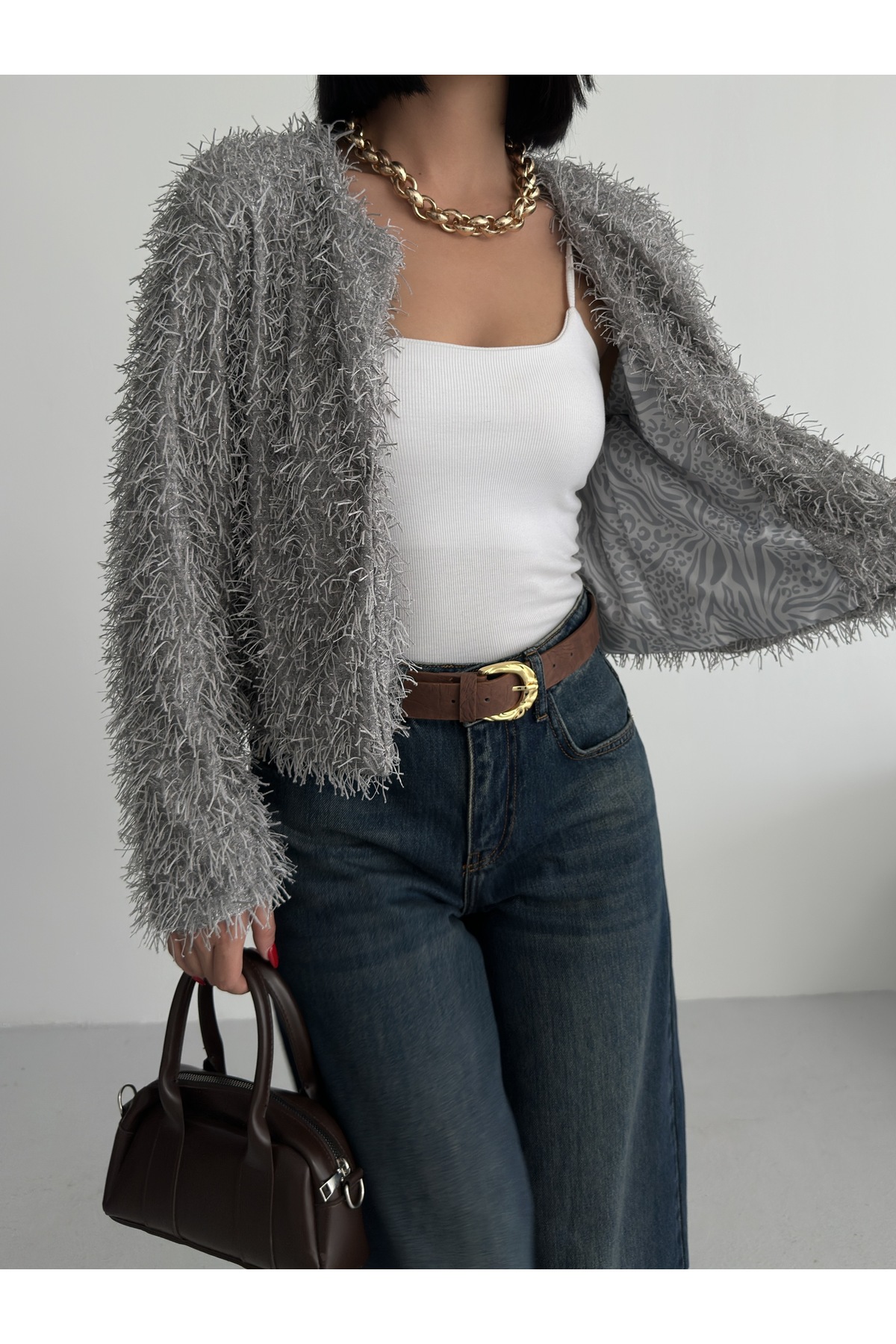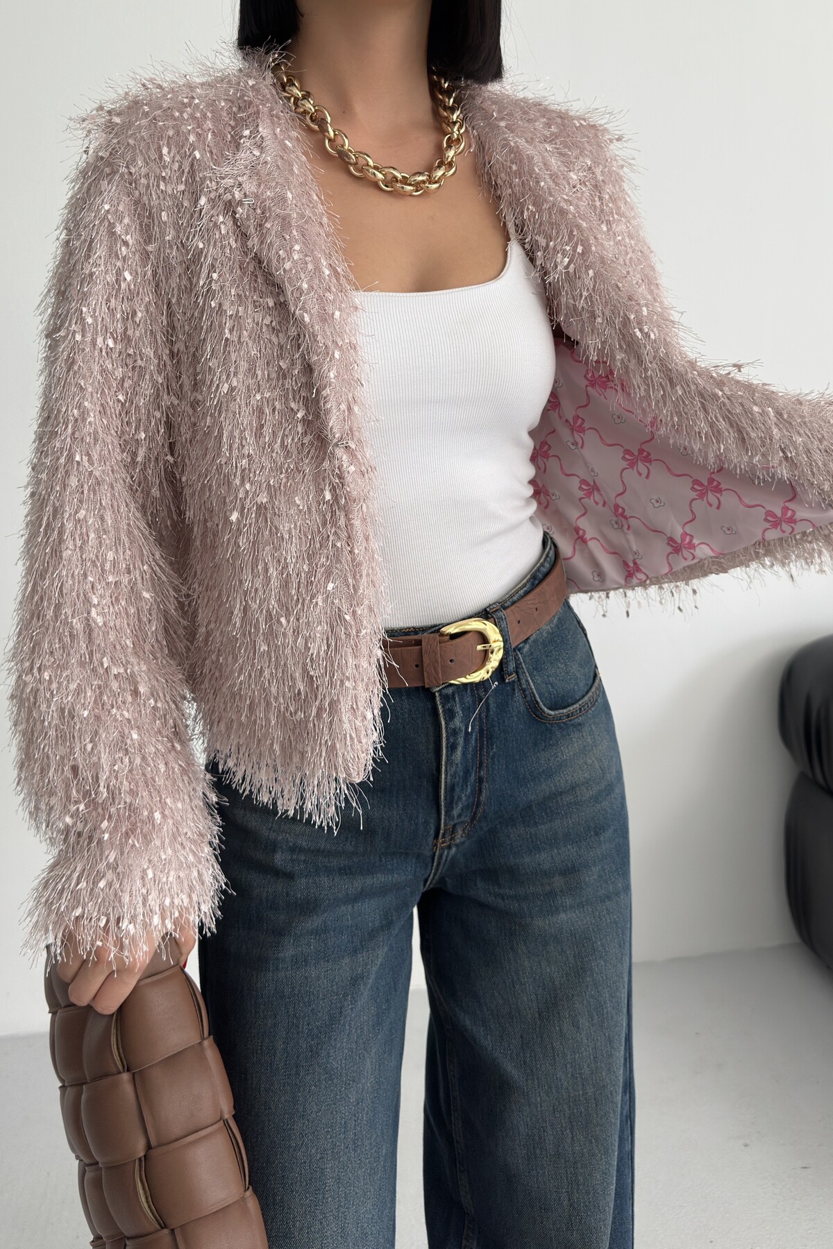 - Uzun kollu tasarımı ile mevsim geçişlerinde ve soğuk havalarda ideal bir koruma sağlar.; - Soyut deseniyle modern ve şık bir görünüm sunar, günlük kullanım için uygundur.; - Tüm sezonlara uygun yapısıyla yılın her döneminde rahatlıkla tercih edilebilir.; - Dolgusuz yapısı sayesinde hafif ve konforlu bir kullanım sunar.; - Orta kalınlıkta dokusu, soğuk havalarda yeterli sıcaklık sağlar ancak aşırı kalınlıkta değildir.; - Kemersiz tasarımı ile sade ve şık bir görünüm elde edilir, kolay kombin yapma imkanı tanır.; - Kutu içermeyen ambalajı sayesinde çevre dostu bir tercih olurken, ürünün doğrudan teslimatını sağlar.; - Sürdürülebilirlik detayına sahip olmasıyla çevreye duyarlı tüketiciler için idealdir.; - Dokuma materyali dayanıklılığı artırırken, cepsiz tasarım minimalist bir stil oluşturur.; - Dolgusuz yapısı hafifliği koruyarak hareket özgürlüğünüzü kısıtlamaz.; - Basic siluetiyle her türden kıyafetle uyum sağlayarak gardırobunuzdaki