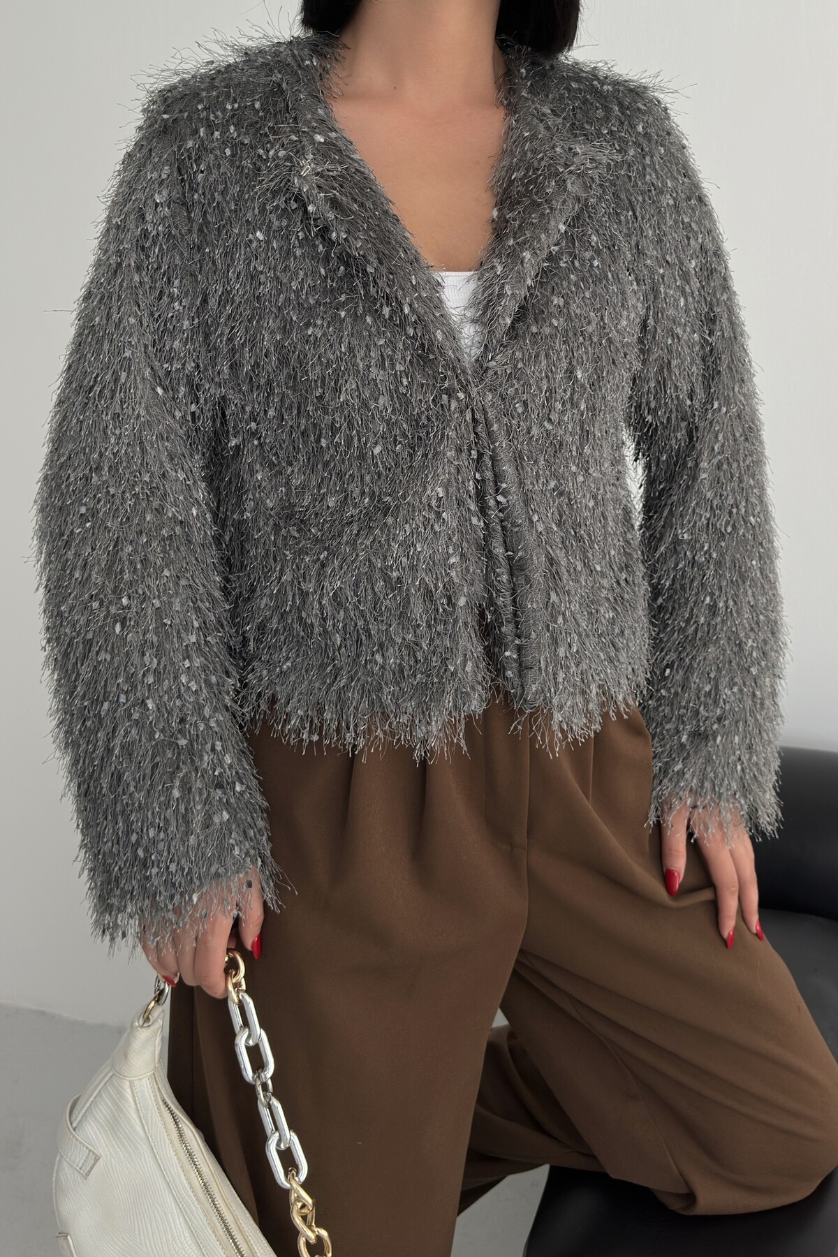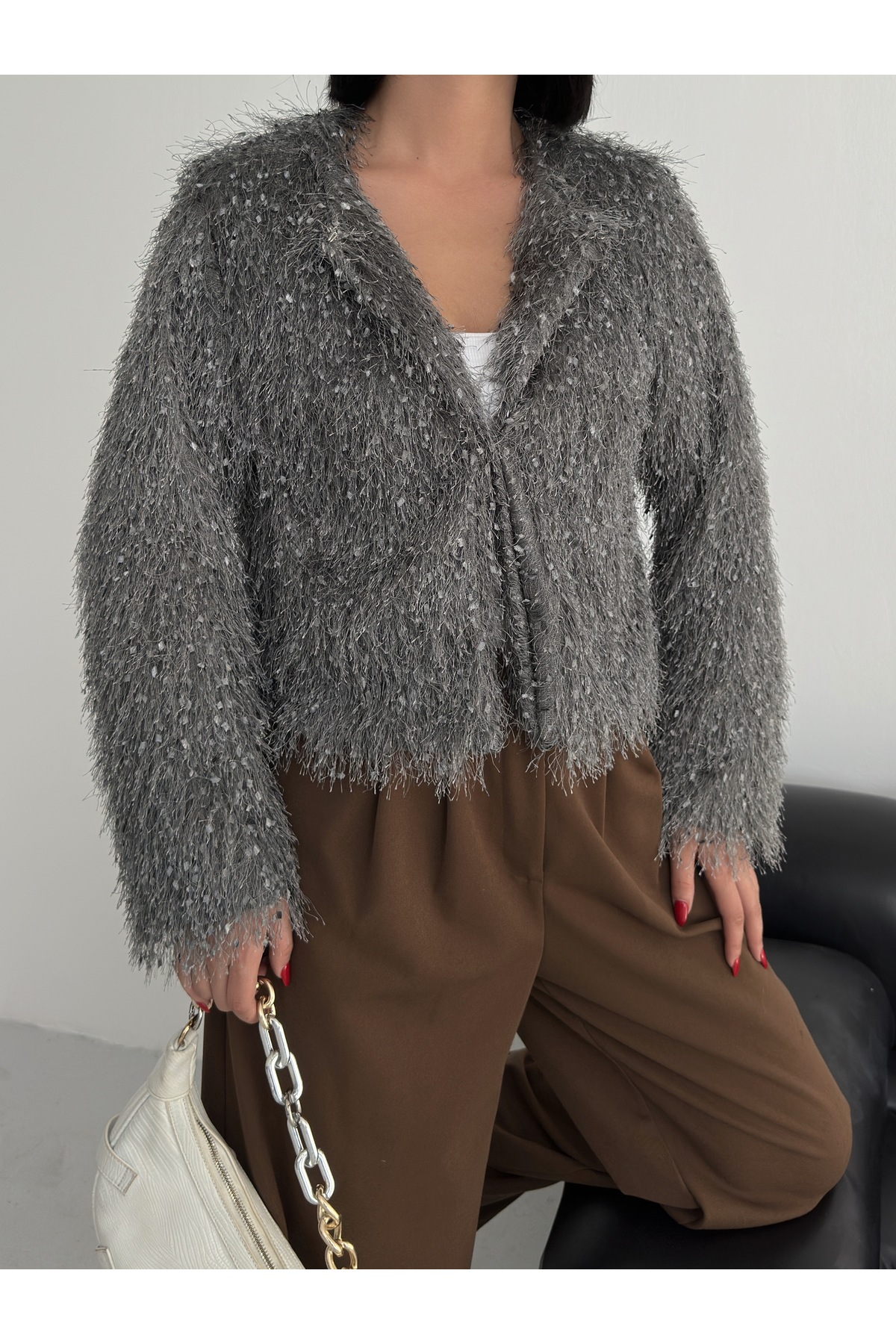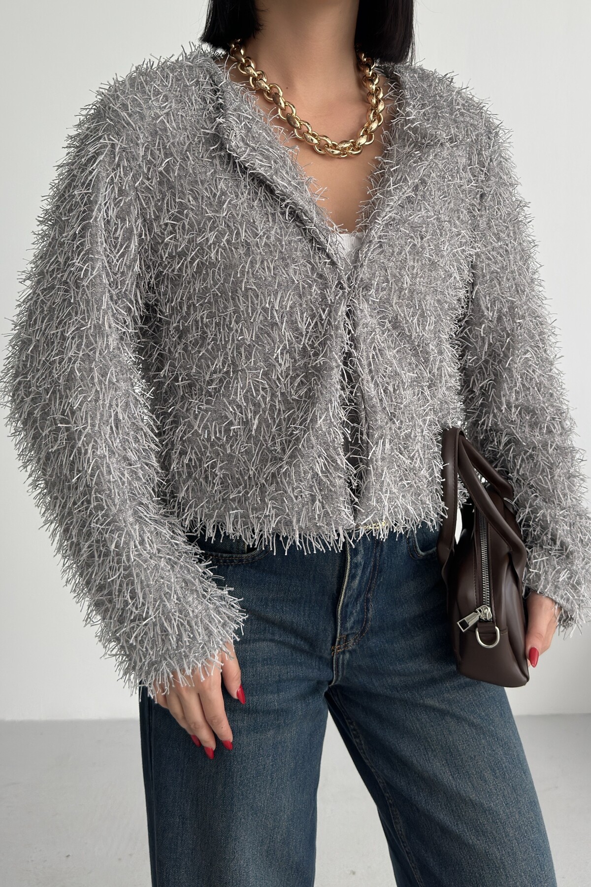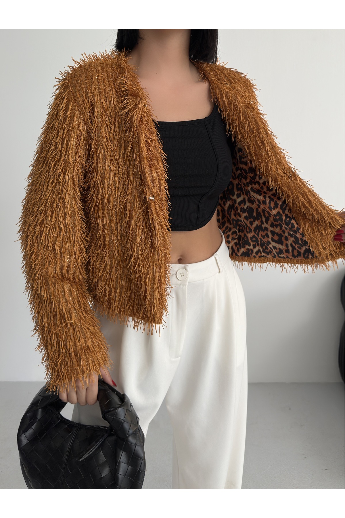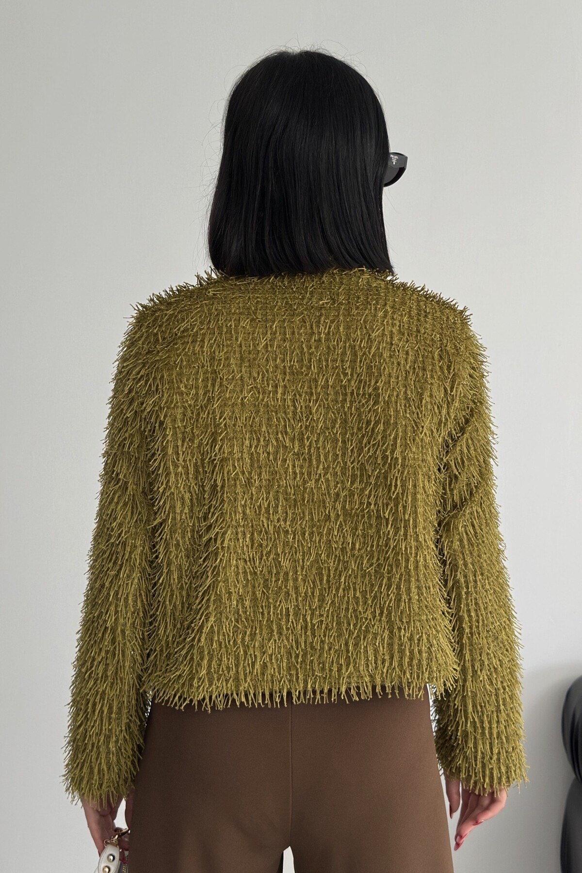 Yakasız İthal Püsküllü Bordo Kürk Mont